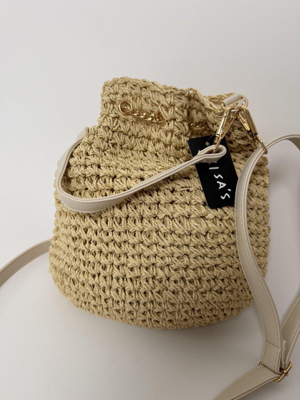 Super letná taška z lycry so zlatou retiazkou a popruhom, ktorá sa dá nosiť ako crossbody.