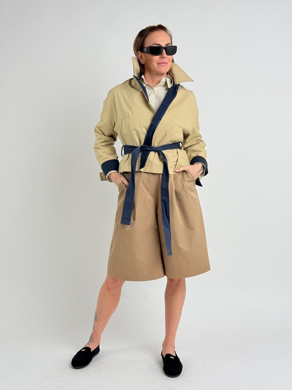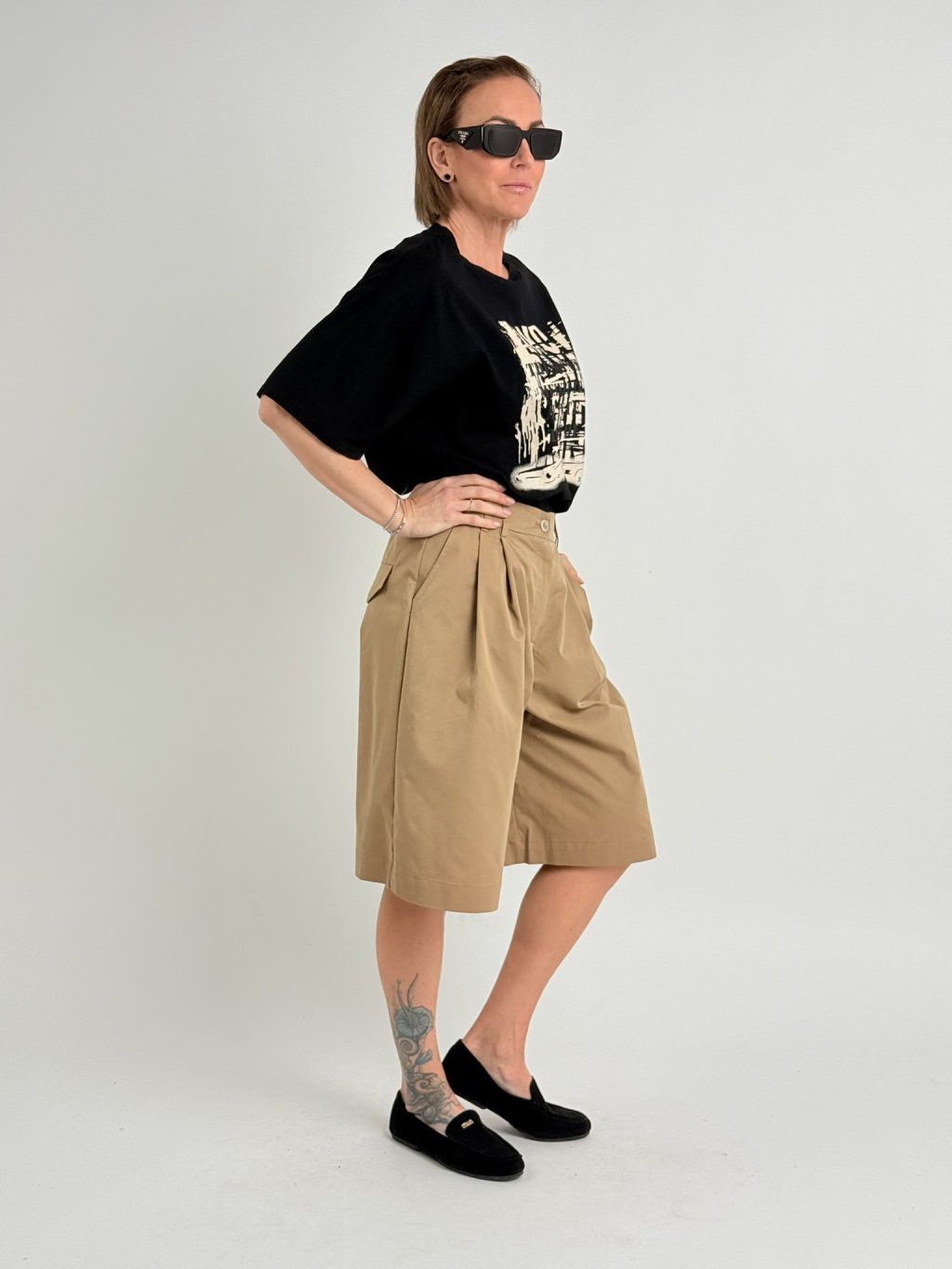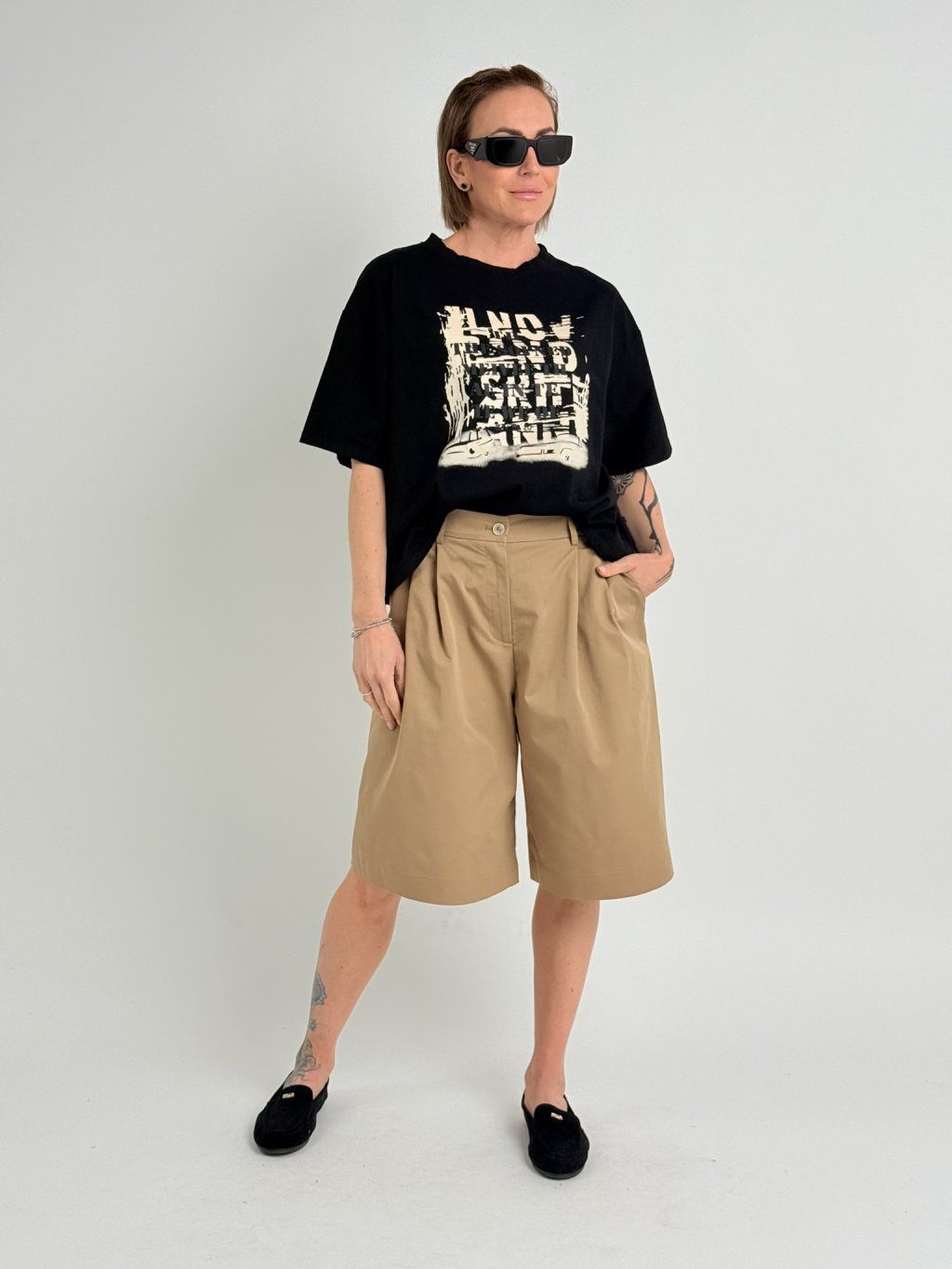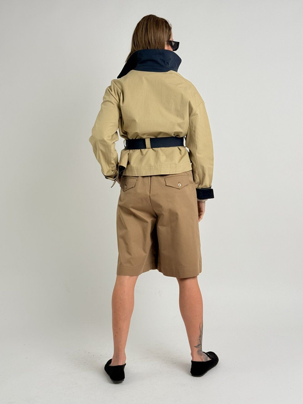Bermudy v zadnej časti pásu sú elastické a majú vrecká s chlopňami a gombíkom, v prednej časti sú tiež vrecká, patentky a pútka na opasok.MIERKA!!!!