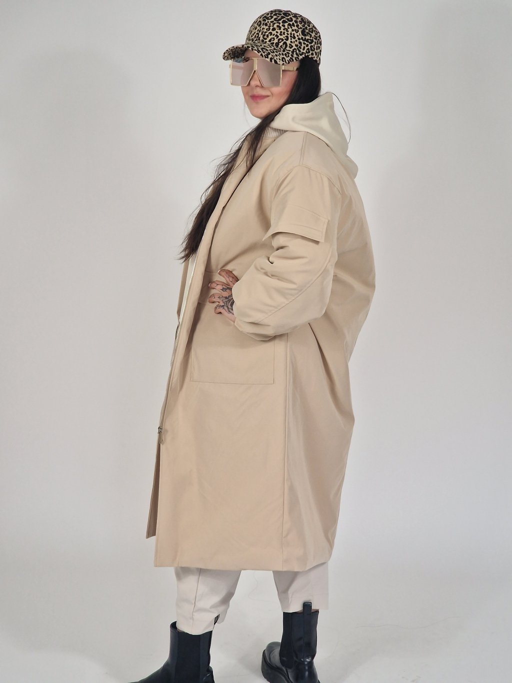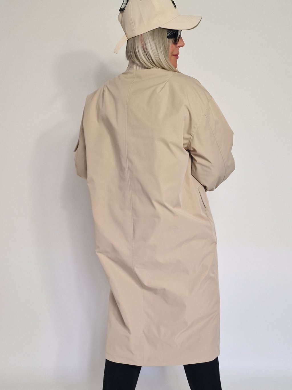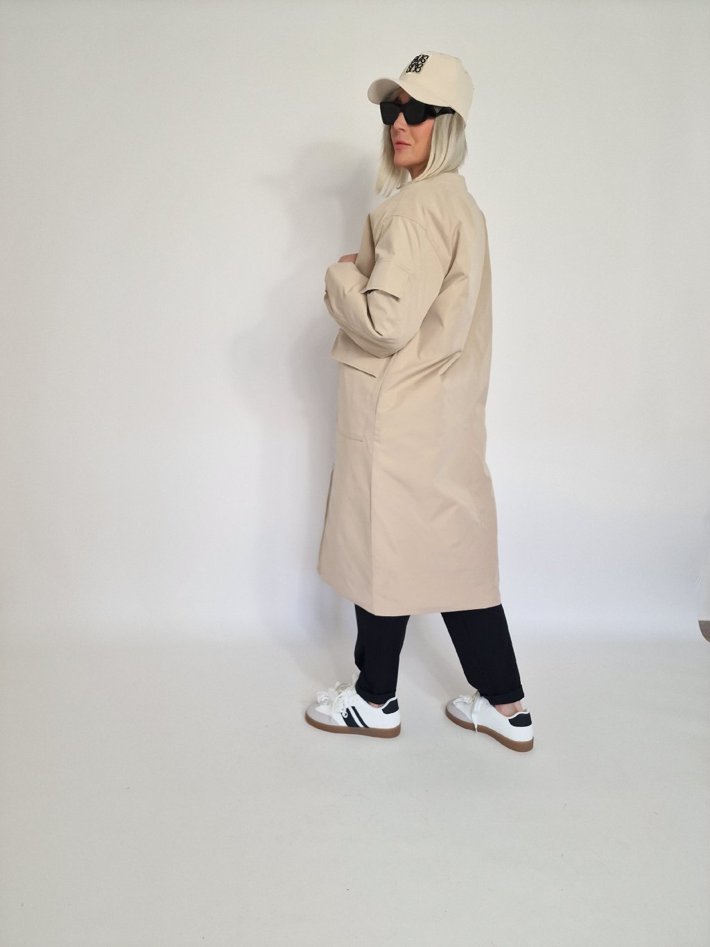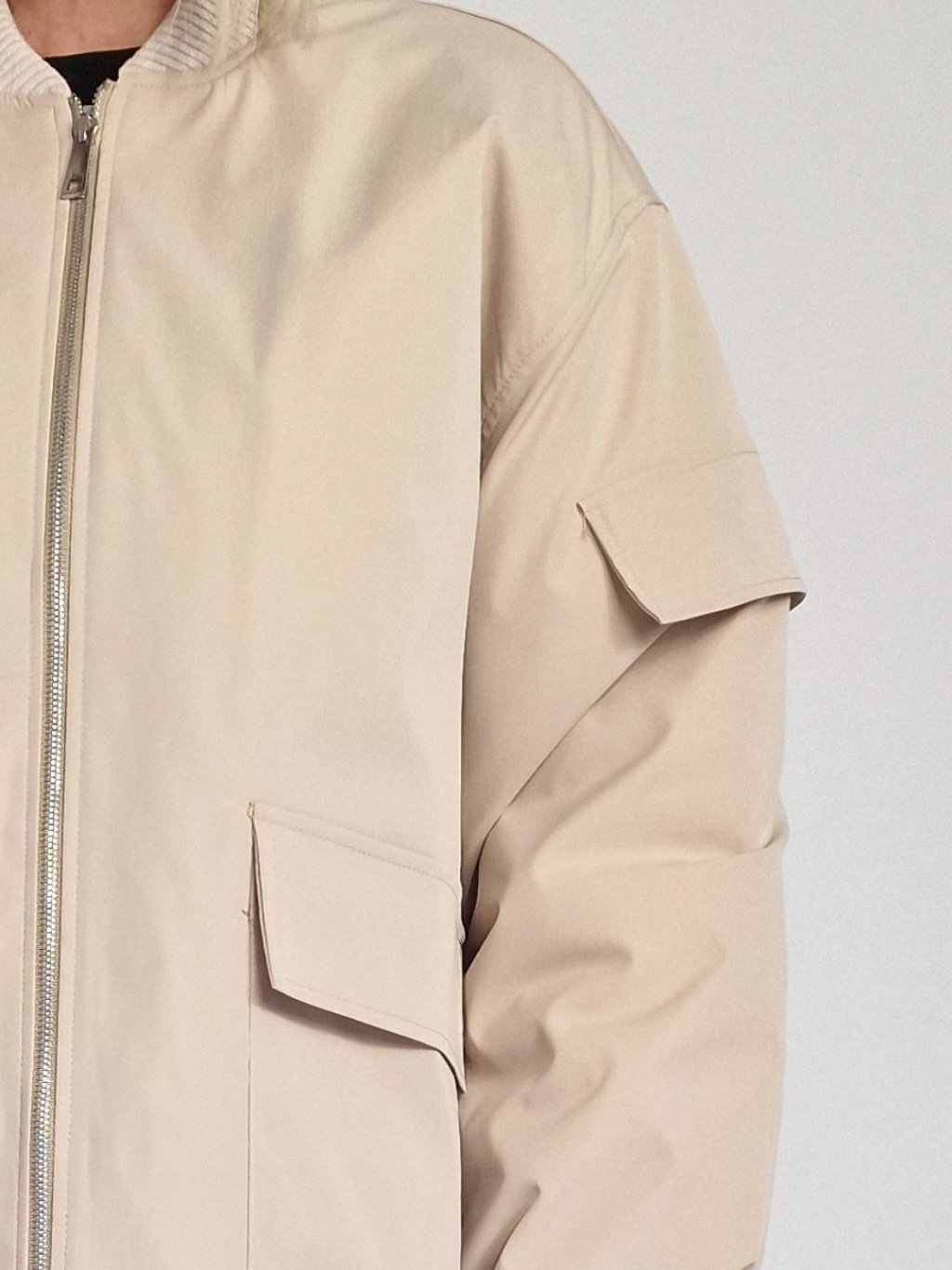 Skvelý bomber kabát s prešívanou podšívkou, zapínaním na zips, rukávmi ukončenými gumou, nášivkou vo výstrihu a veľkými vreckami s nášivkami.