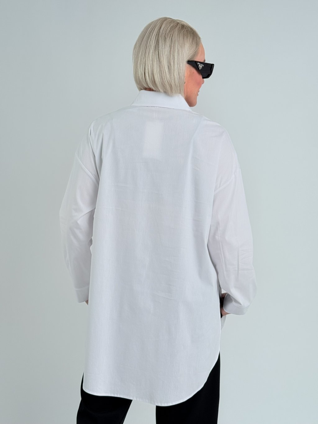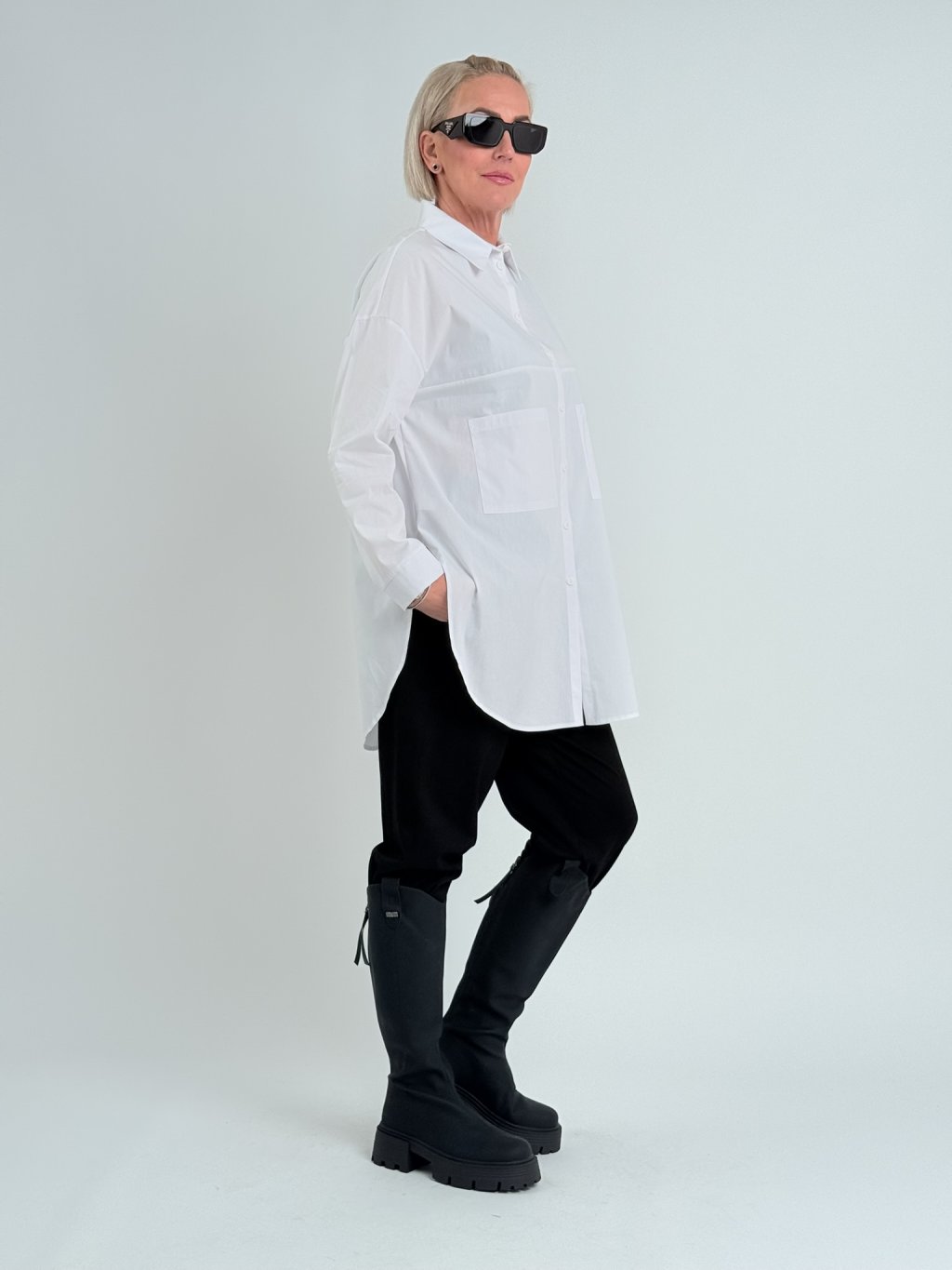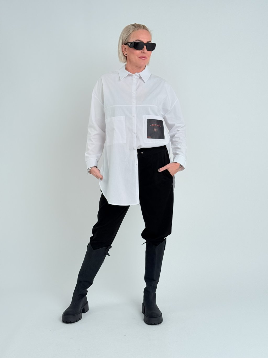 Skvelé tričko s potlačou na vrecku a bočnými rozparky.