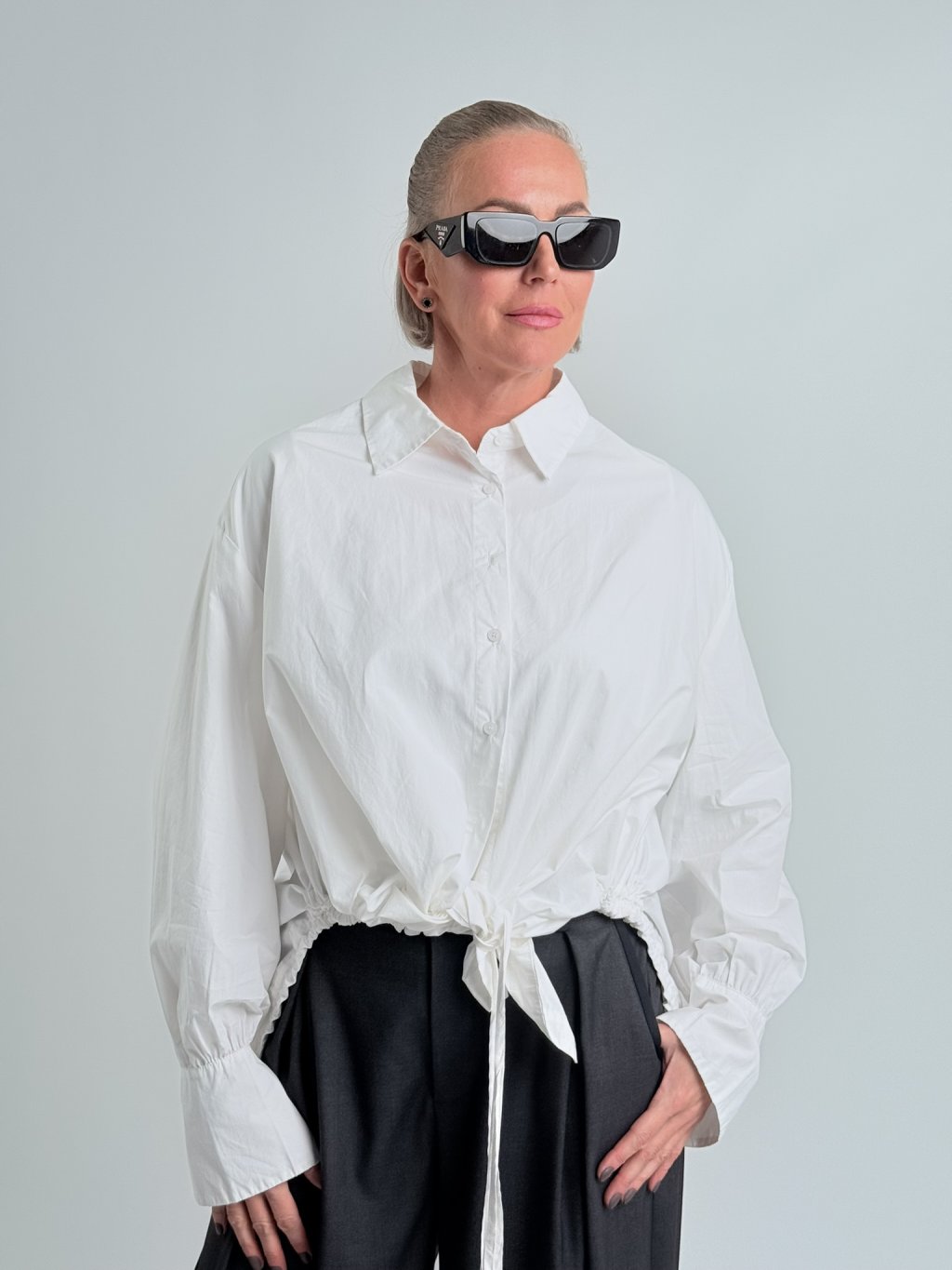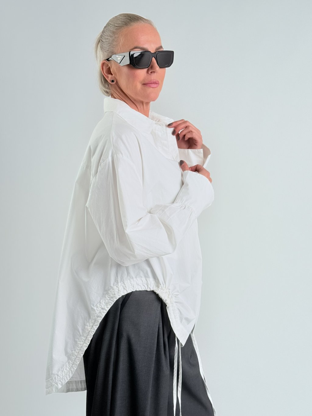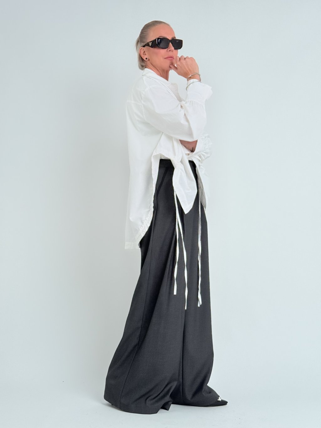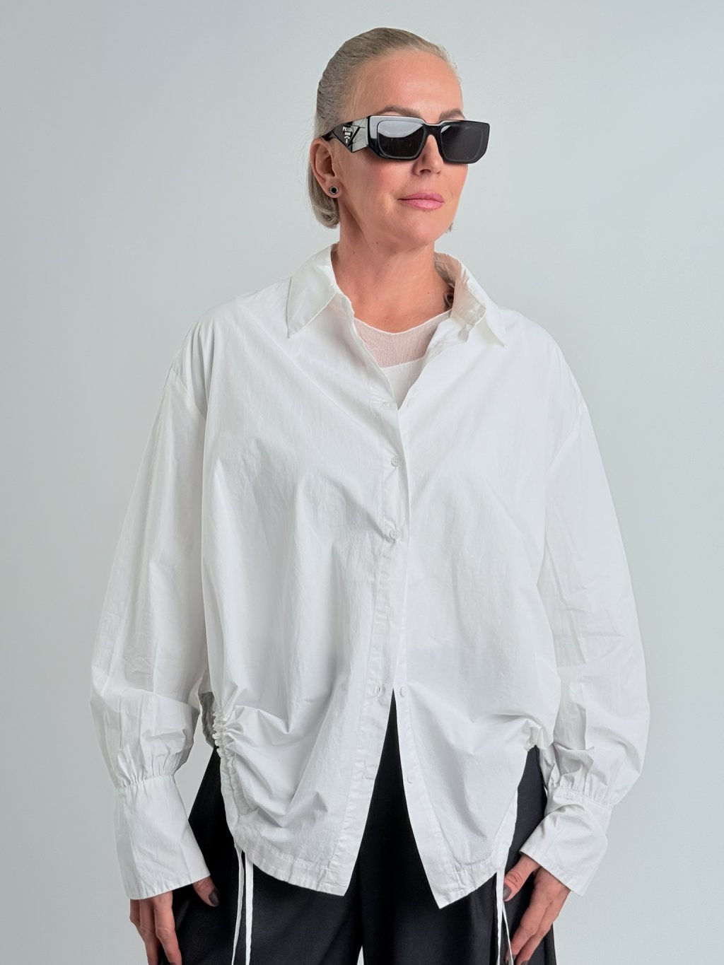 Oversize tričko s prestrihmi na bokoch, ktoré sa dajú upraviť vďaka šnúrke.