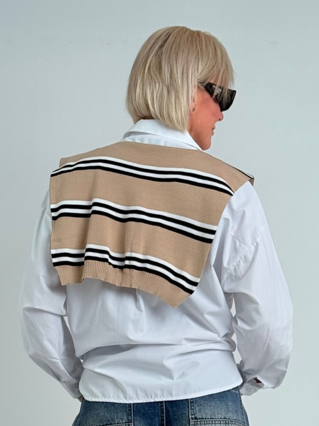Jednoduchá biela košeľa s predĺženým chrbtom, ktorá nesmie chýbať v žiadnom šatníku.