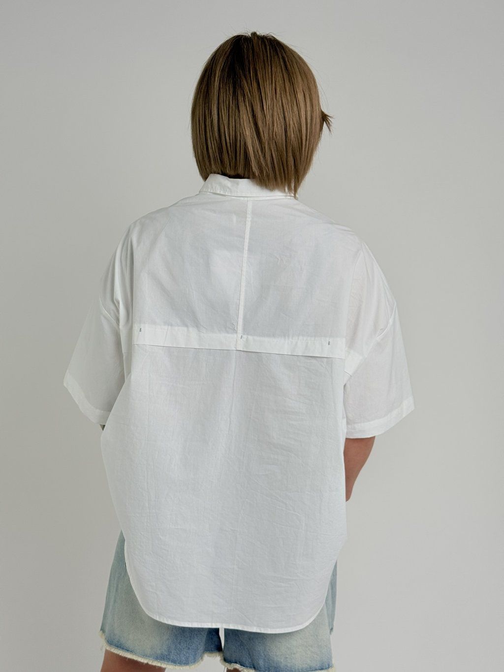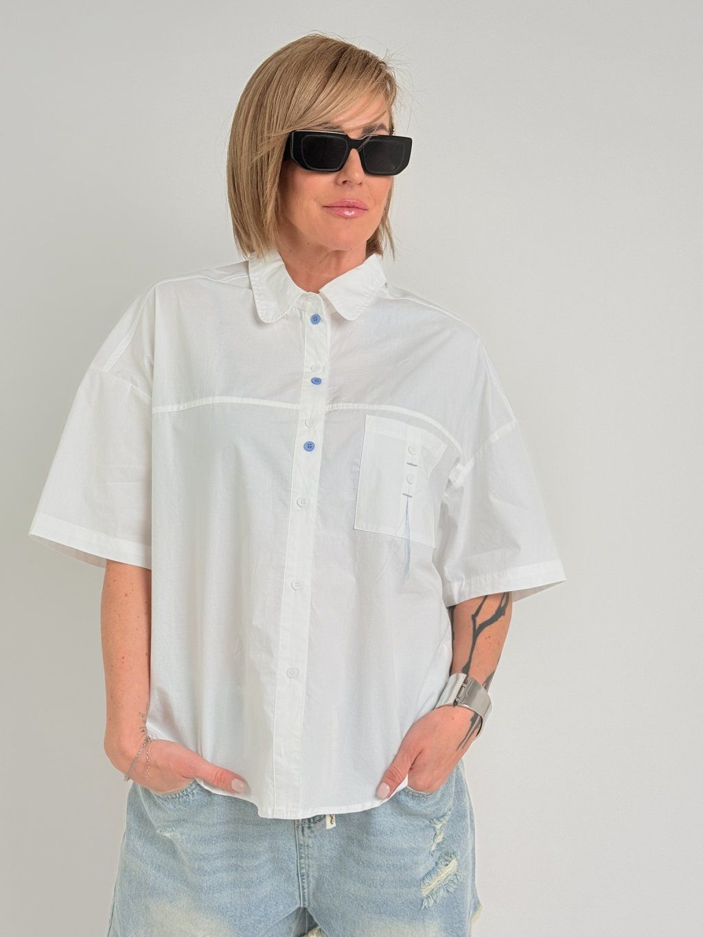 Krásna, ľahká košeľa s krátkymi rukávmi, vreckom s dvoma gombíkmi a ozdobnou niťou.