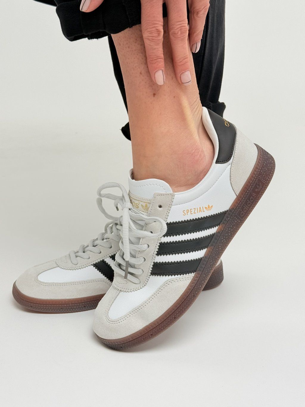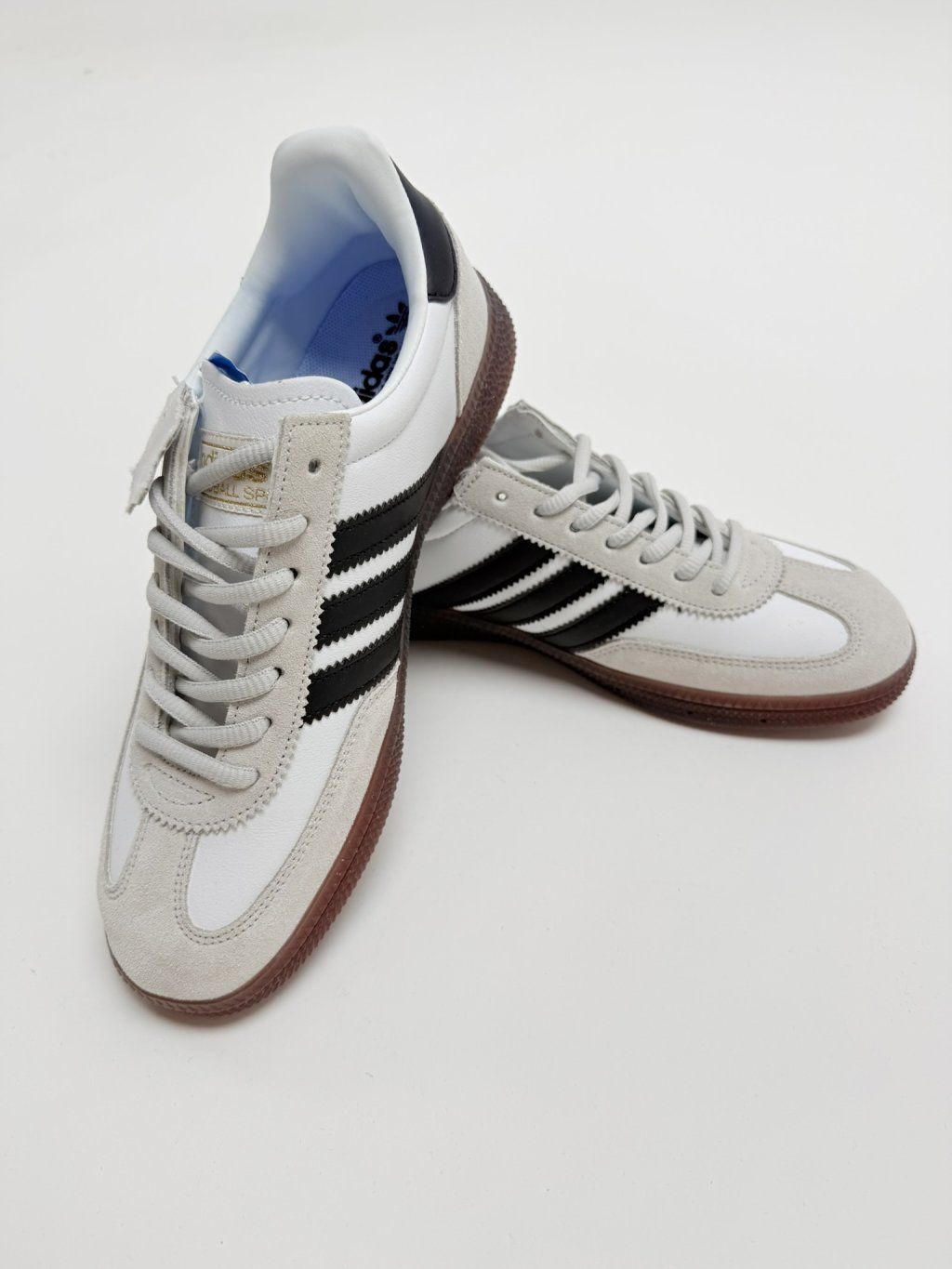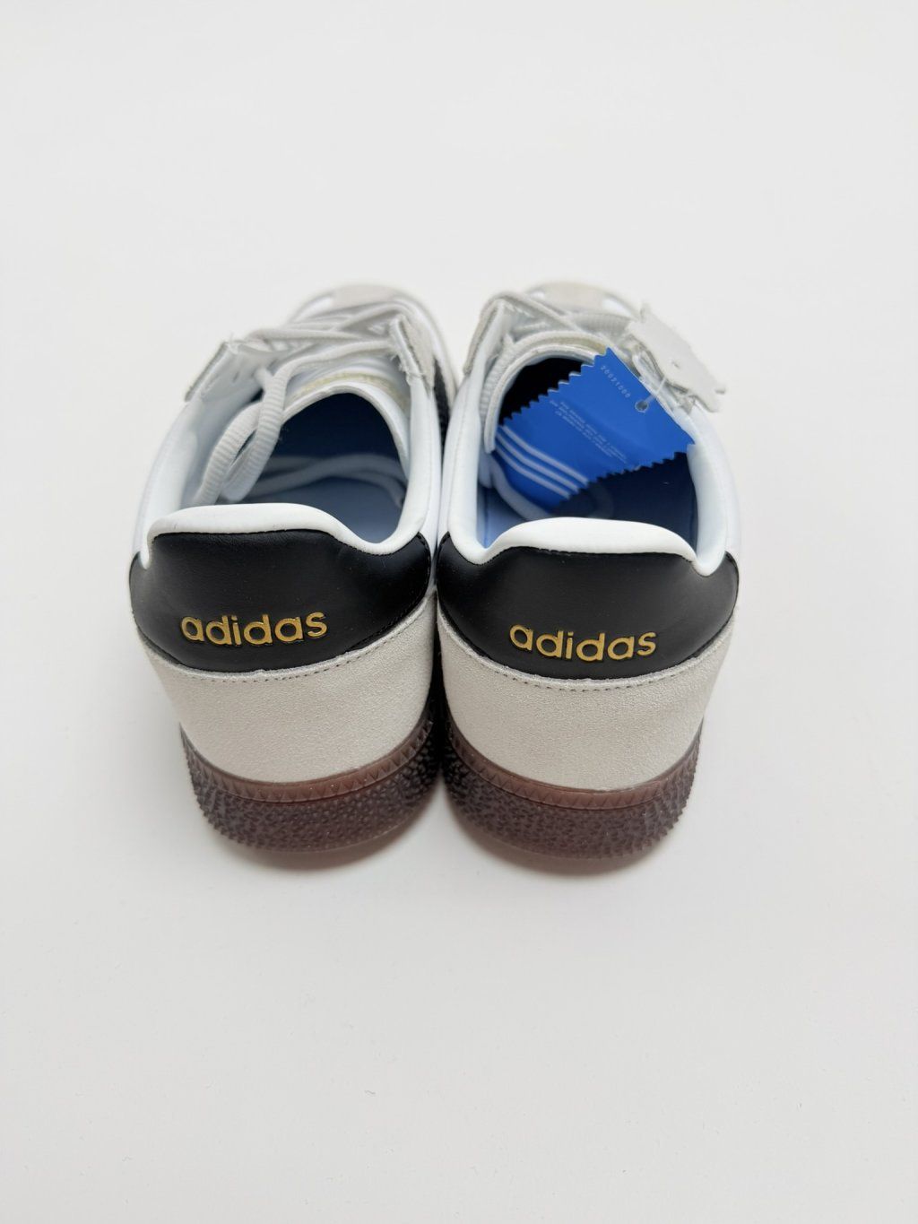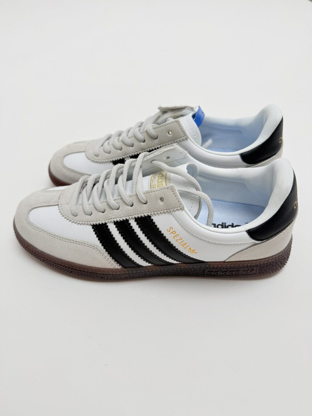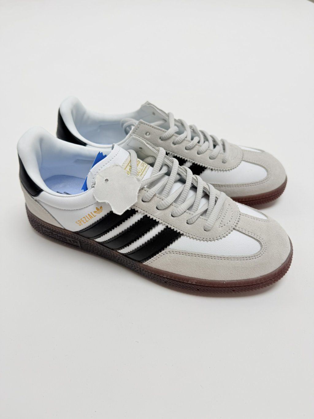 Tenisky v kombinácii kože a semišu s tromi pruhmi v rôznych farbách a hnedou podrážkou. Meranie stielky.