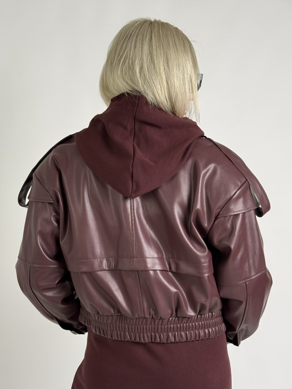 Luxusná koženková bunda nadmernej veľkosti s podšívkou, veľkými vreckami, zapínaním na zips a gumou na spodnom okraji bundy. Krásny doplnok k džínsom, nohaviciam, sukniam a šatám.