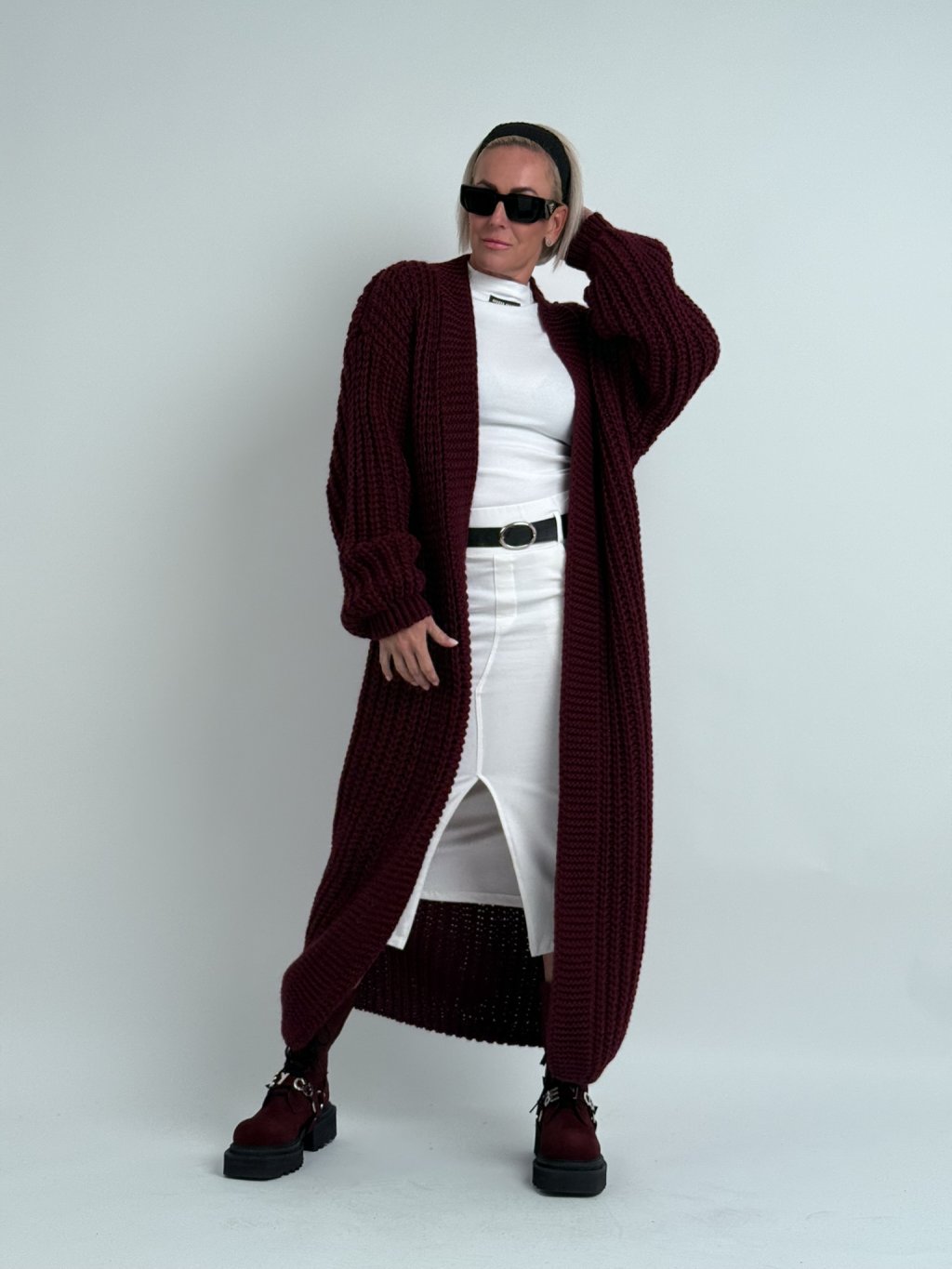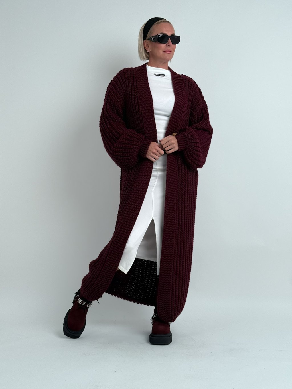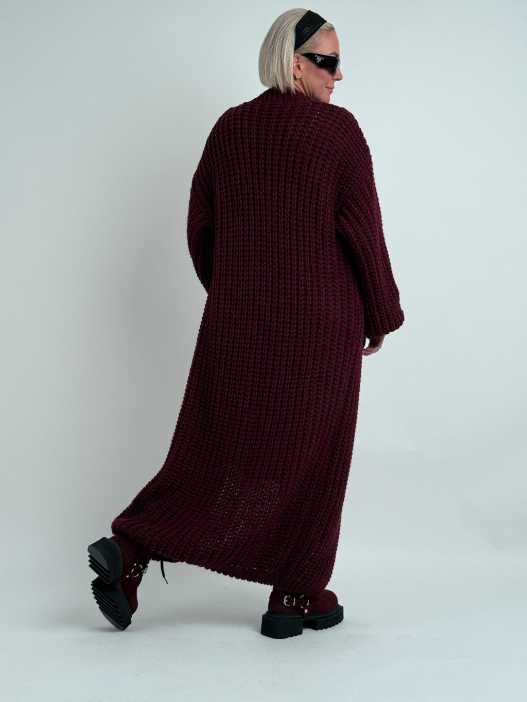 Nádherný, extra dlhý sveter, hrubo pletený kardigán bez gombíka.
