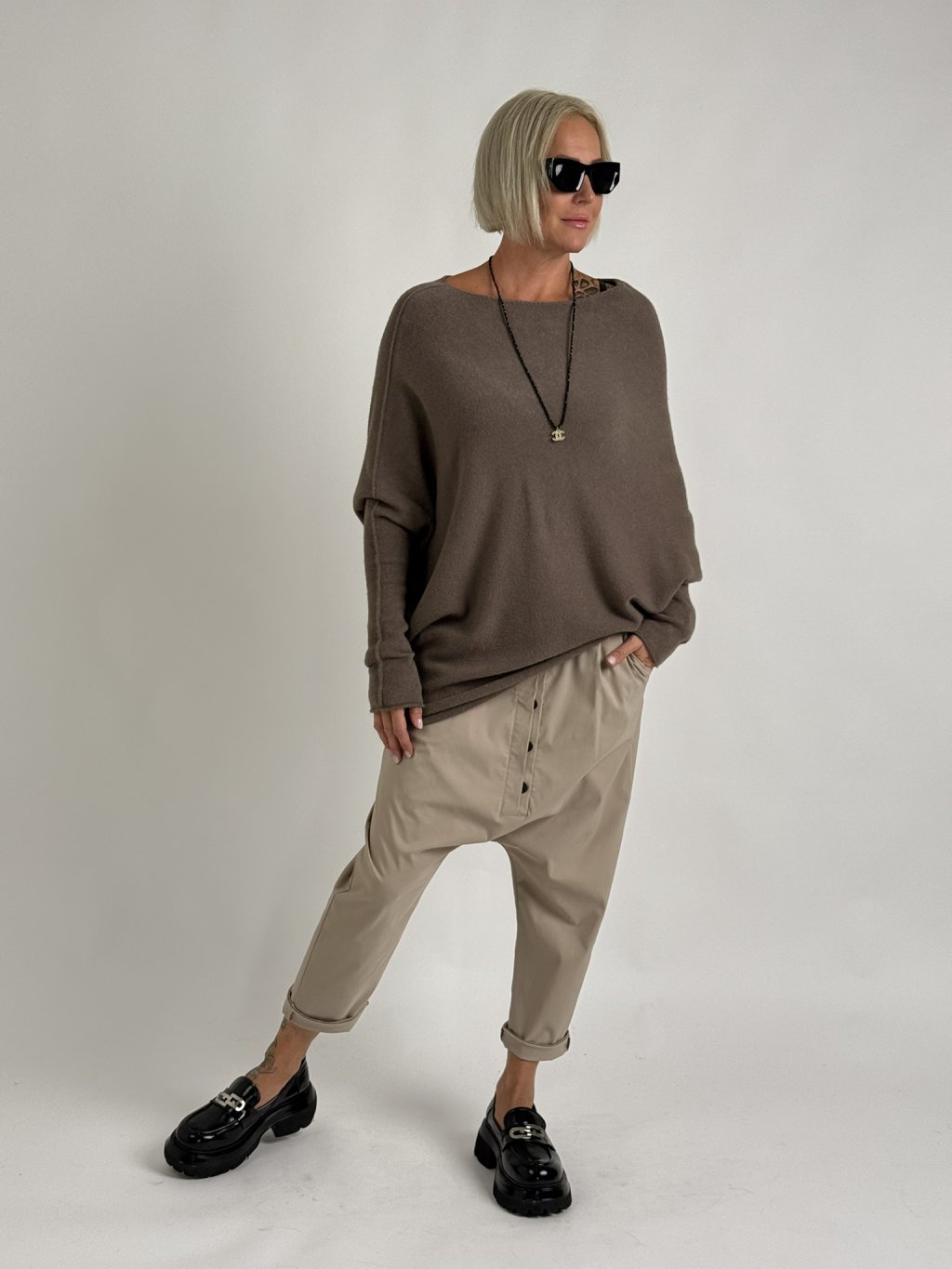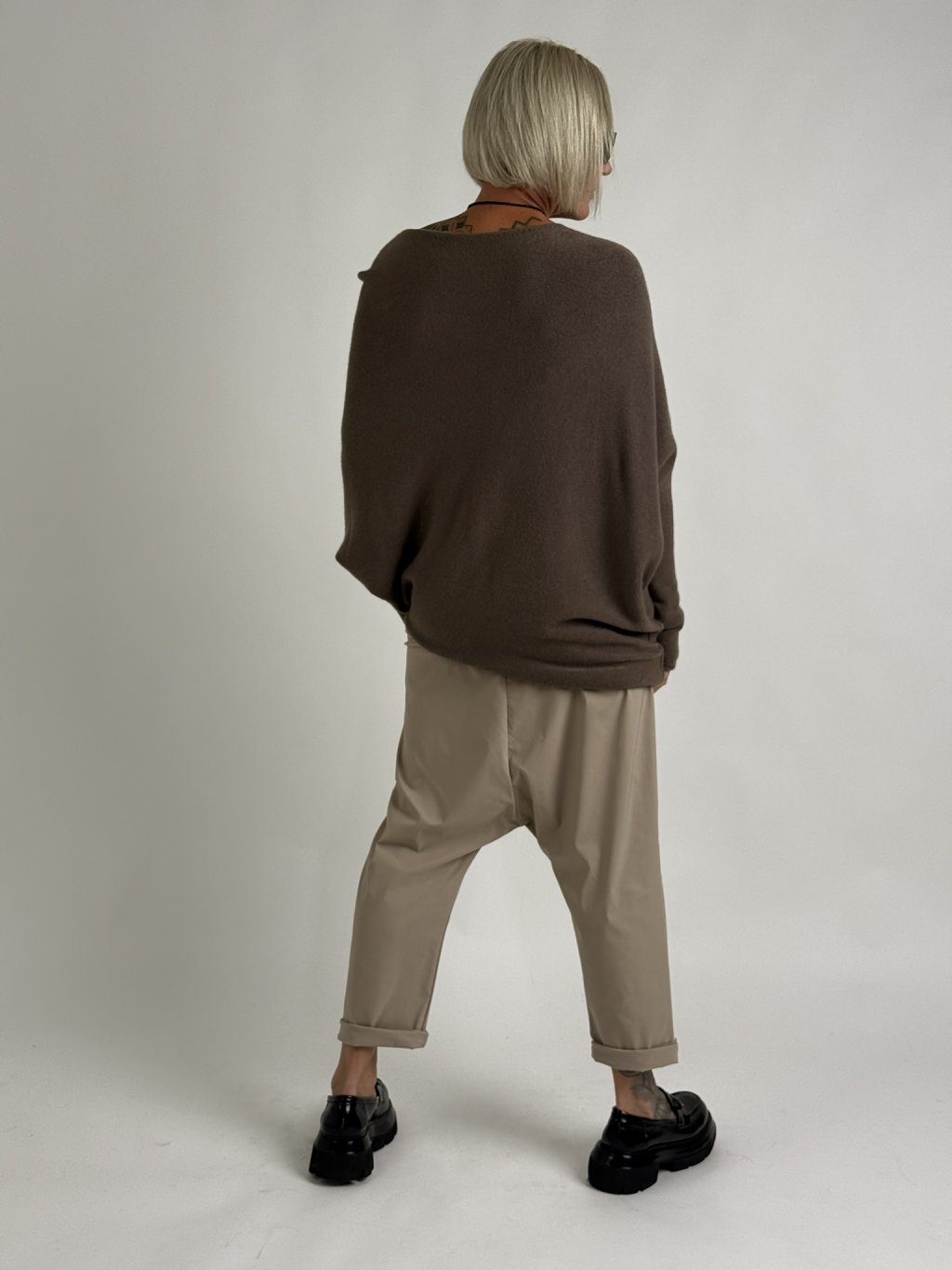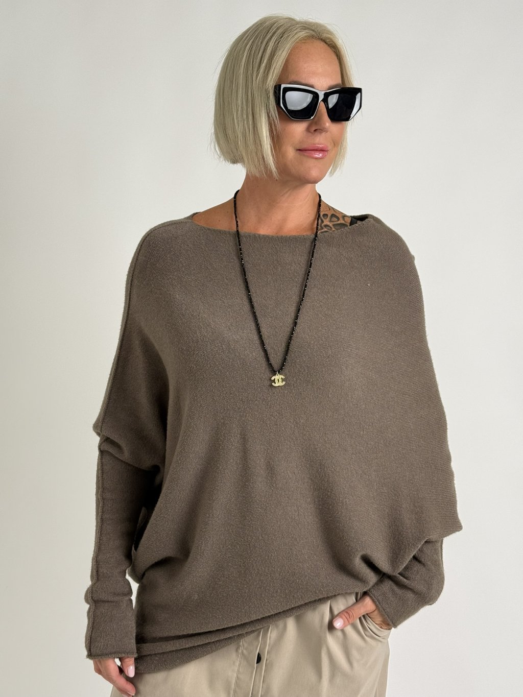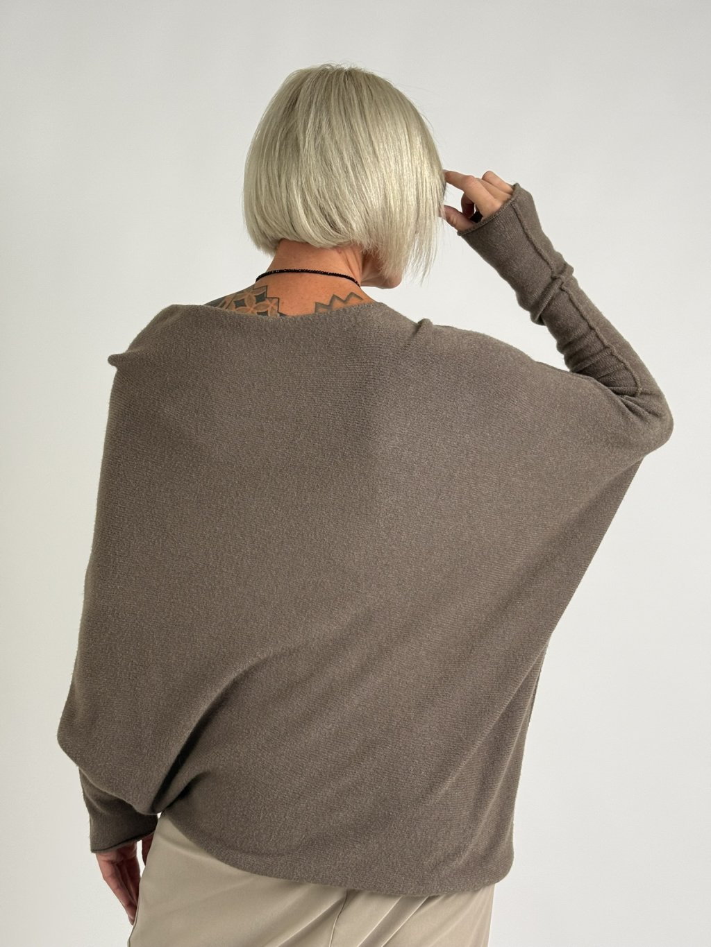 Krásny, elastický, asymetrický sveter s lodičkovým výstrihom. Mäkký a nekousavý.