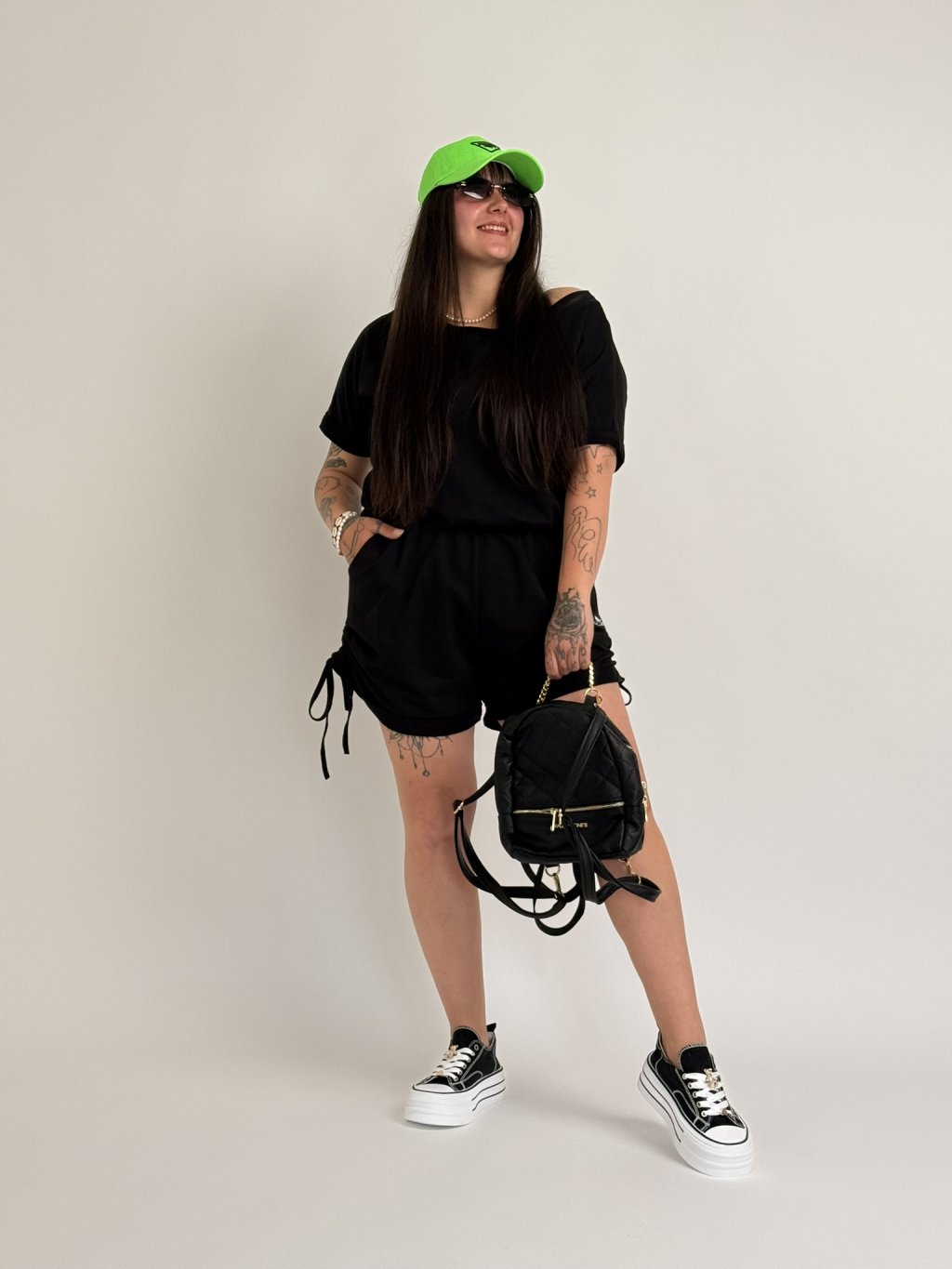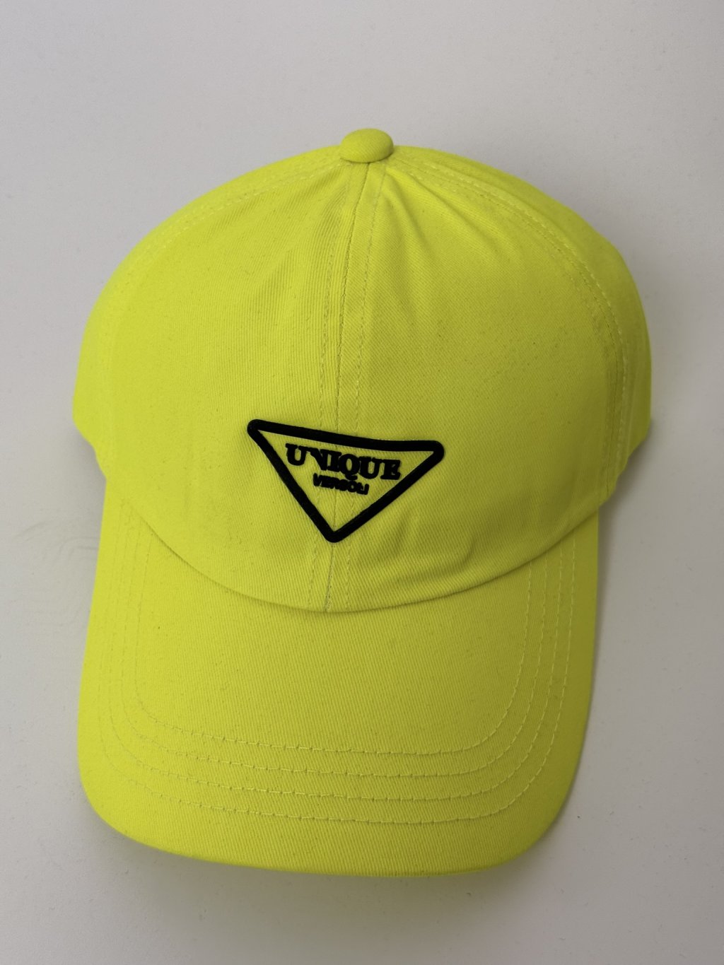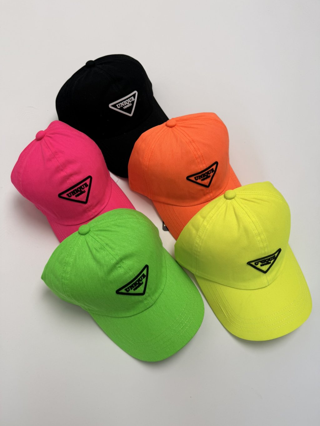 Krásna čiapka s reguláciou obvodu a čiernou výšivkou na prednej strane.