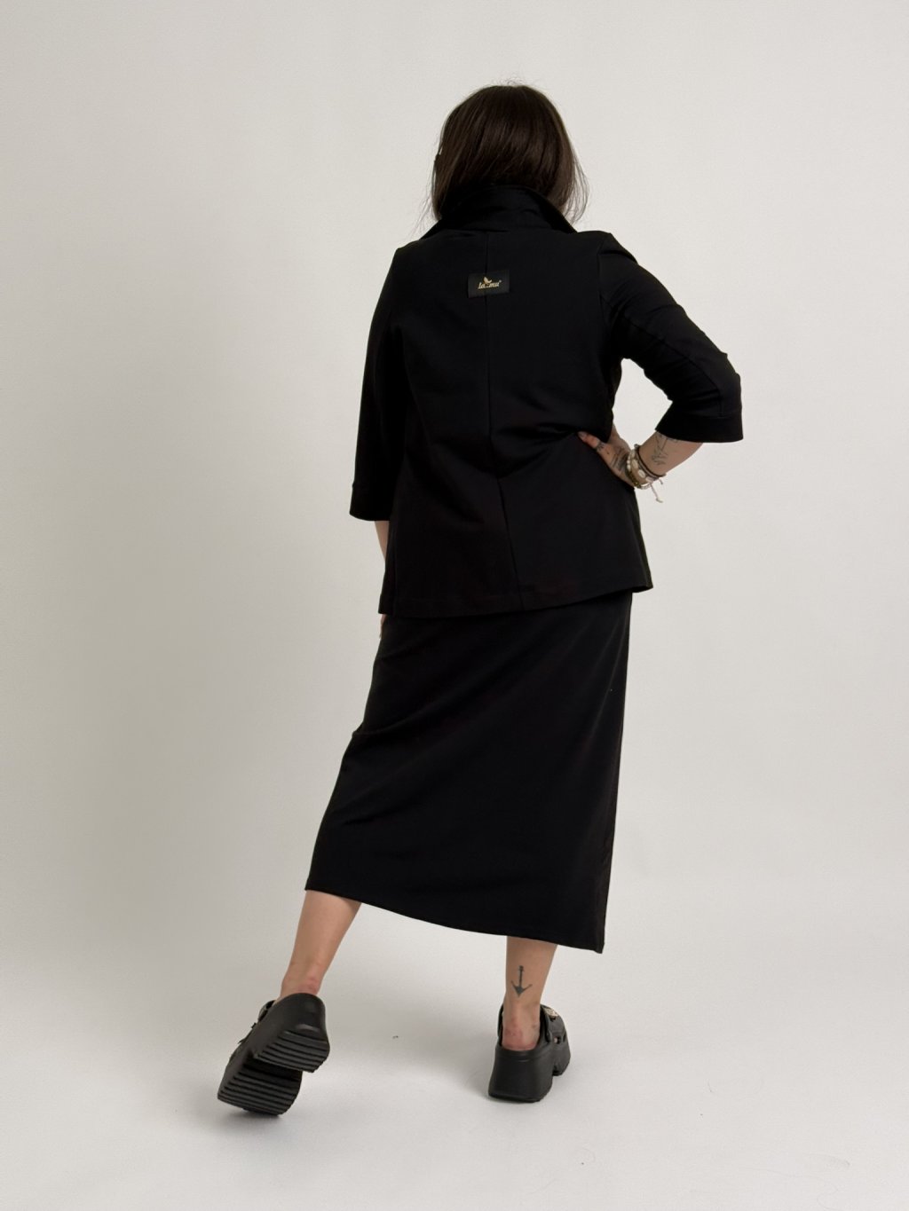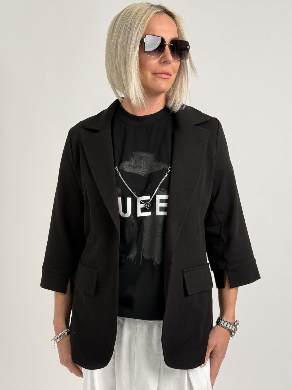 Luxusná bavlnená bunda mierne priliehavého strihu s 3/4 rukávmi a rozparkom.