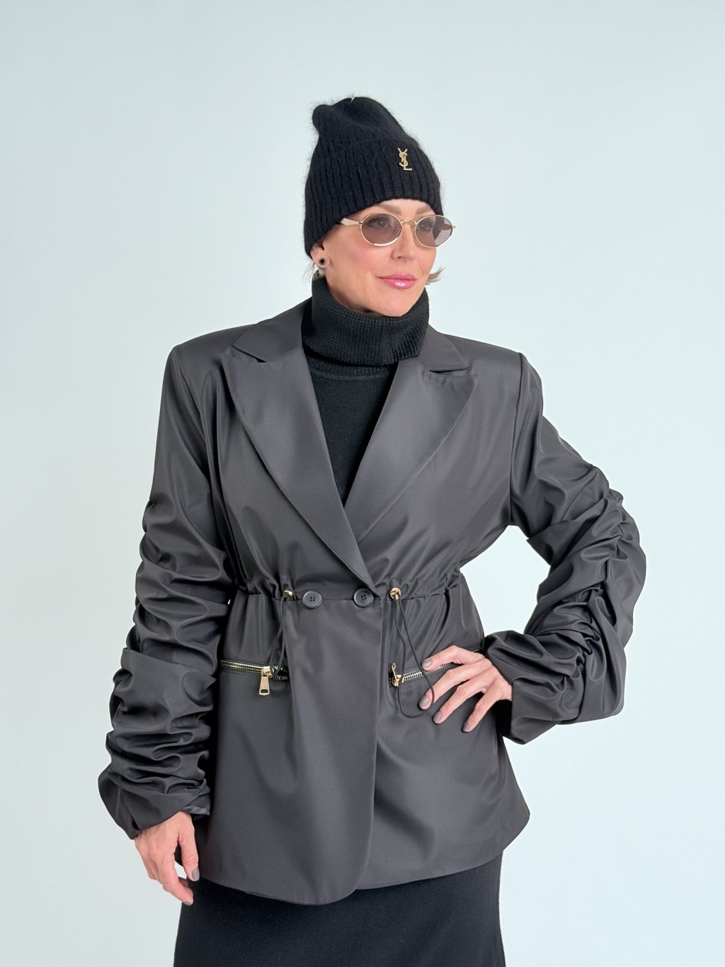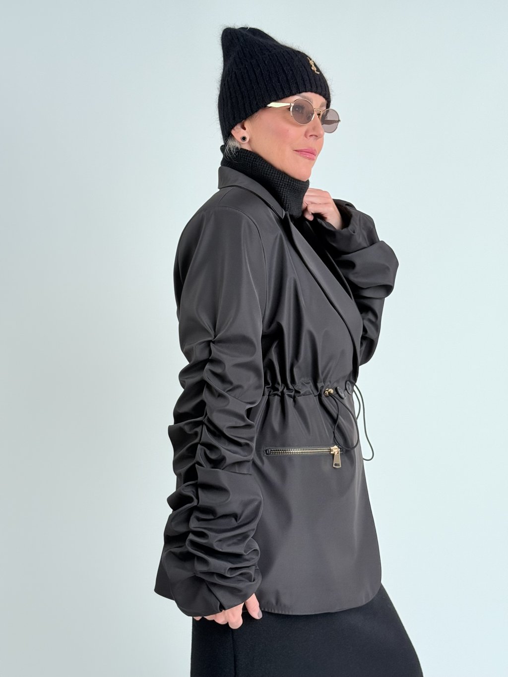 Elegantná, luxusná, nadčasová bunda s nastaviteľnou šírkou, vďaka šnúrke s brzdami, polstrovaným rukávom a množstvom rozšírených rukávov.JEDINEČNÁ!!!!