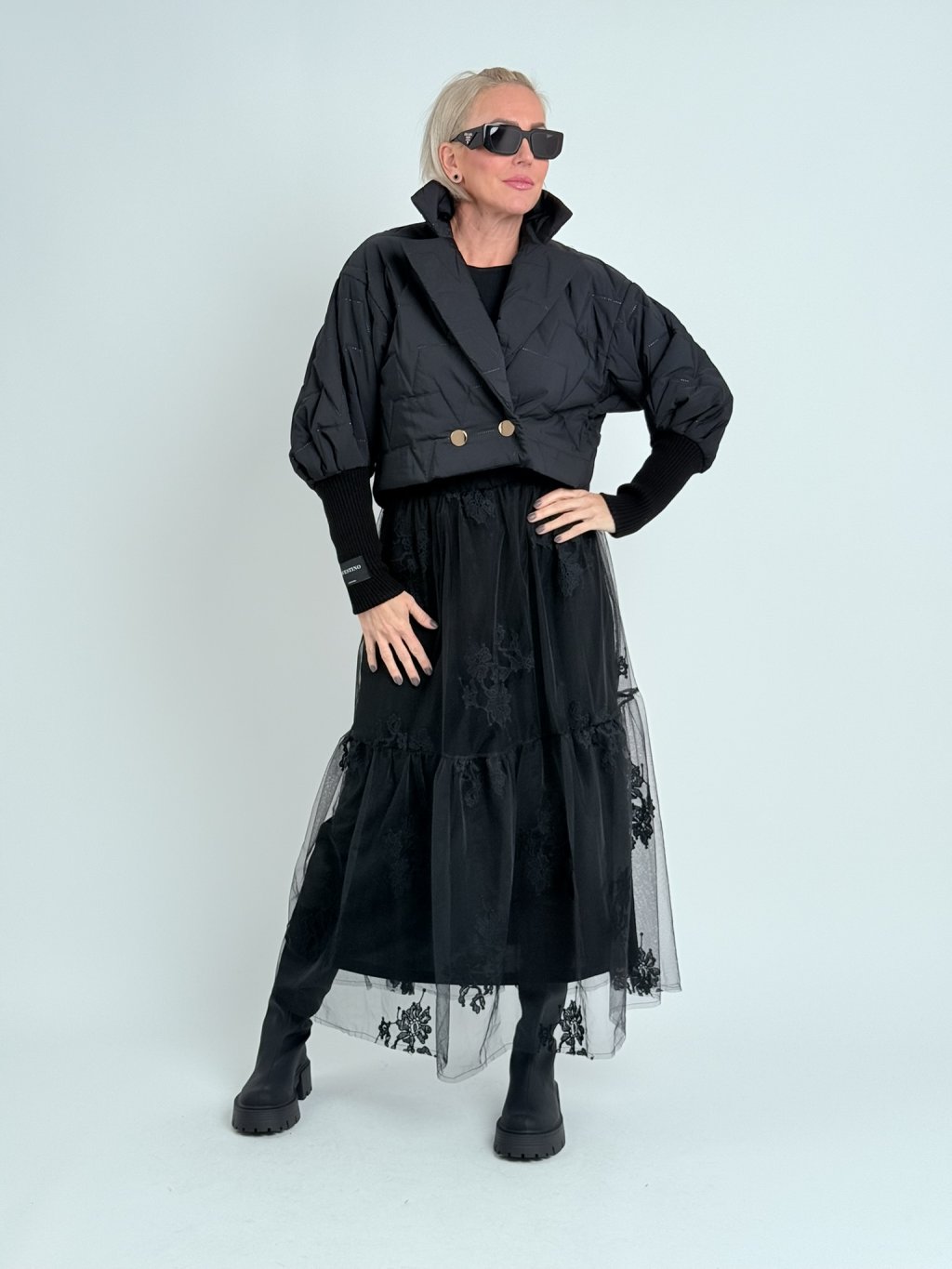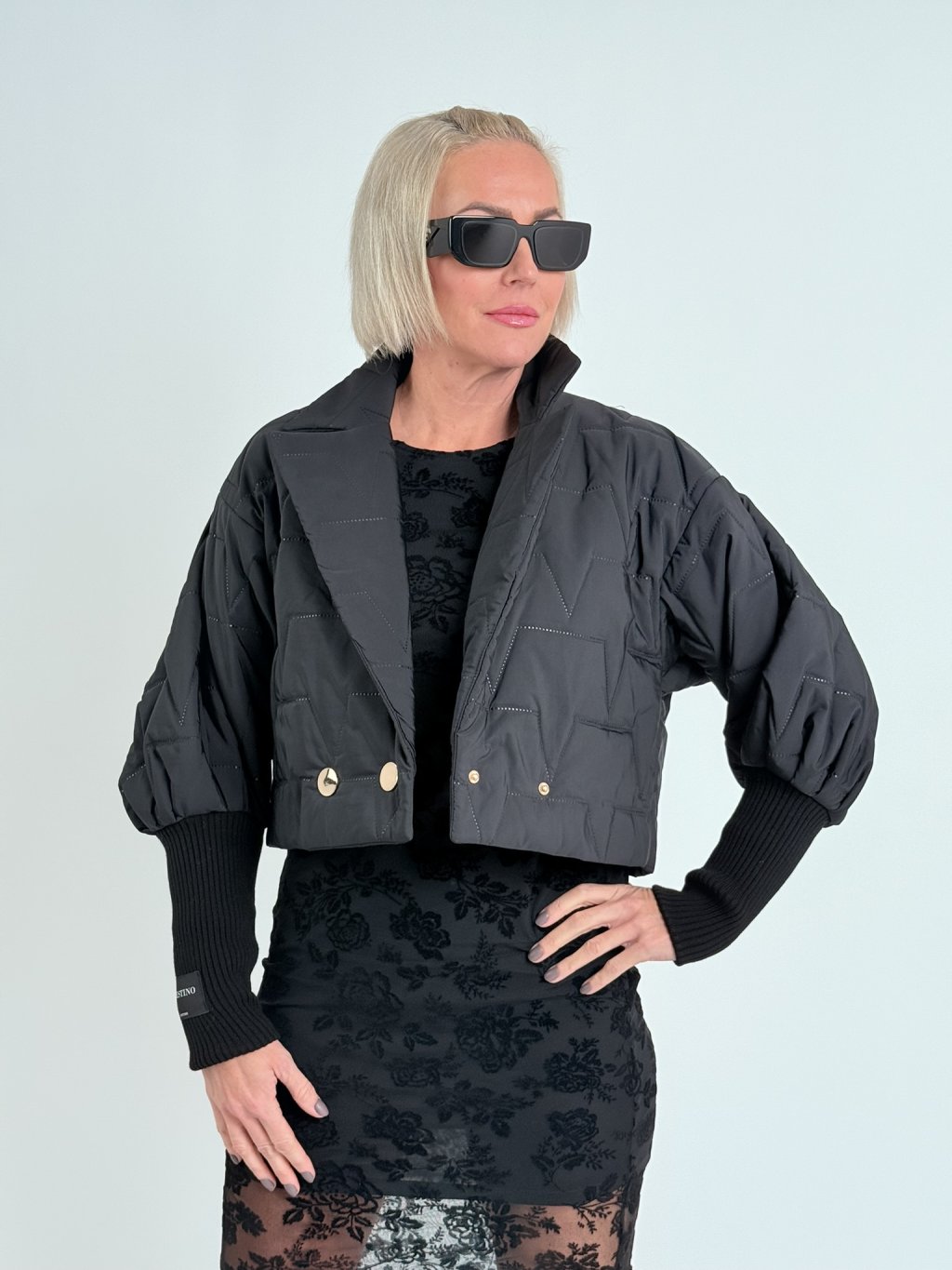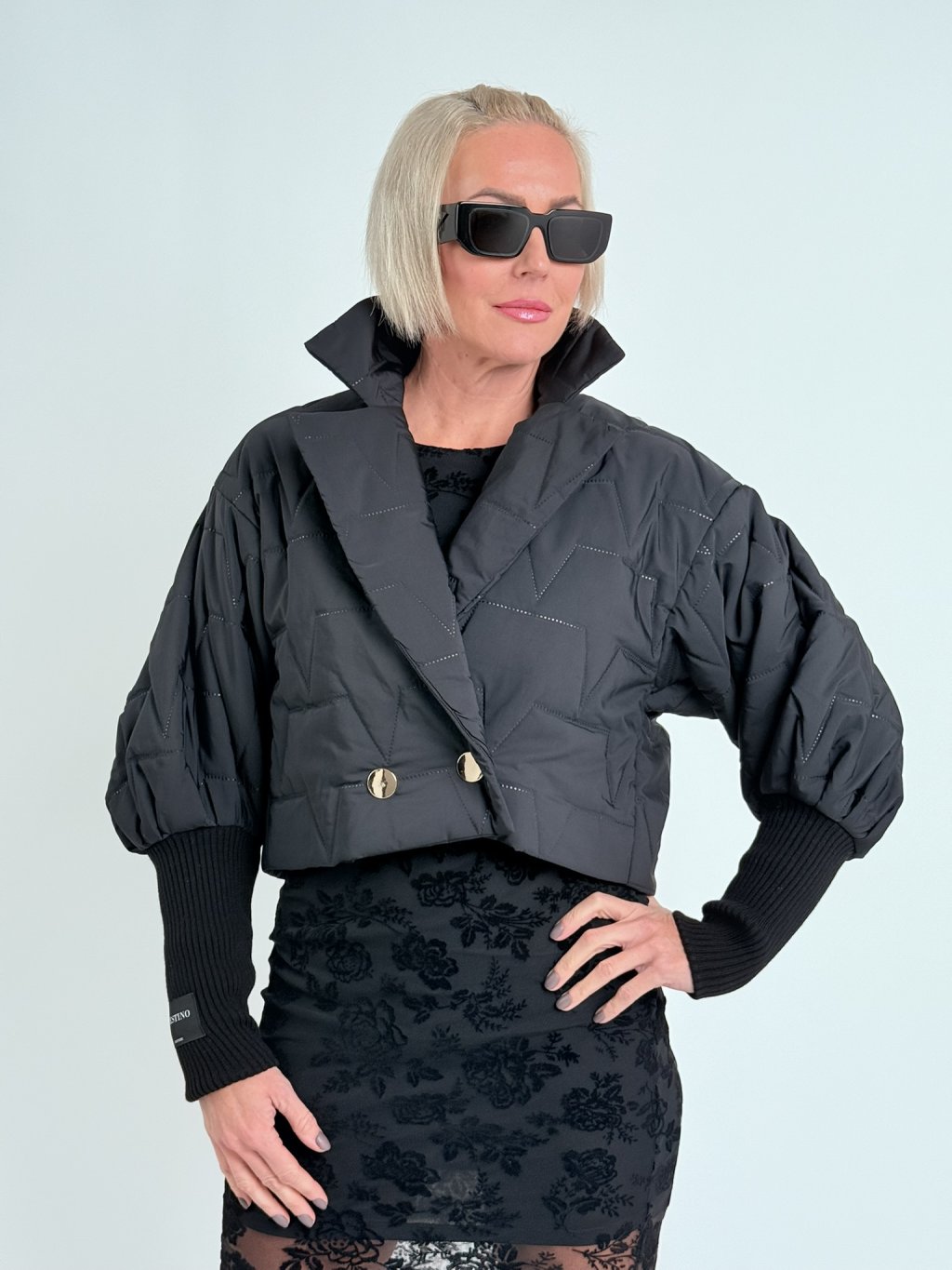 Skvelé, ľahšie sako s podšívkou, zapínaním na gombíky, klopami a vysokými náplecmi na rukávoch.