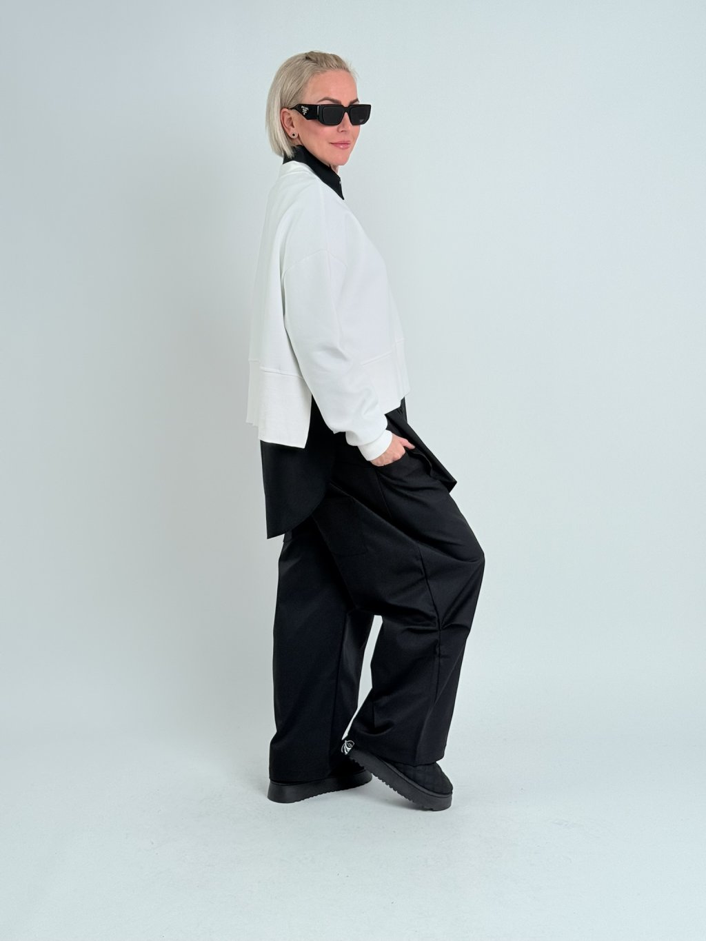 Skvelé tričko s potlačou na vrecku a bočnými rozparky.