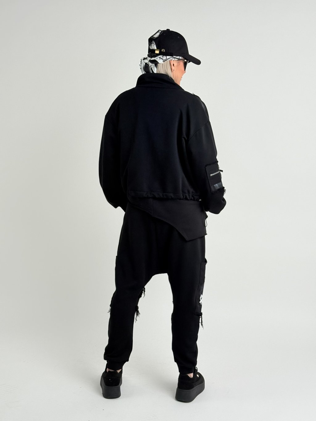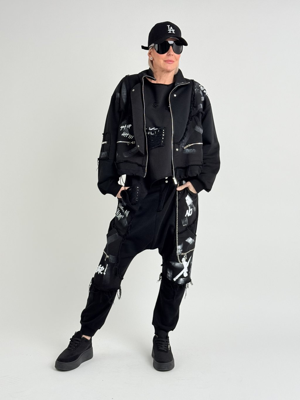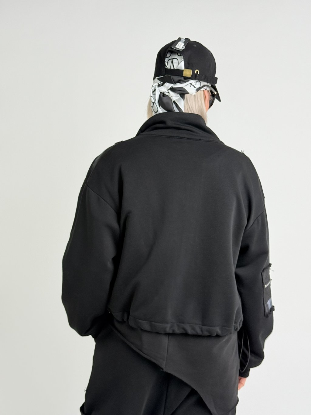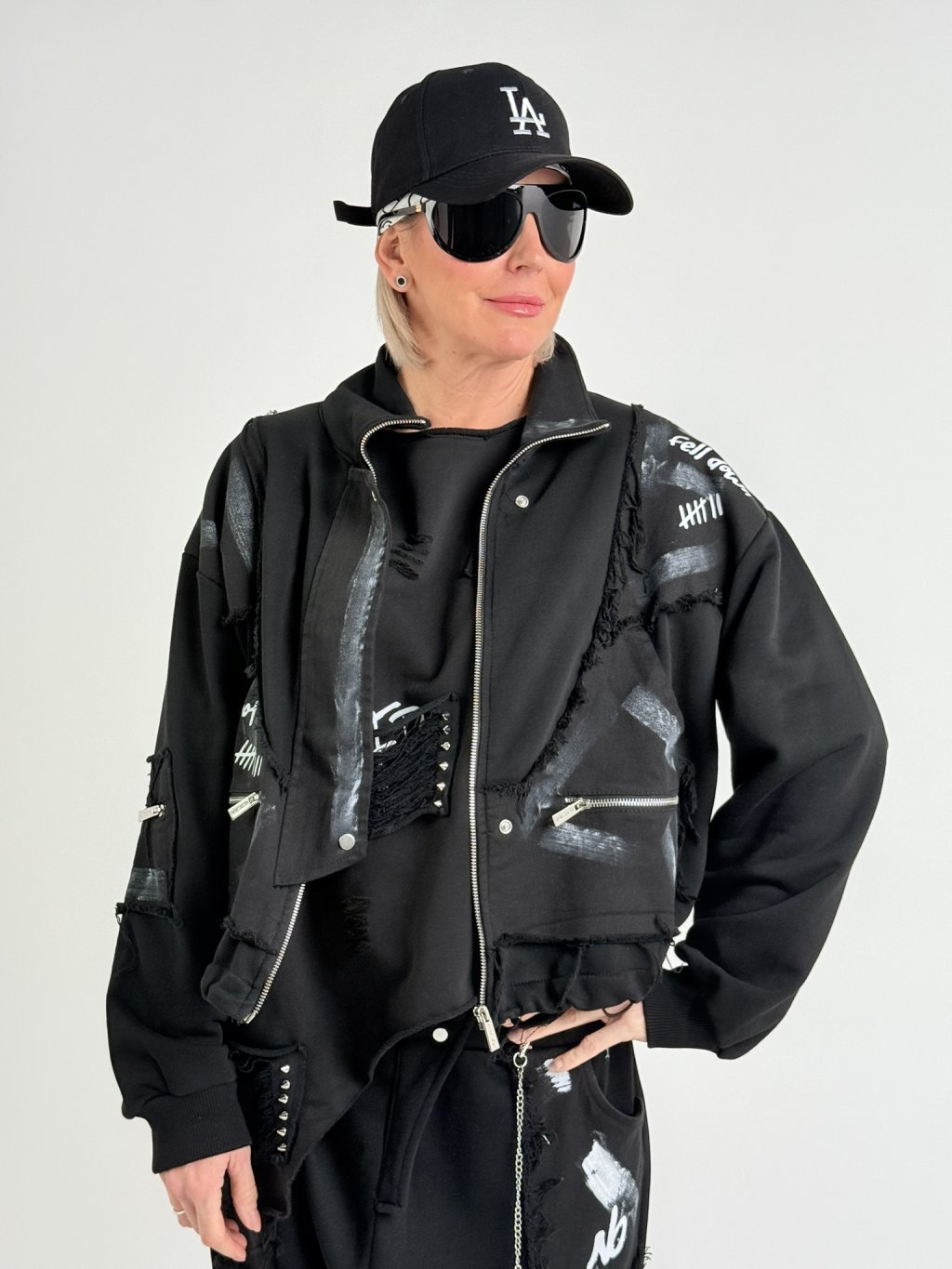 Voľnejšia mikinová bunda so stojačikom, zapínanie na zips, vrecká na zips. Celú mikinu zdobí biela potlač, ktorú možno v spodnej časti stiahnuť šnúrkou zakončenou brzdičkami.PROSÍM, MERAJTE, OBLEČENIE TEJTO ZNAČKY PATRÍ VÄČŠÍM VEĽKOSTIAM, NEŽ JE UVEDENÉ!!!!