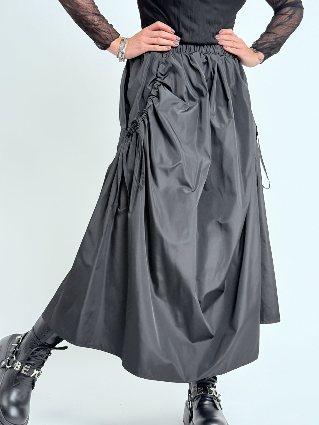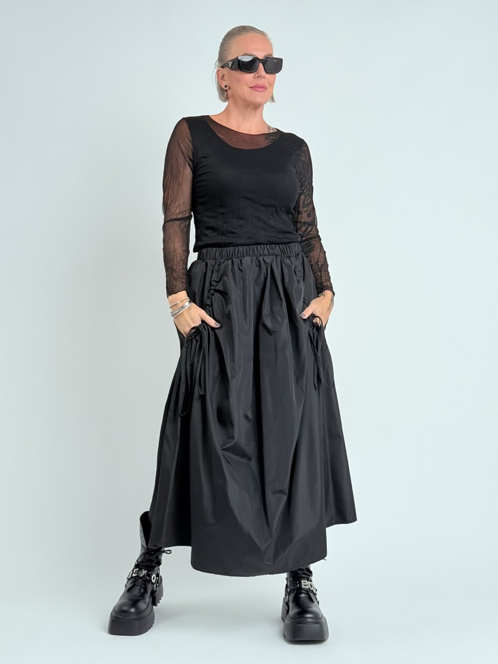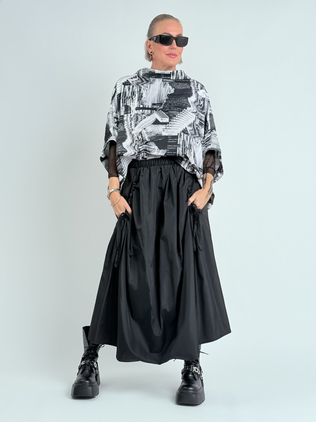 Nádherná, pohodlná, komfortná, zaujímavo riešená sukňa s vreckami so šnúrkou, elastický pás.