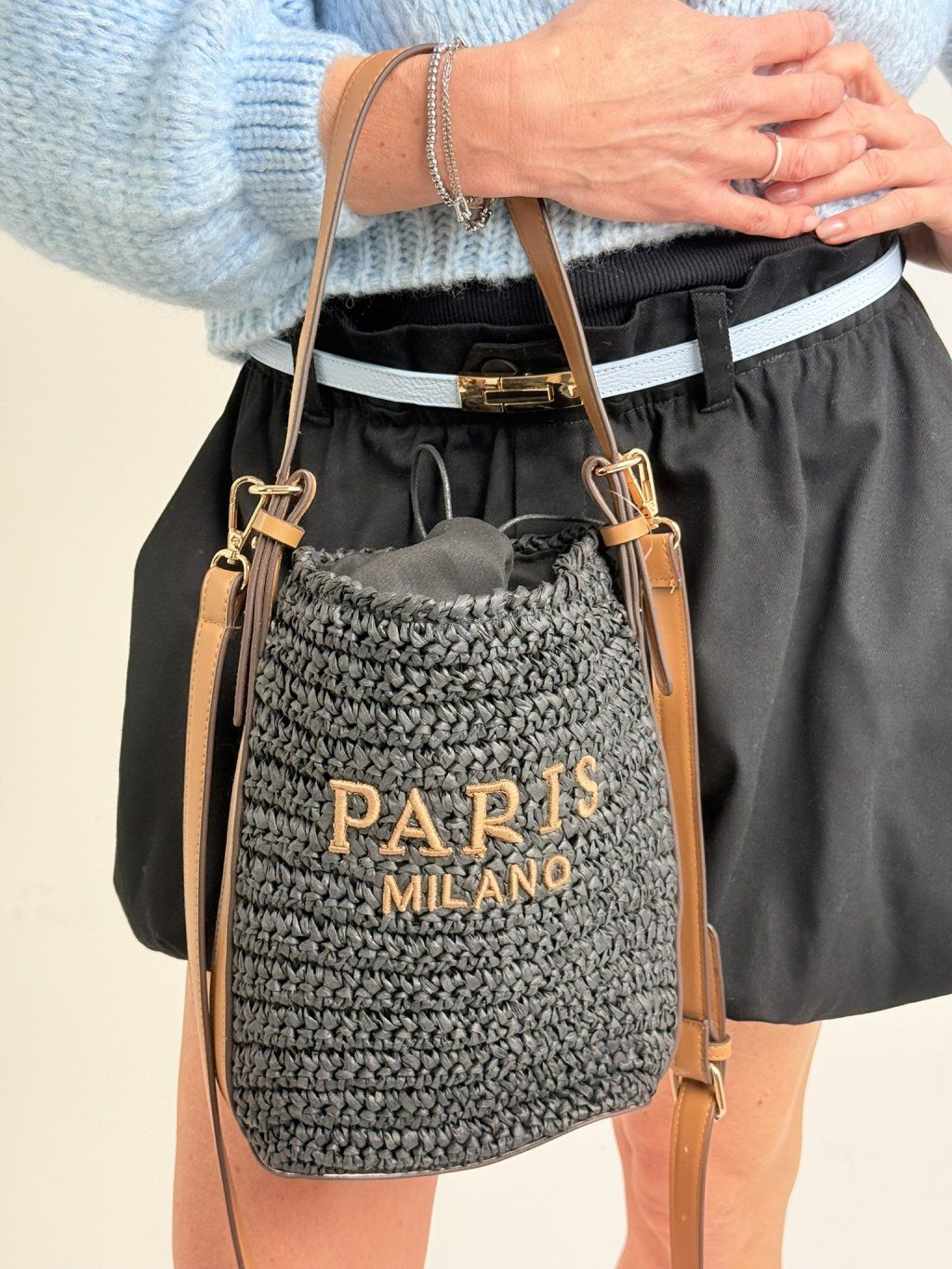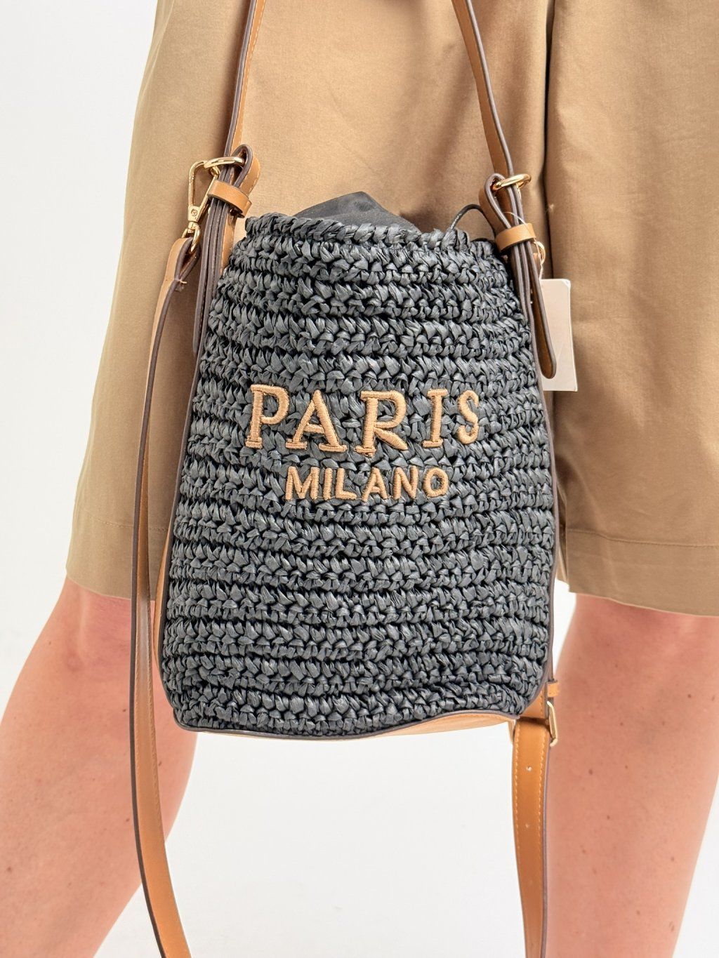 Super letná taška z lycry v kombinácii s hnedou kožou, vnútri sťahovacia šnúrka a popruh, pomocou ktorého sa dá nosiť ako crossbody.