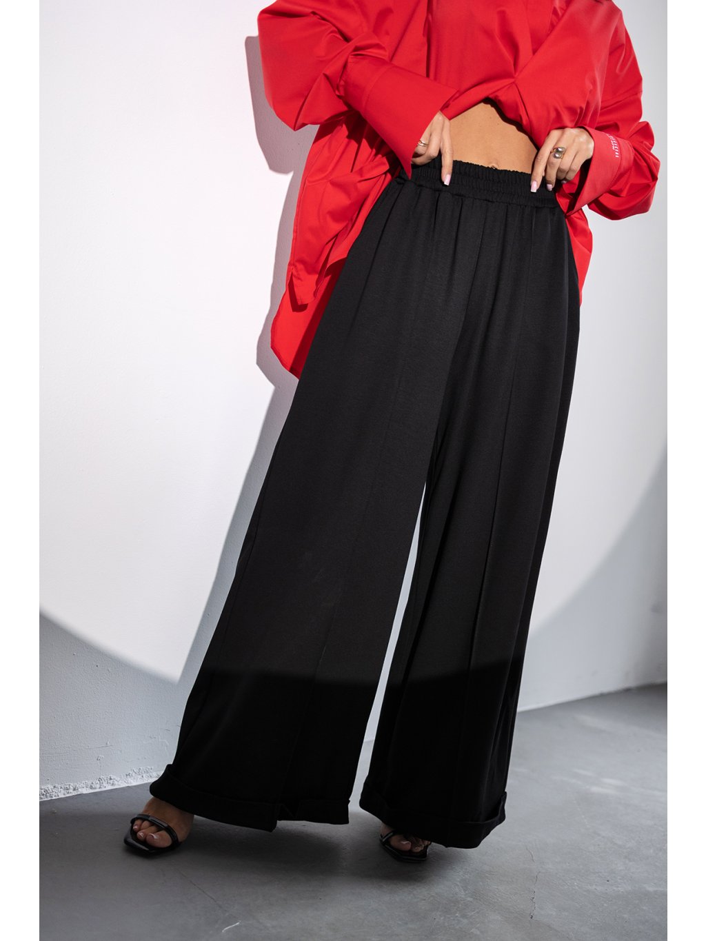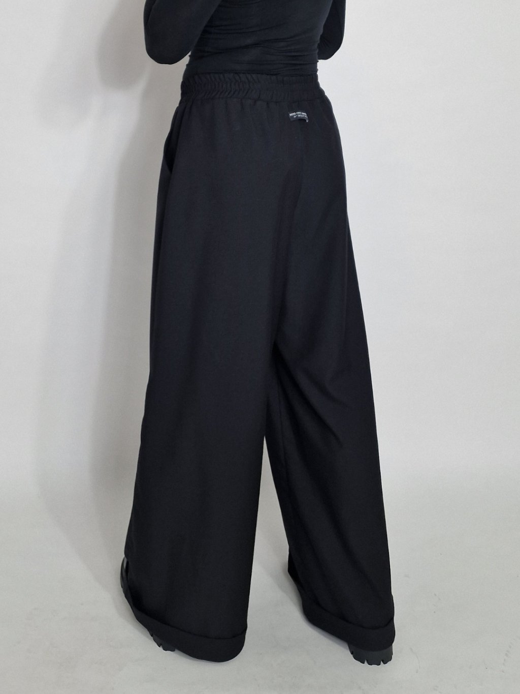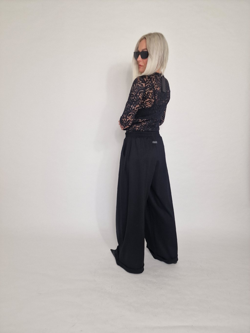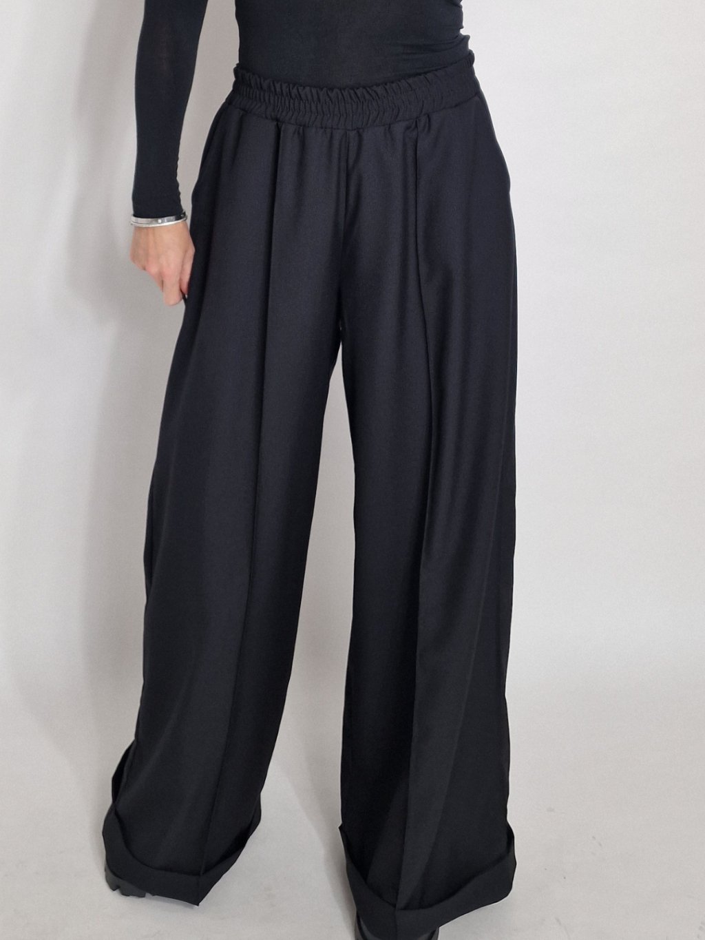 Dokonalé široké nohavice s nariasenou manžetou a elastickým pásom.
