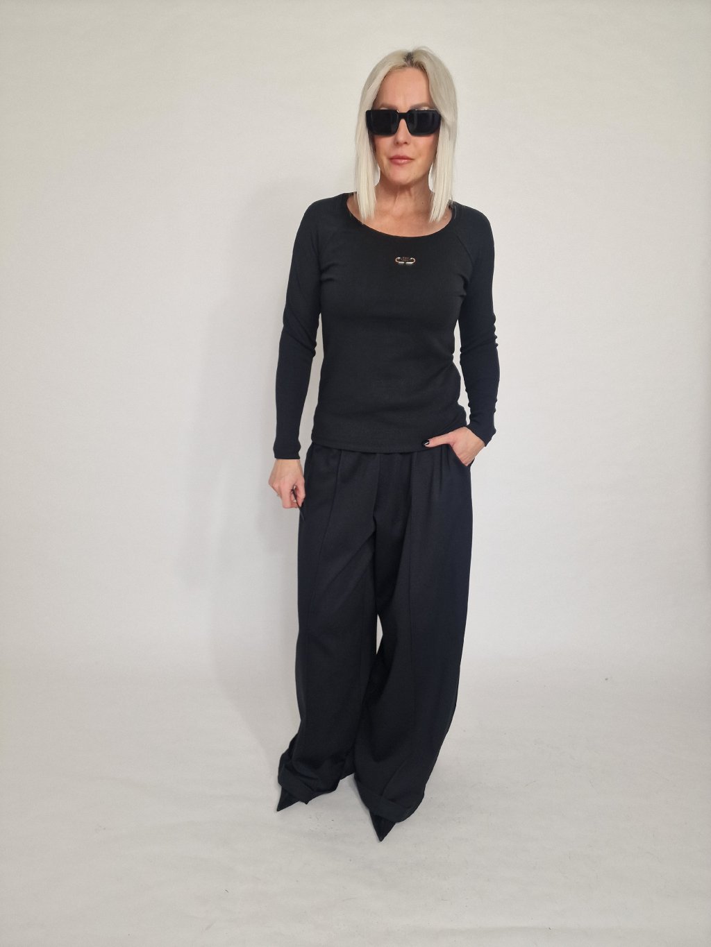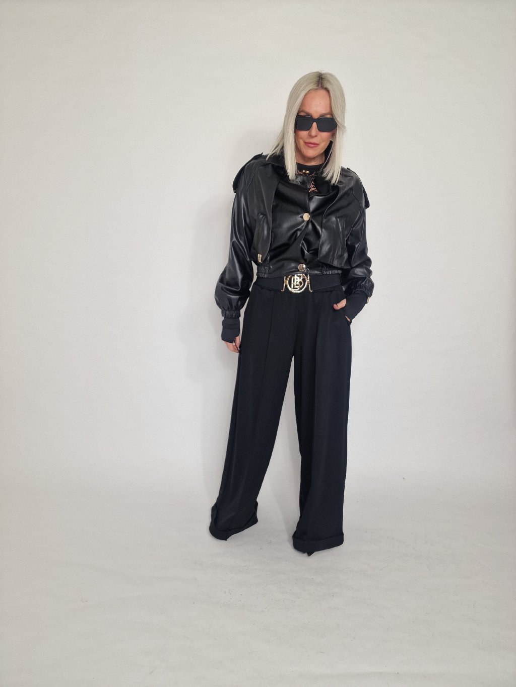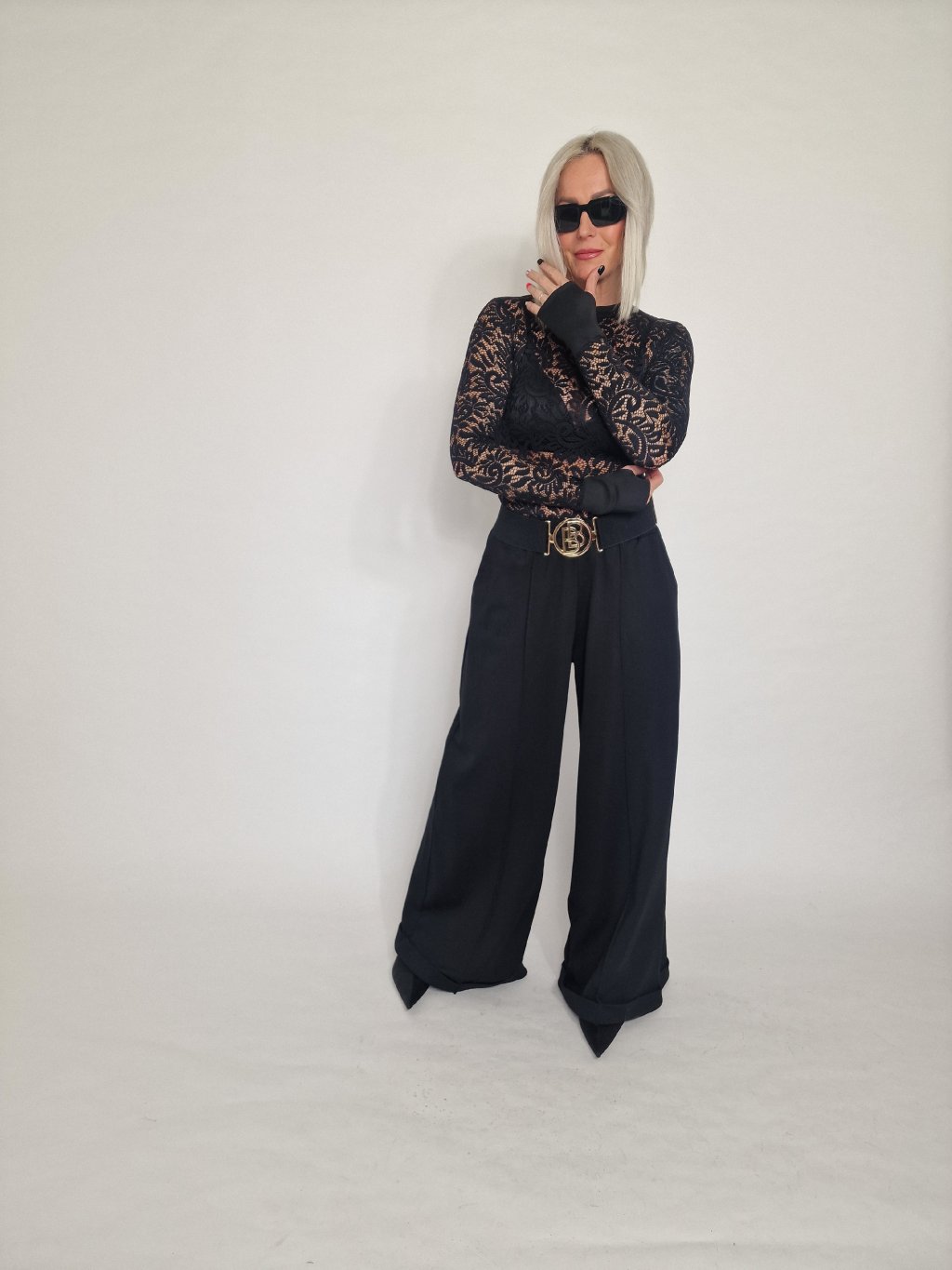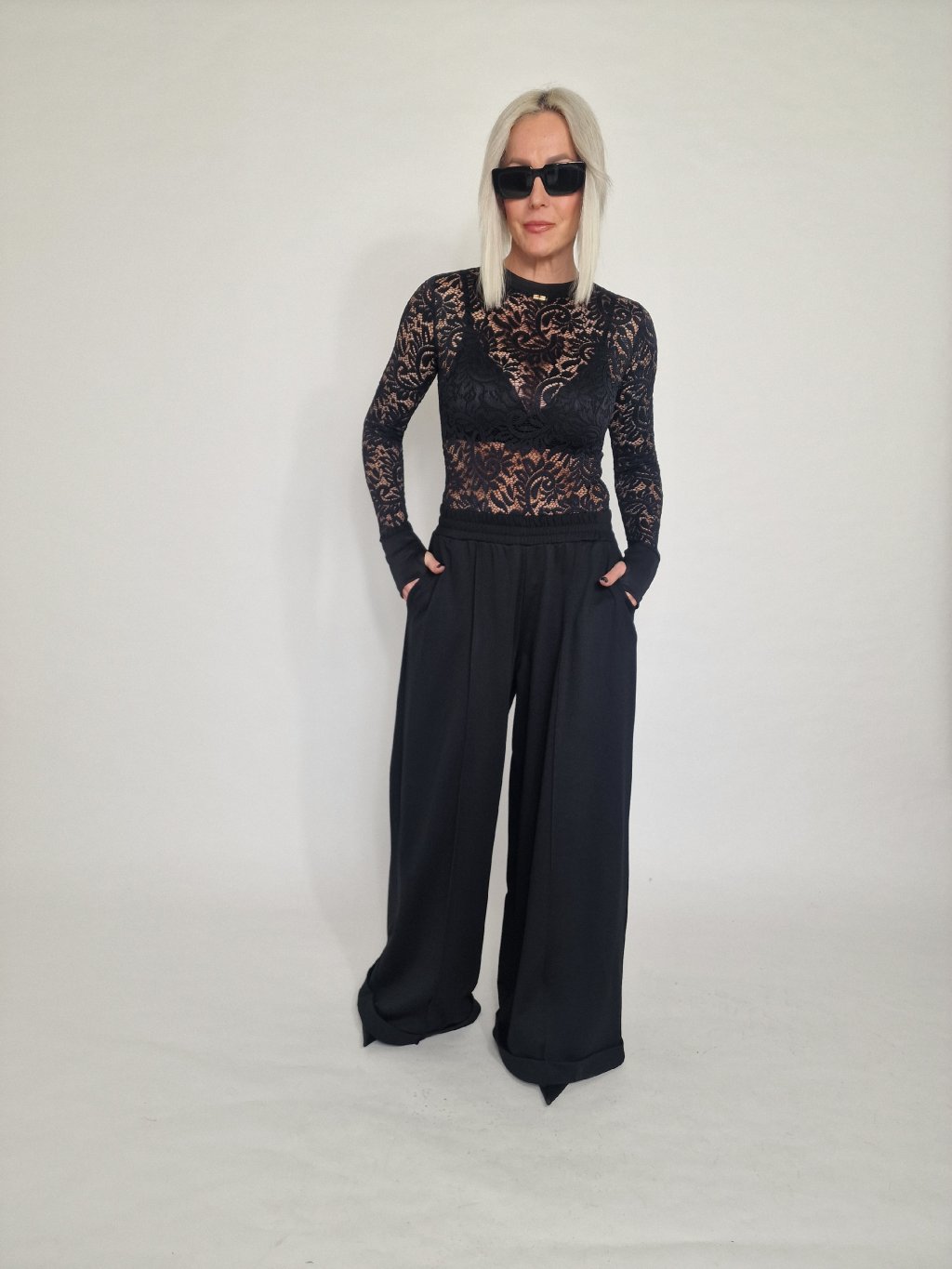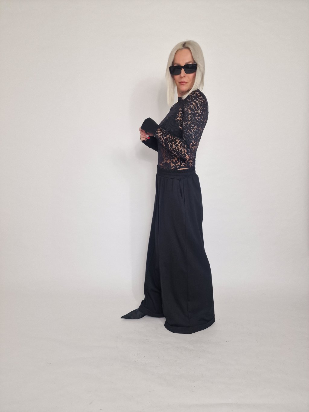 Dokonalé široké nohavice s nariasenou manžetou a elastickým pásom.