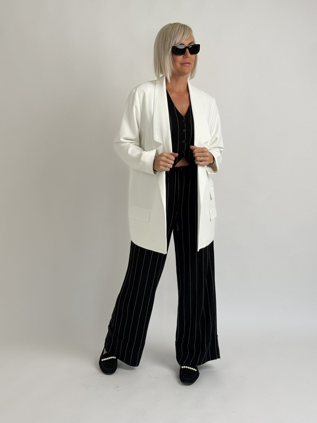 Perfektne padnúce široké nohavice v čiernobielom pruhu, zakončené manžetou a elastickým pásom. MIERA!!!!