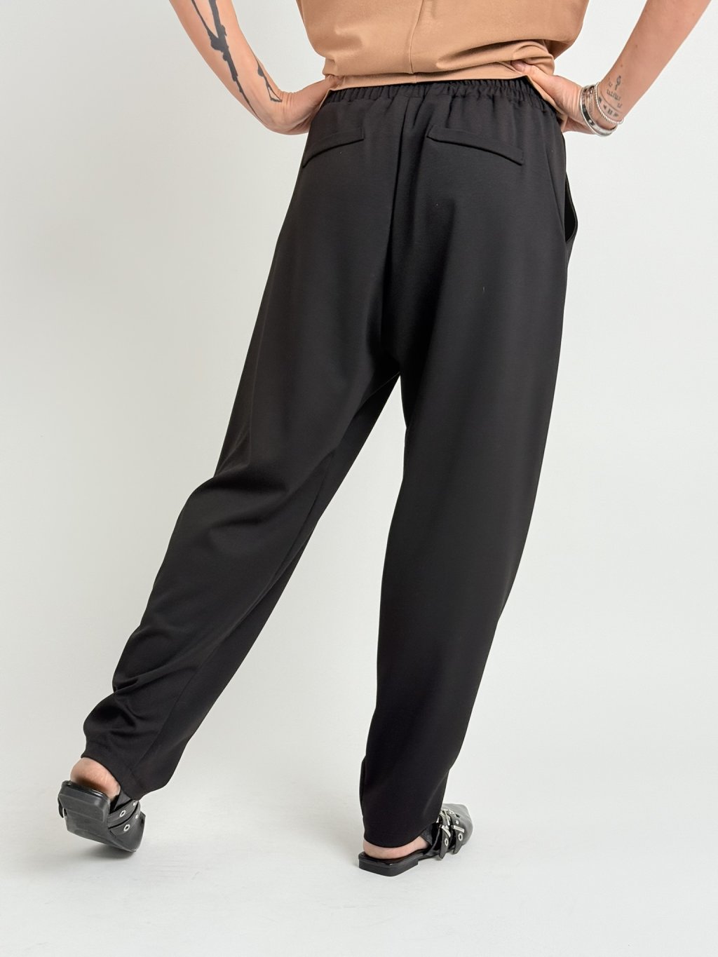 Luxusné nohavice s elastickým pásom, širšie nohavice v hornej časti, zužujúce sa smerom nadol. Super strih a materiál. HAND MADE!!!!