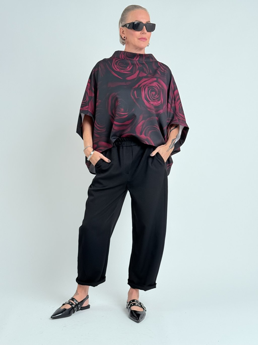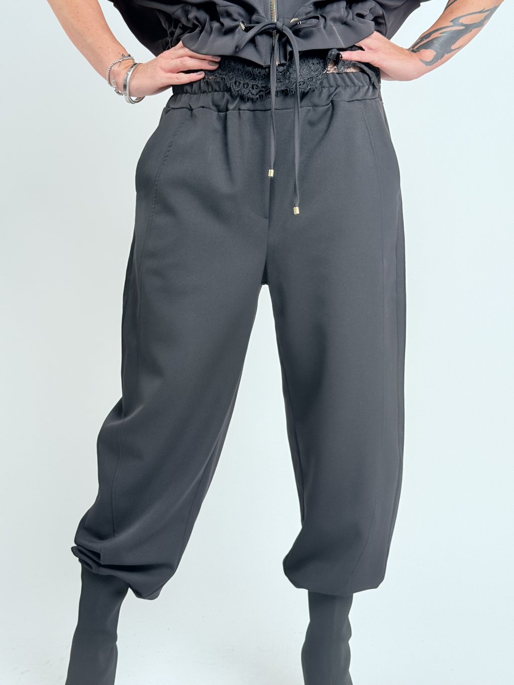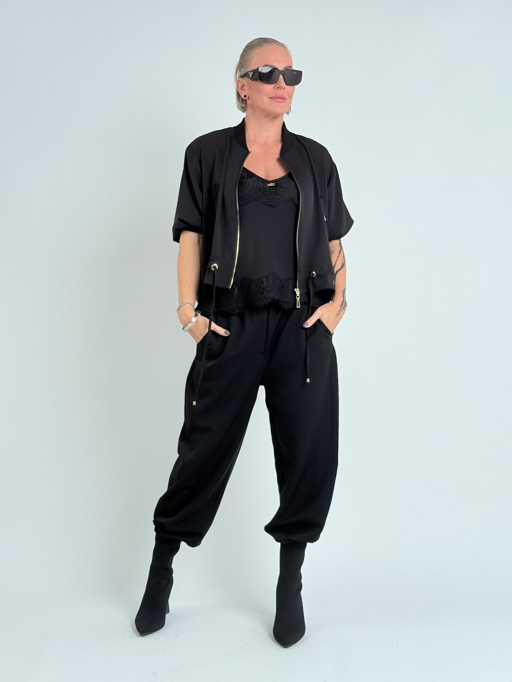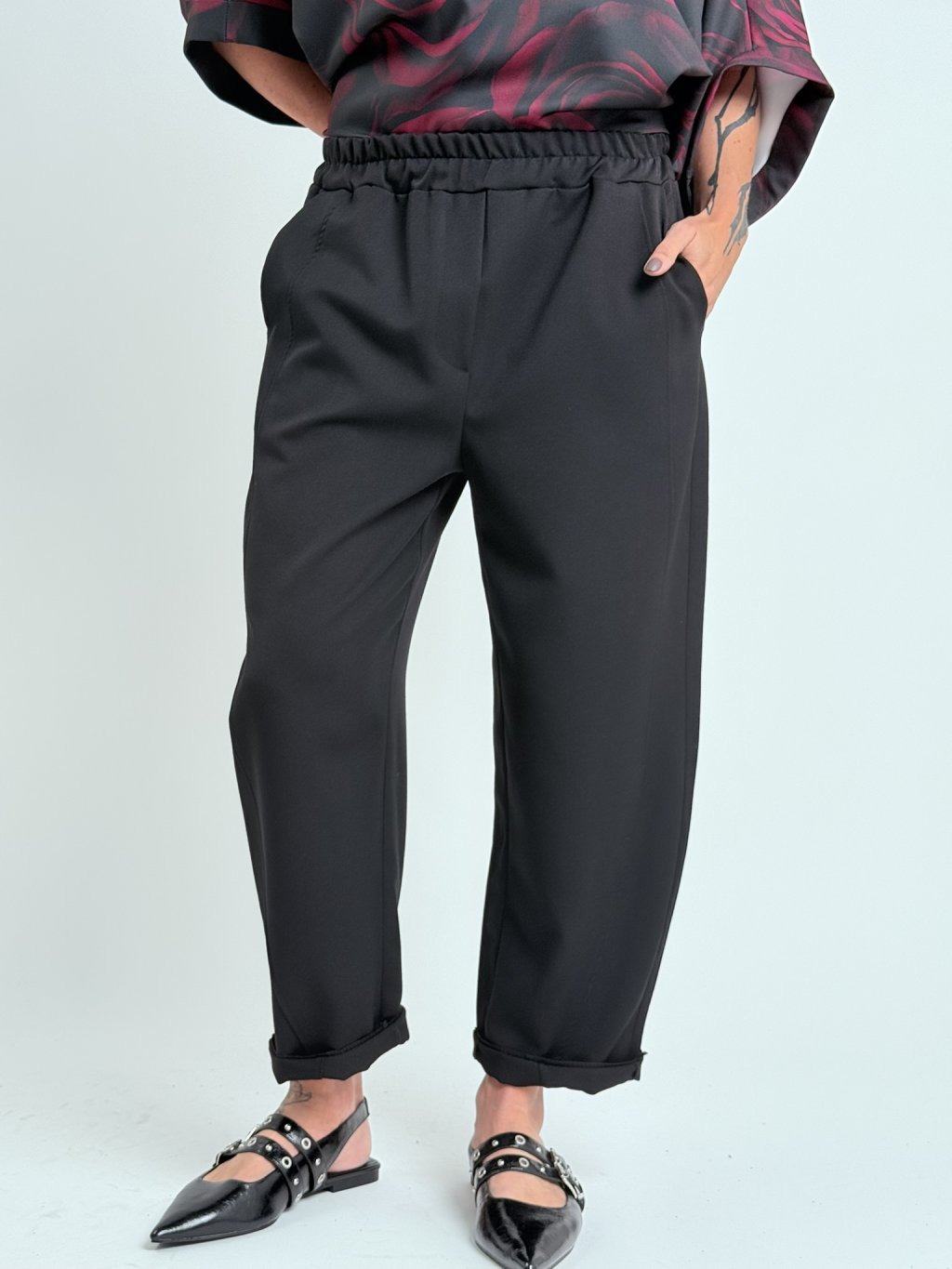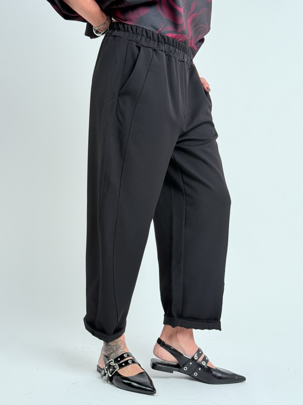 Super nohavice s elastickým pásom, širšie nohavice v hornej časti, zužujúce sa smerom nadol. Super strih, rovnaký ako najobľúbenejšie nohavice TOSCANA, len z iného materiálu