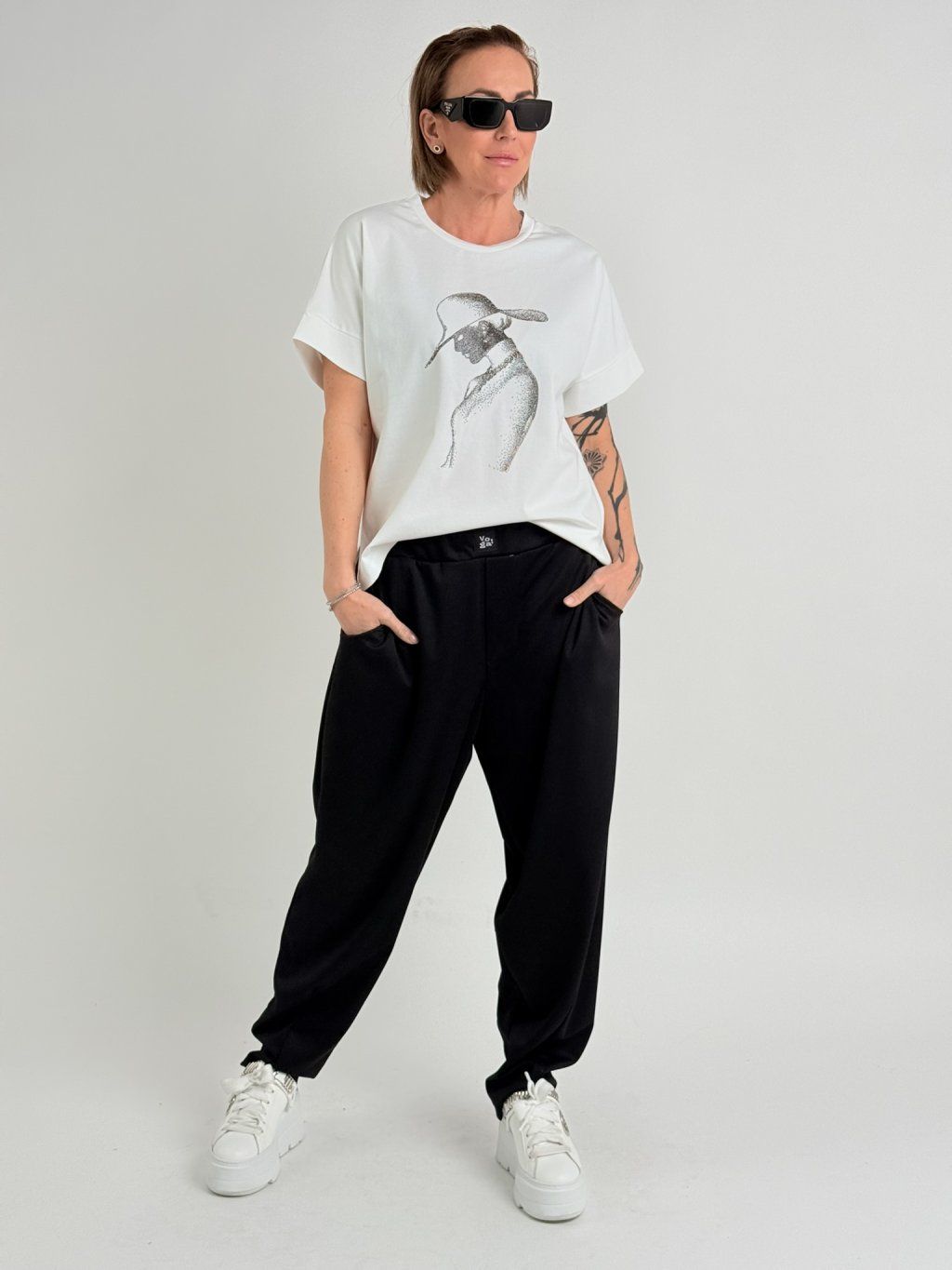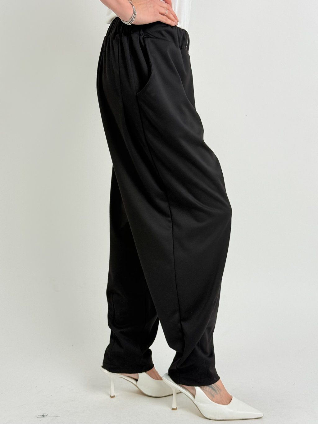 Luxusné nohavice s elastickým pásom, širšie nohavice v hornej časti, zužujúce sa smerom nadol. Super strih, mierne elastický materiál.HADE MADE VOGA