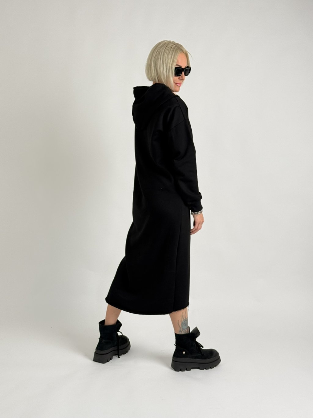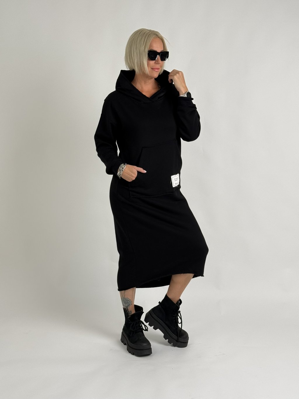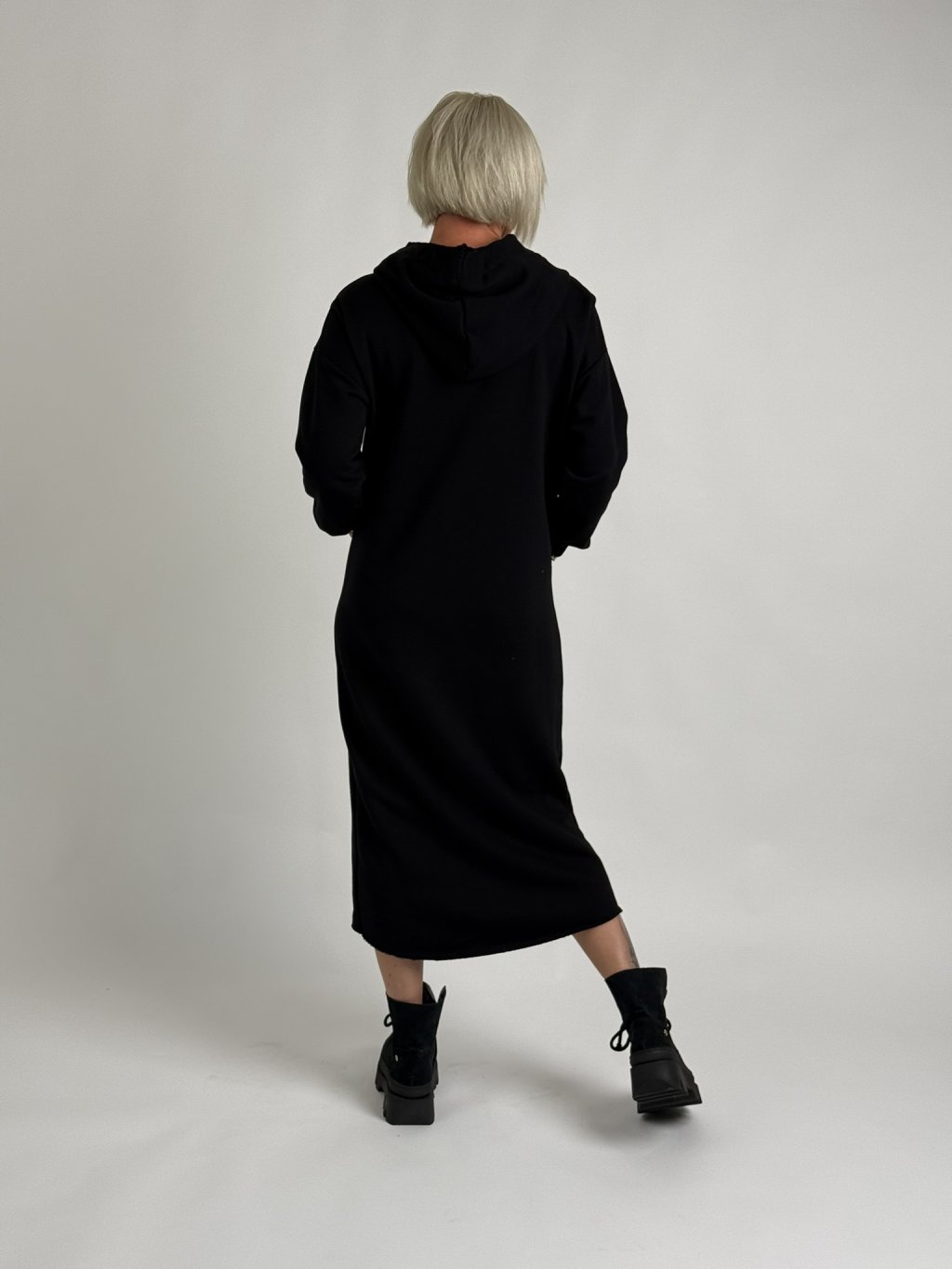 Skvelé mikinové šaty nadrozmernej veľkosti s kapucňou, klokaními rukávmi, dlhými rukávmi a zadným rozparkom pod kapucňou. Skvelý materiál, mierne elastický.MIERKA!!!!