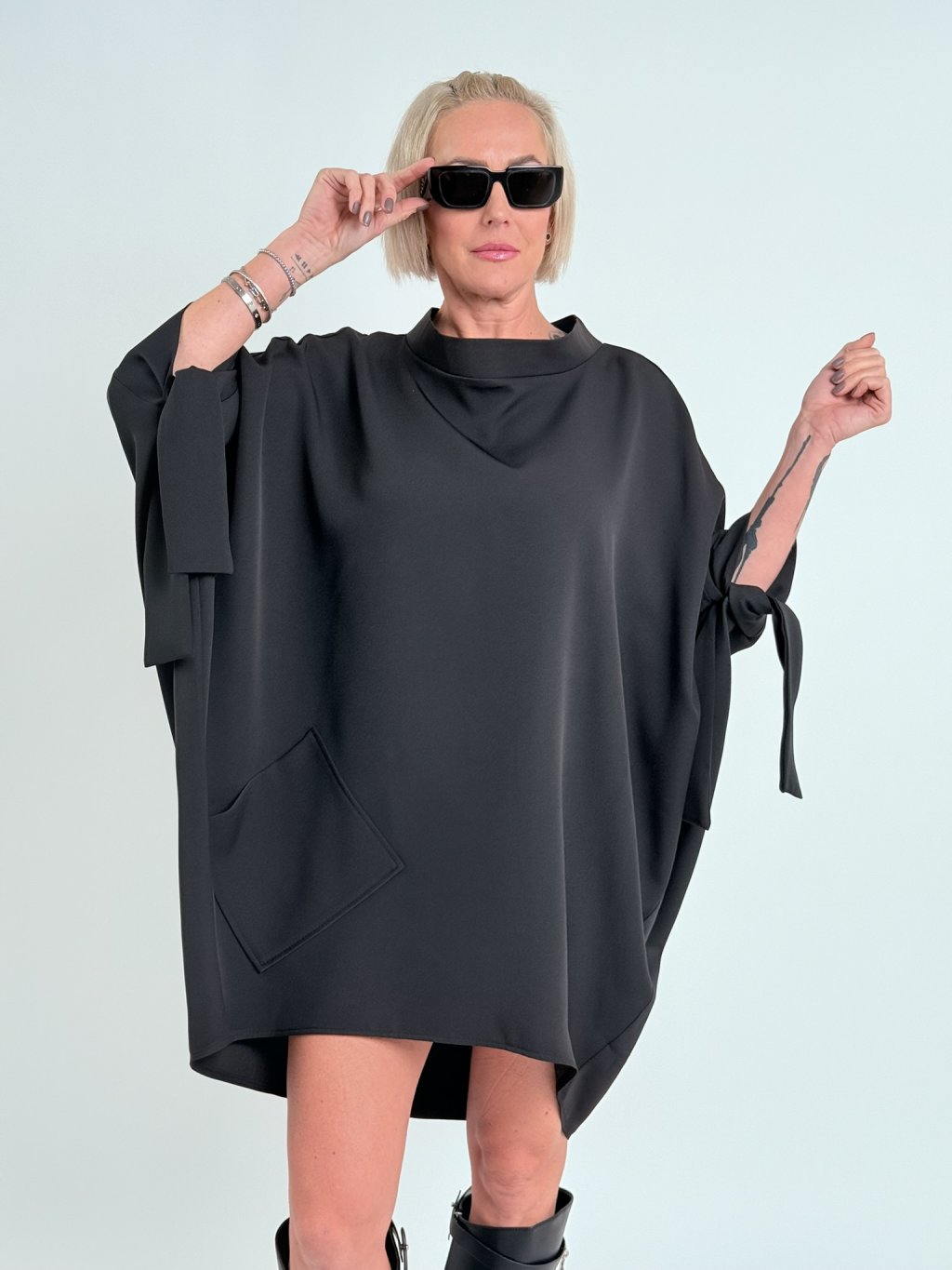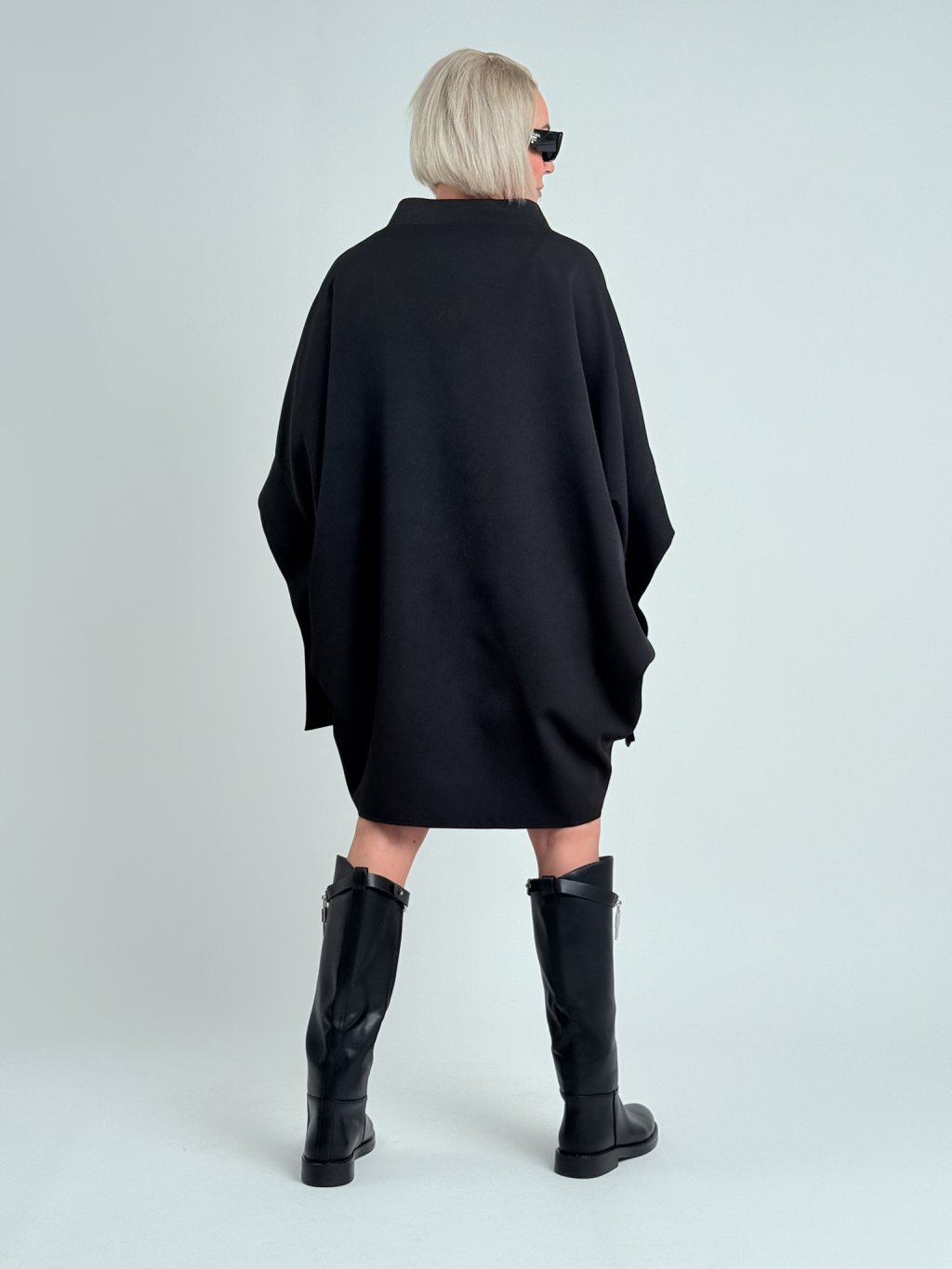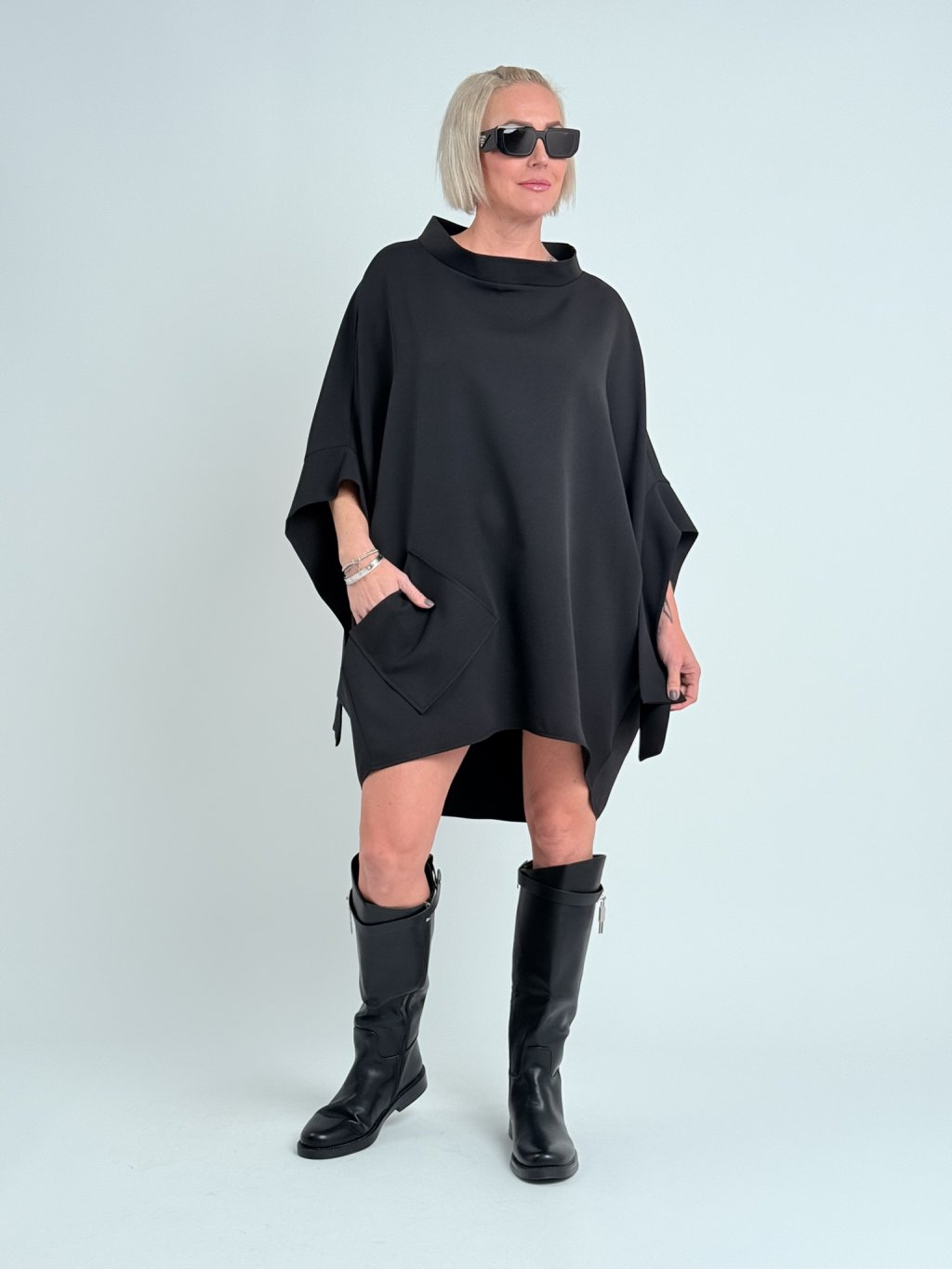 Luxusné tunikové šaty netopierieho strihu so širokým stojacím golierom. Vhodné na vrstvenie.