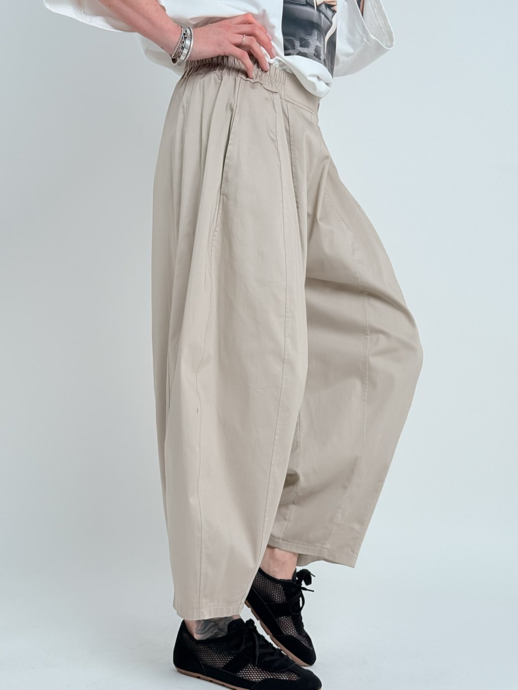 Super tenisky v kombinácii s priehľadnou látkou. Meranie stielky.