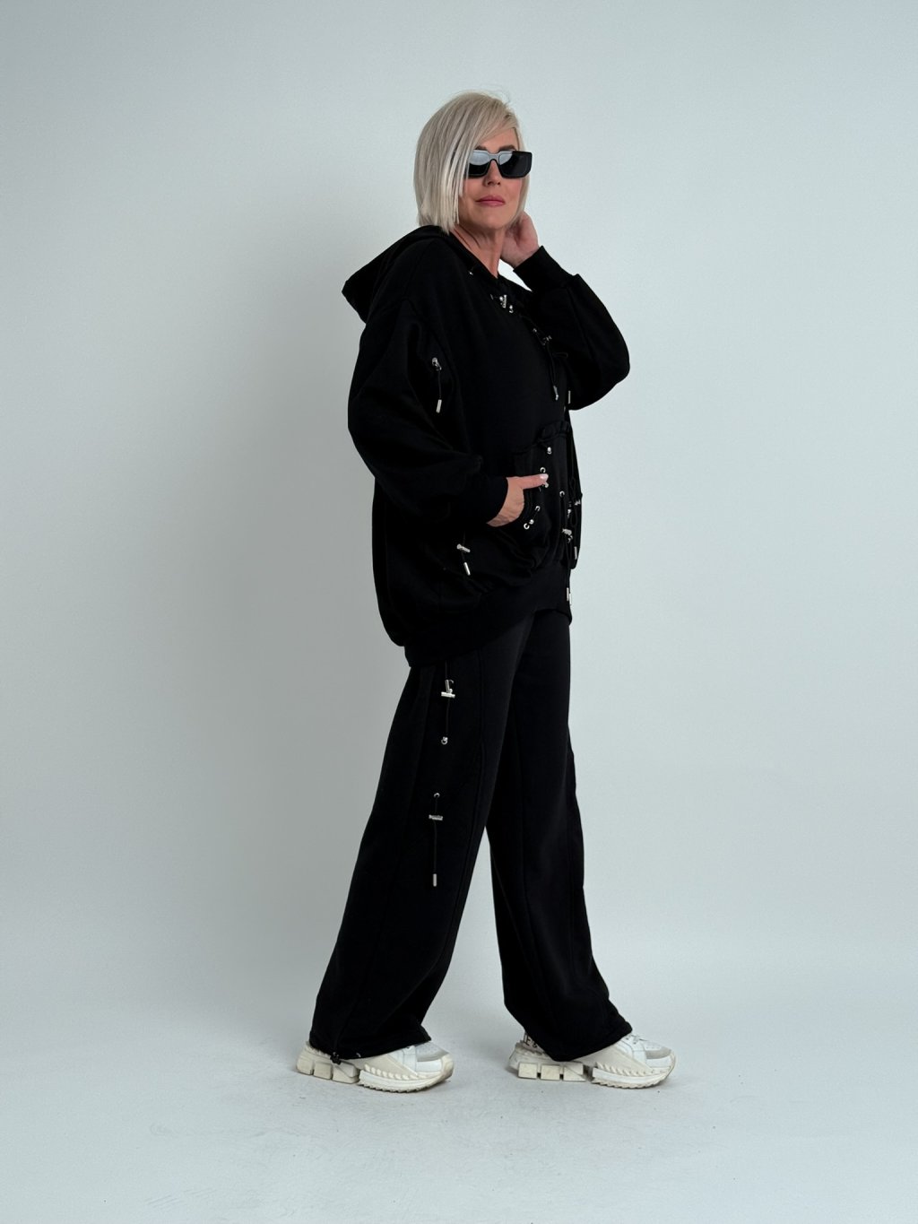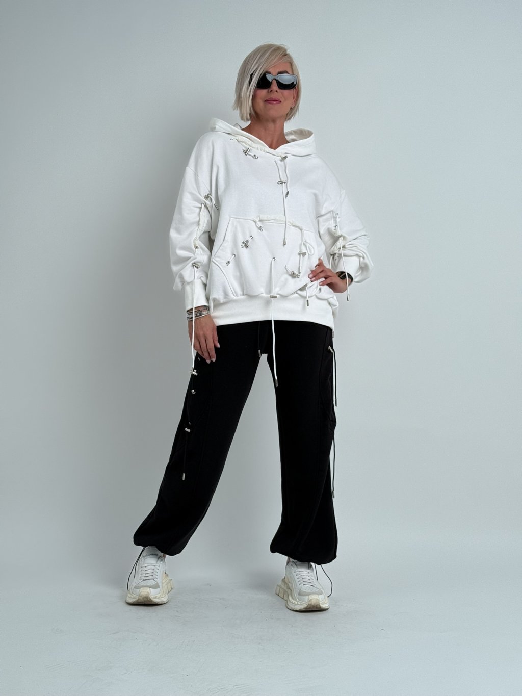 Chladné, širšie tepláky s elastickým pásom, šnúrkou pod pásom a na spodnej časti nohavíc. A rovnako ako mikiny, ktoré k týmto teplákom zladíte, aj nohavice zdobia šnúrky na stiahnutie.