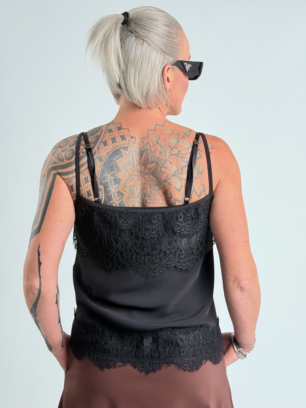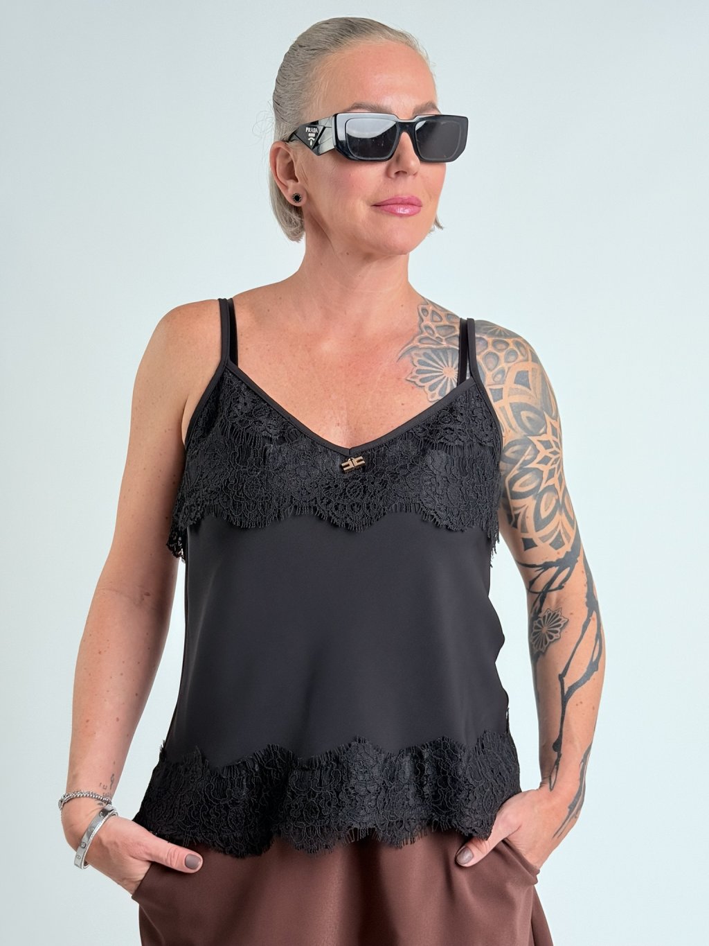 Luxusné saténové tielko v kombinácii s čipkou, skvelé k sukni RONDA.