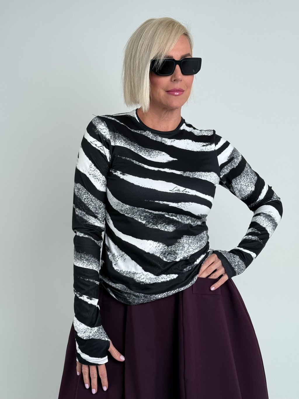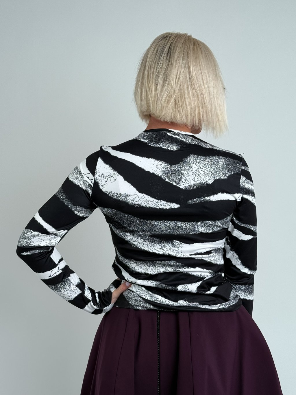 Krásne dvojfarebné tričko so vzorom, dlhými rukávmi a otvorom na palec