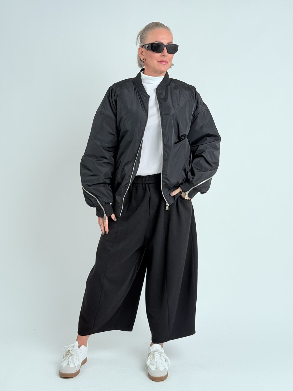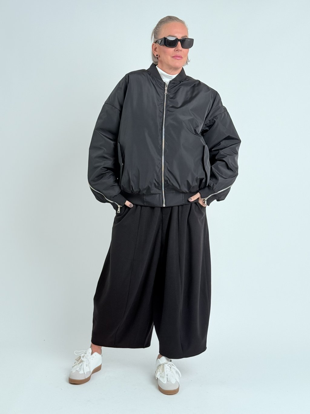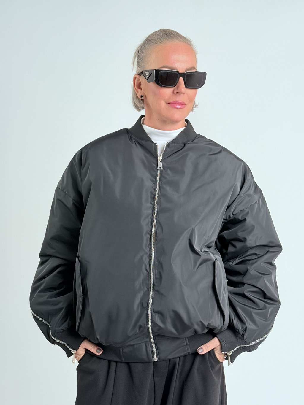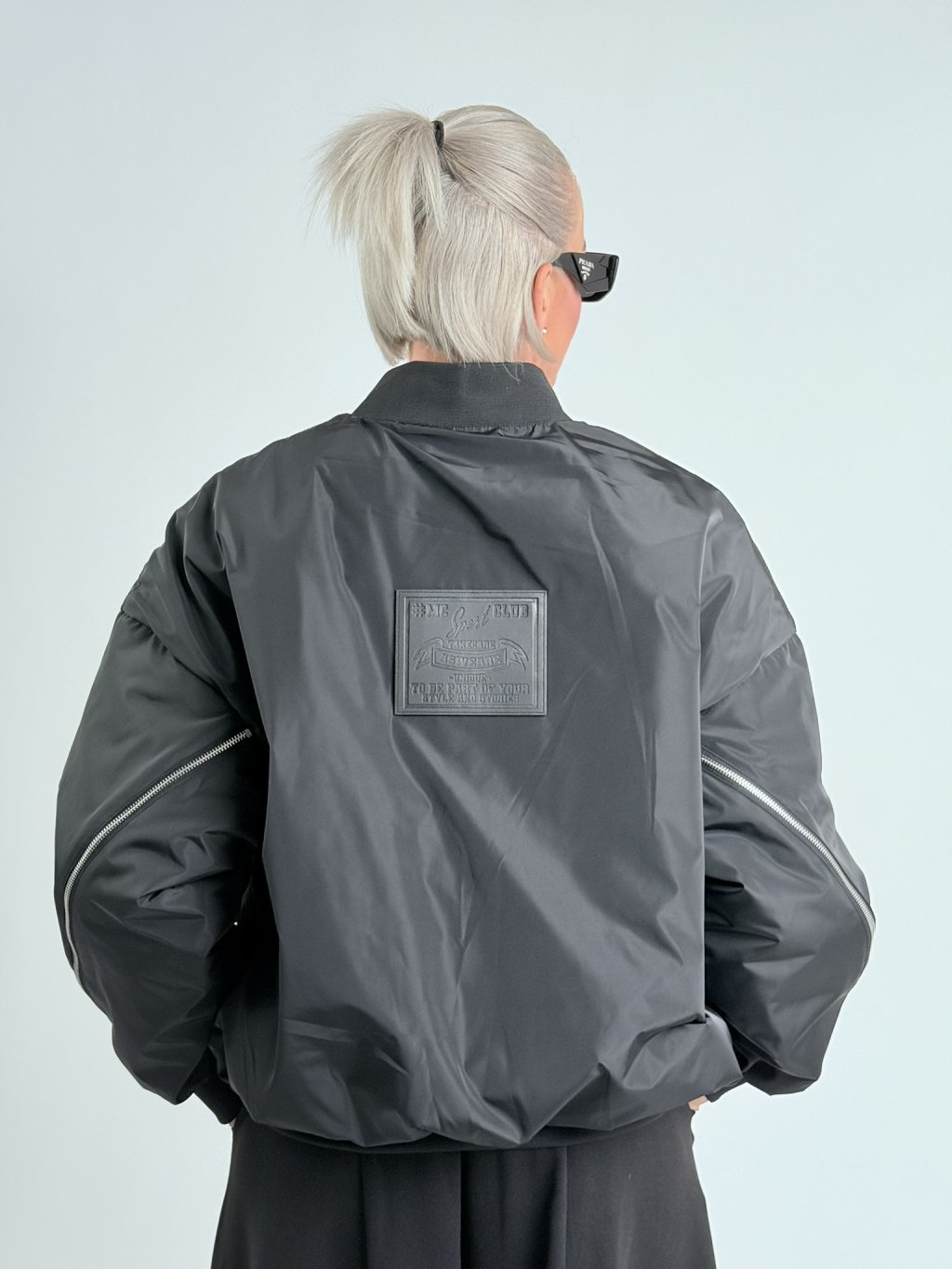 Skvelý zimný bomber so zapínaním na zips, ktorý zdobí aj rukávy, spodný okraj v záplate, ako aj pri krku a na rukávoch.