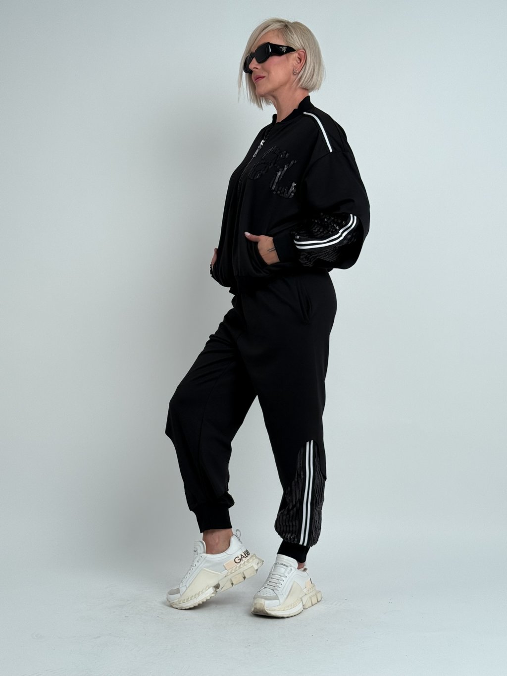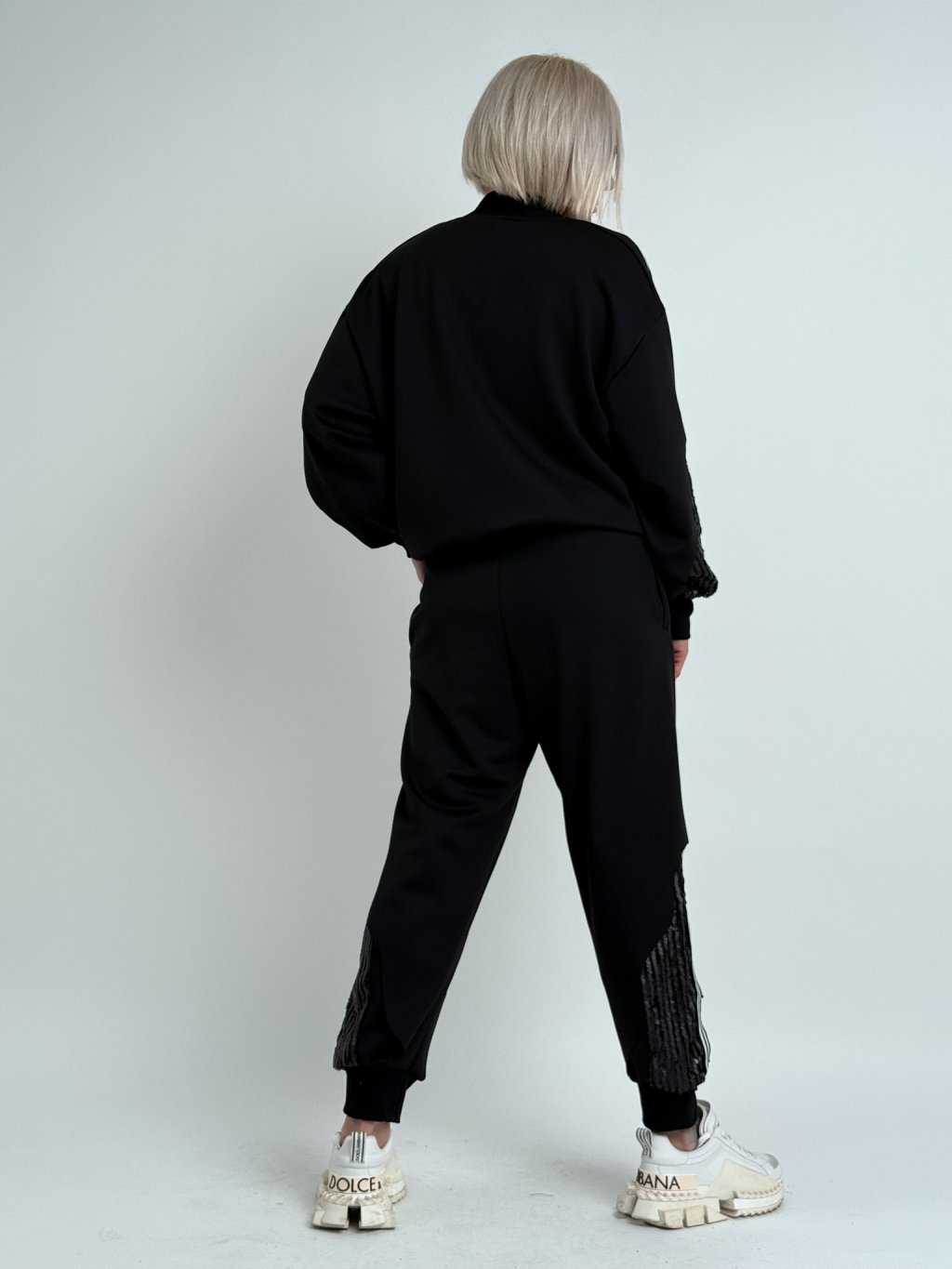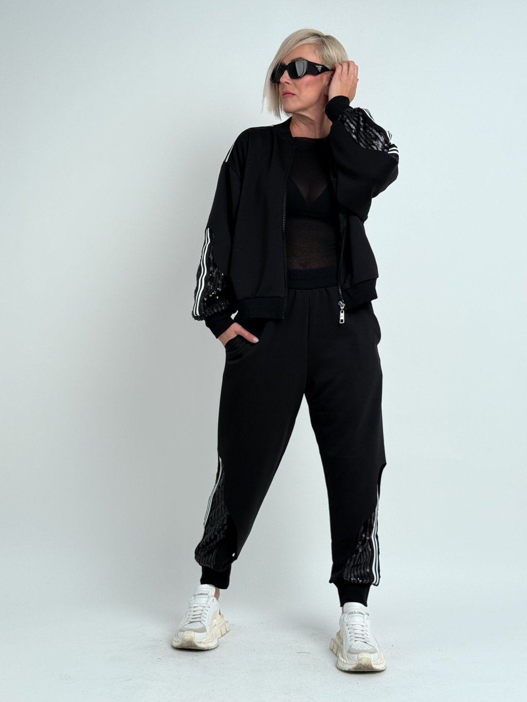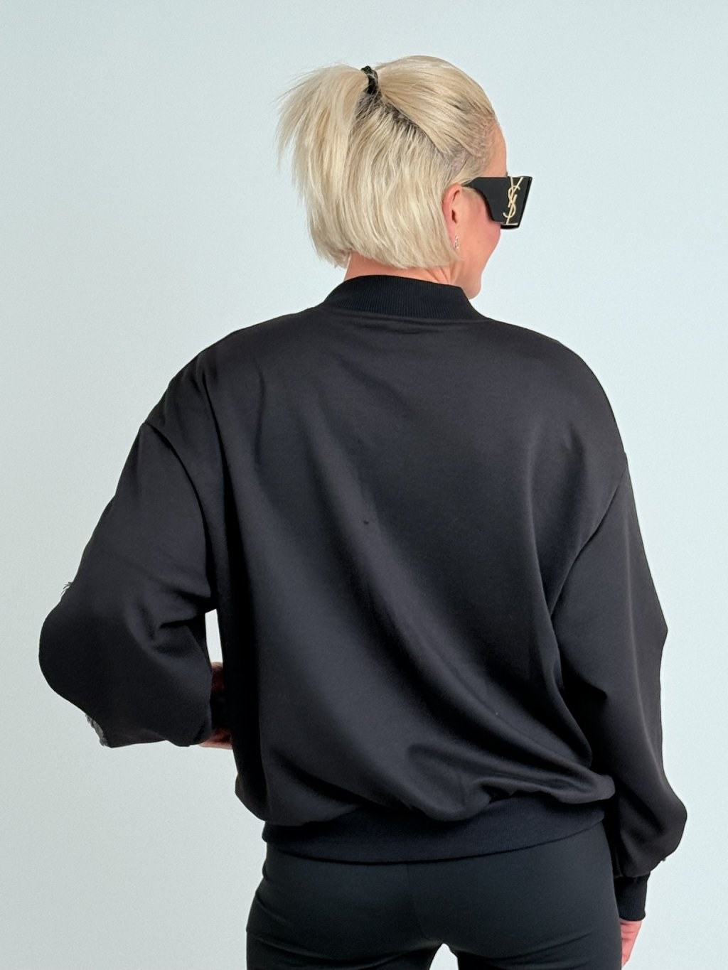 Krásny nadrozmerný bomber z dvojitej tkaniny v kombinácii s flitrami, s dlhými rukávmi a nášivkami na krku, rukávoch a spodnom okraji.MIERKA, BOMBERY SÚ VEĽKÉ!!!!
