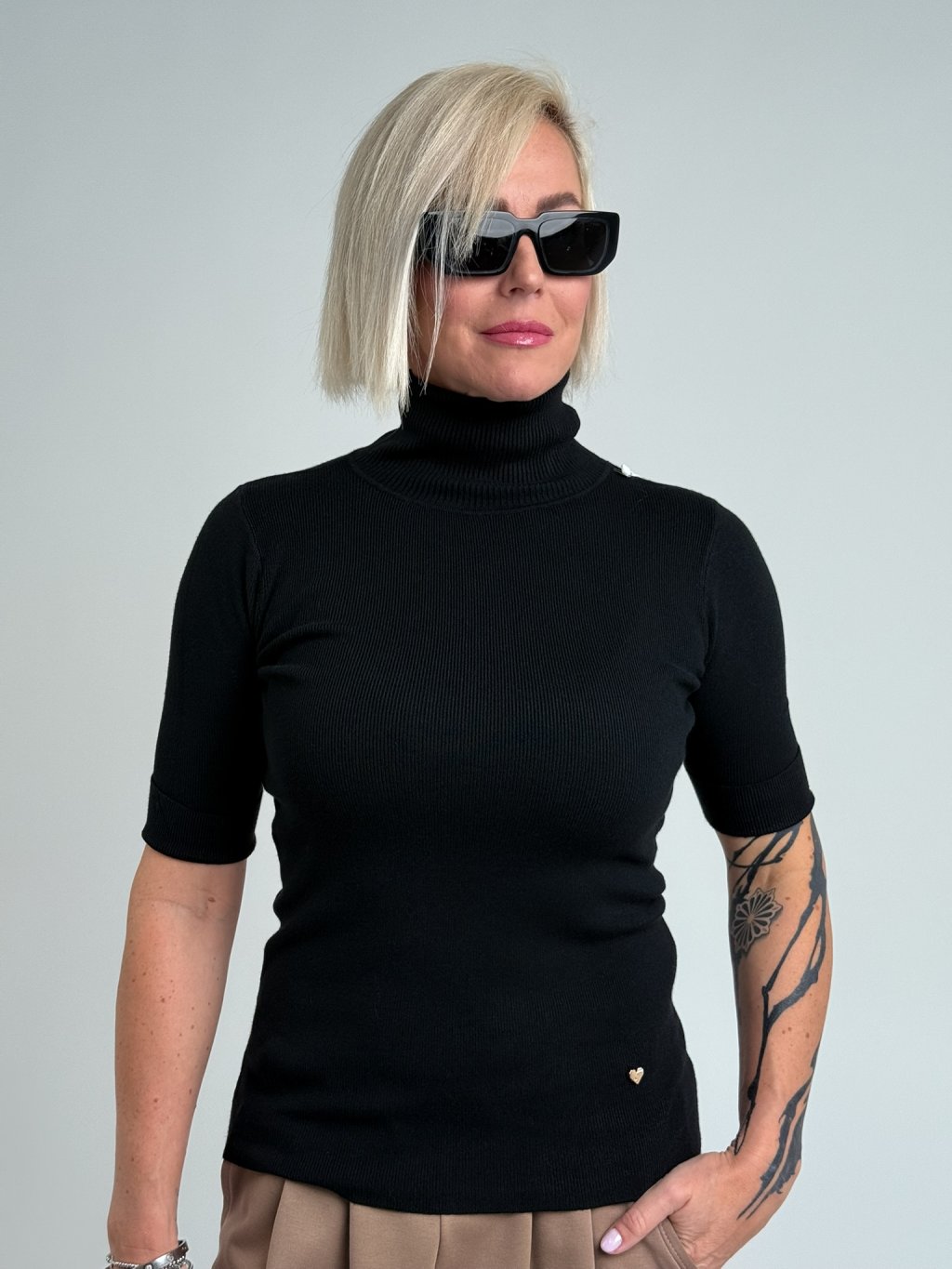 Krásny, elastický, tenší svetrový rolák s vyhrnutými rukávmi po lakeť. Mäkký a nekrčivý.