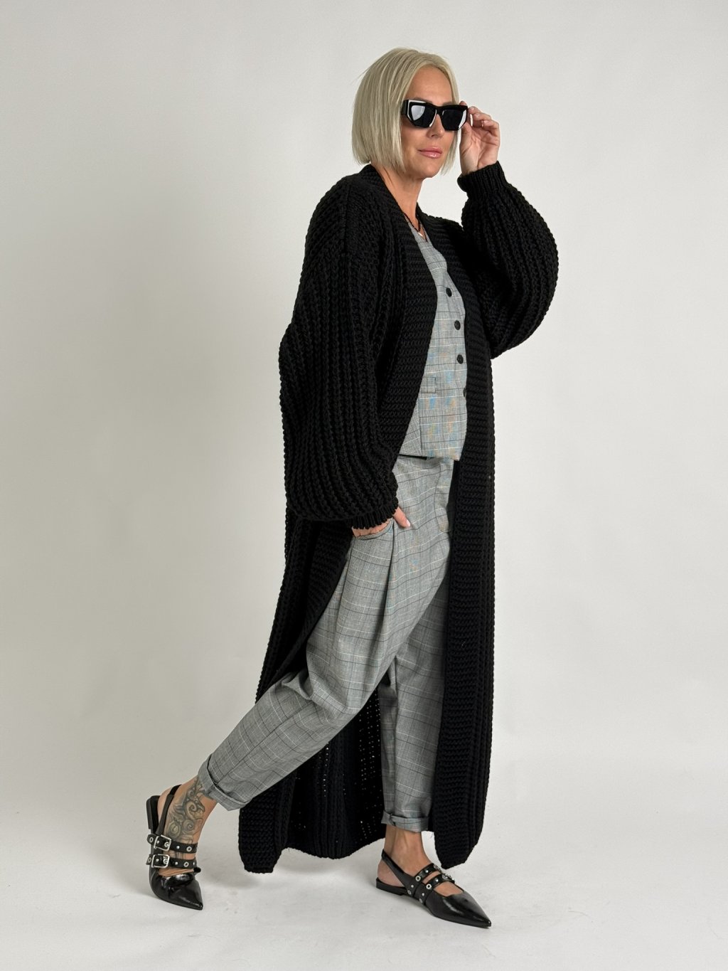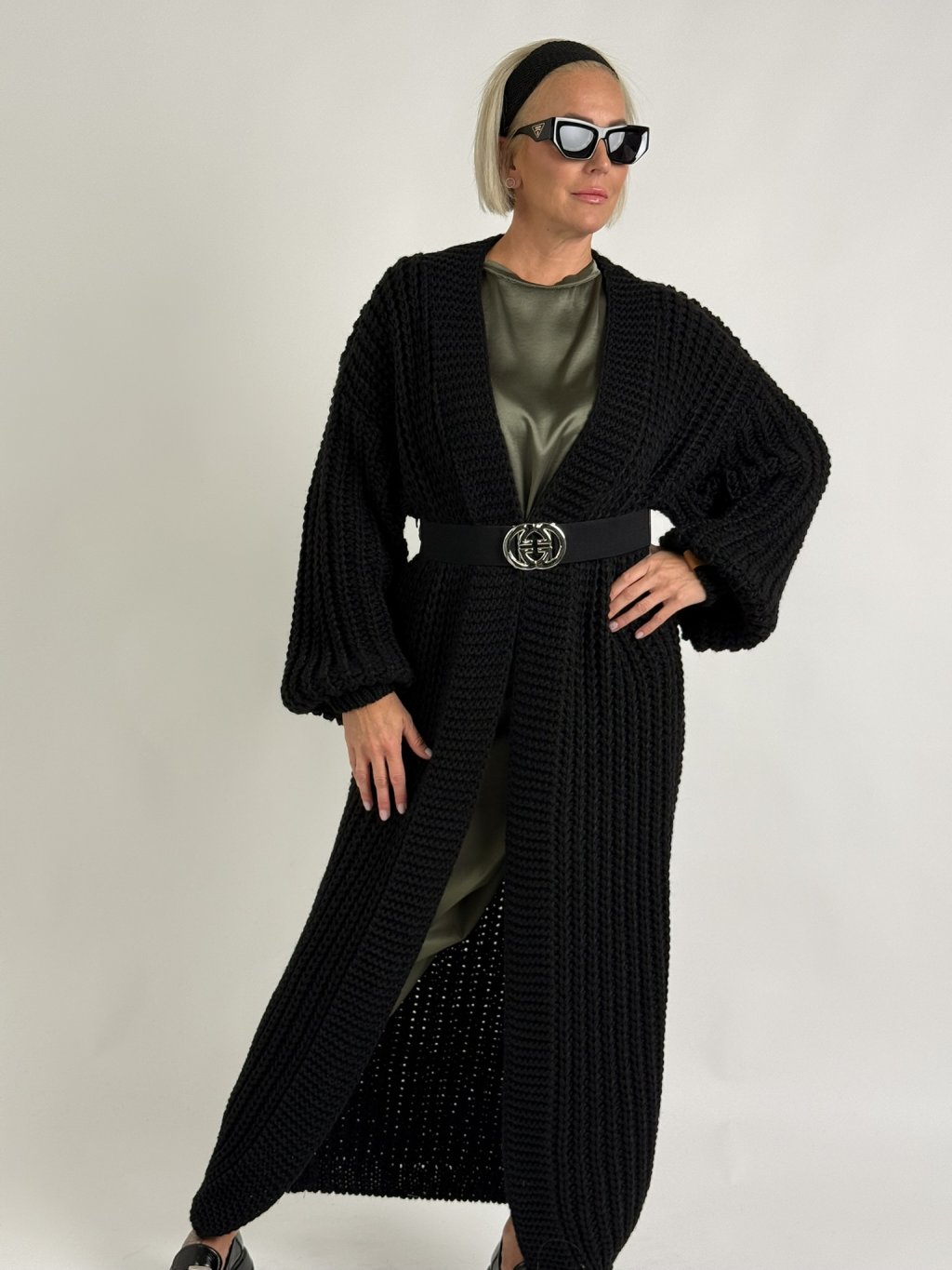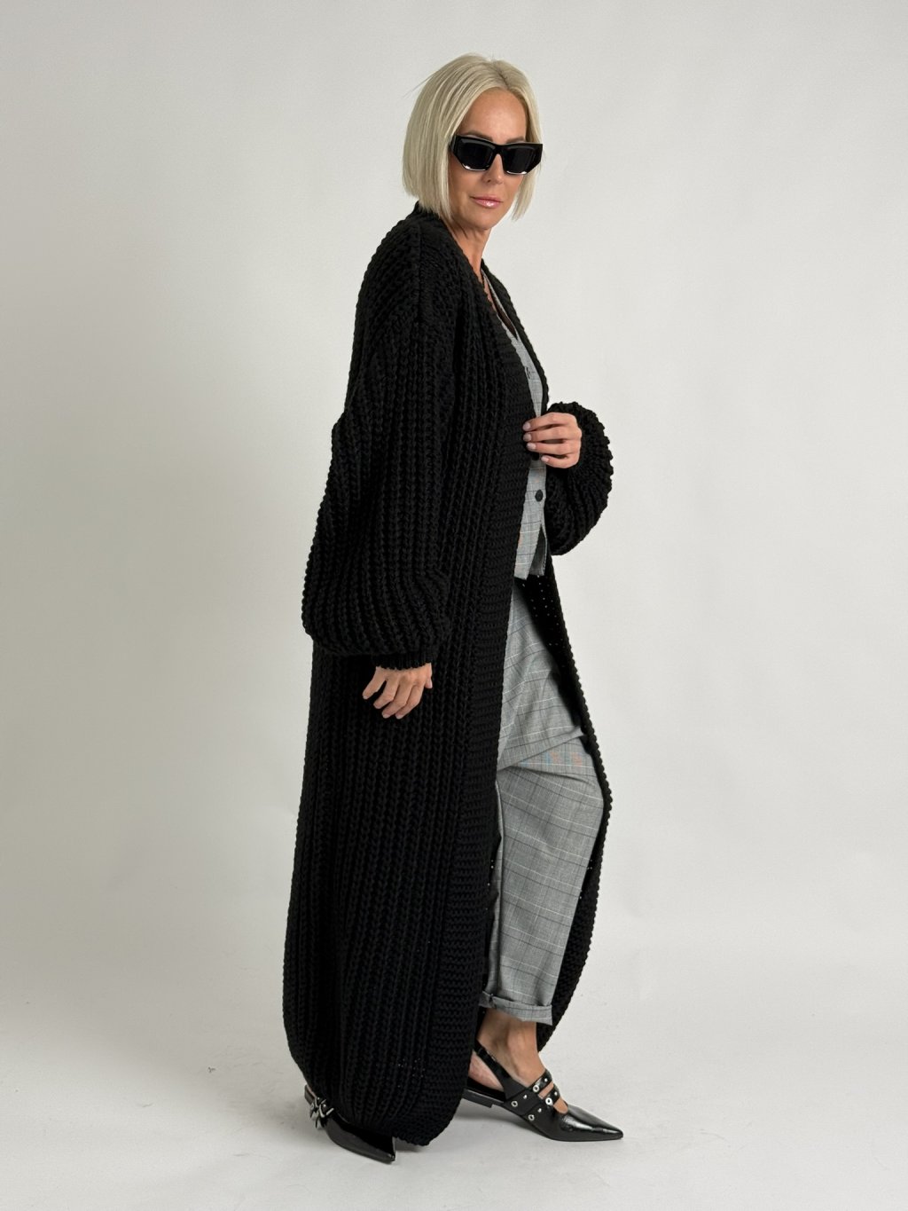 Nádherný, extra dlhý sveter, hrubo pletený kardigán bez gombíka.