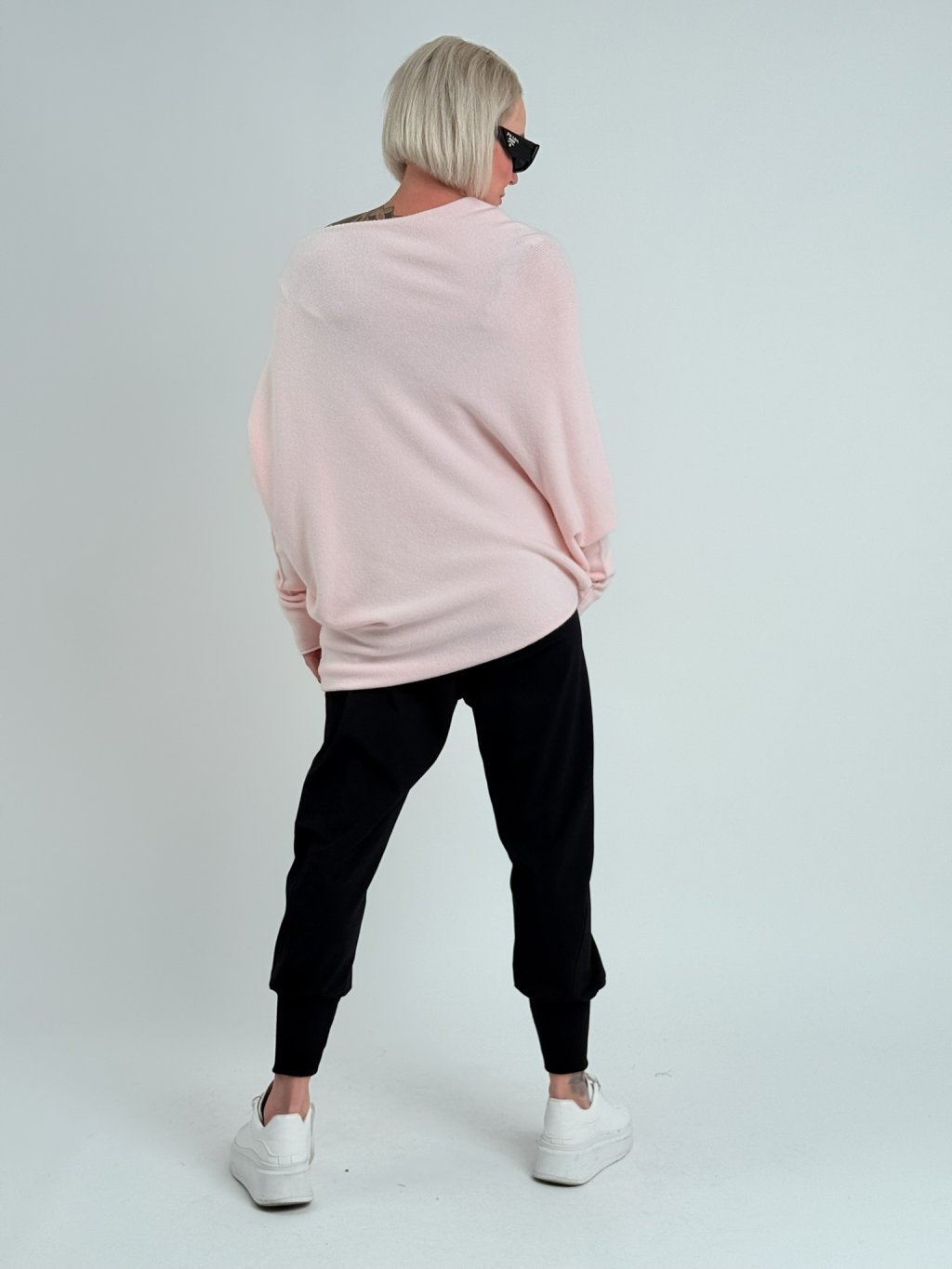 Krásny, elastický, asymetrický sveter s lodičkovým výstrihom. Mäkký a nekousavý.