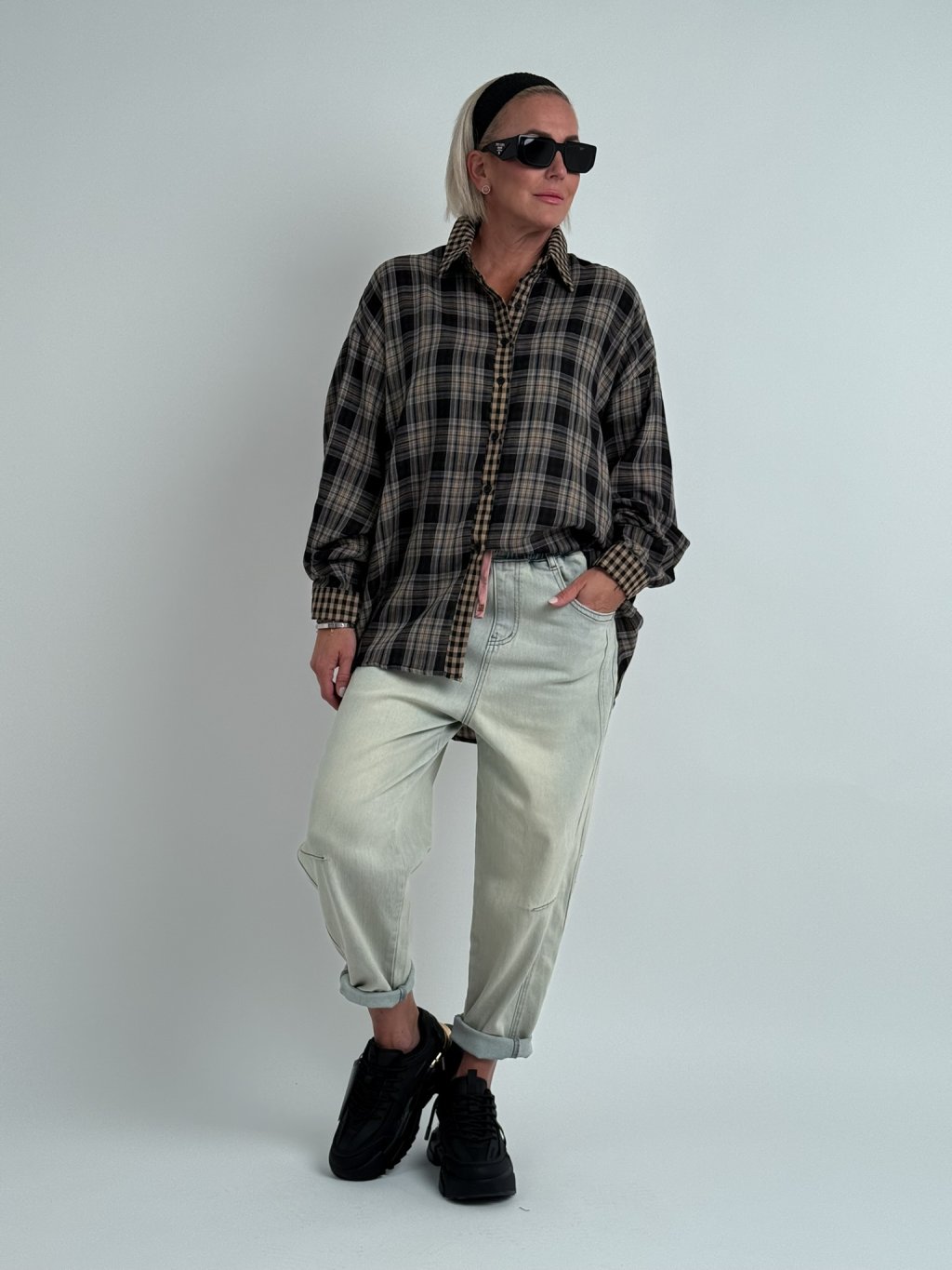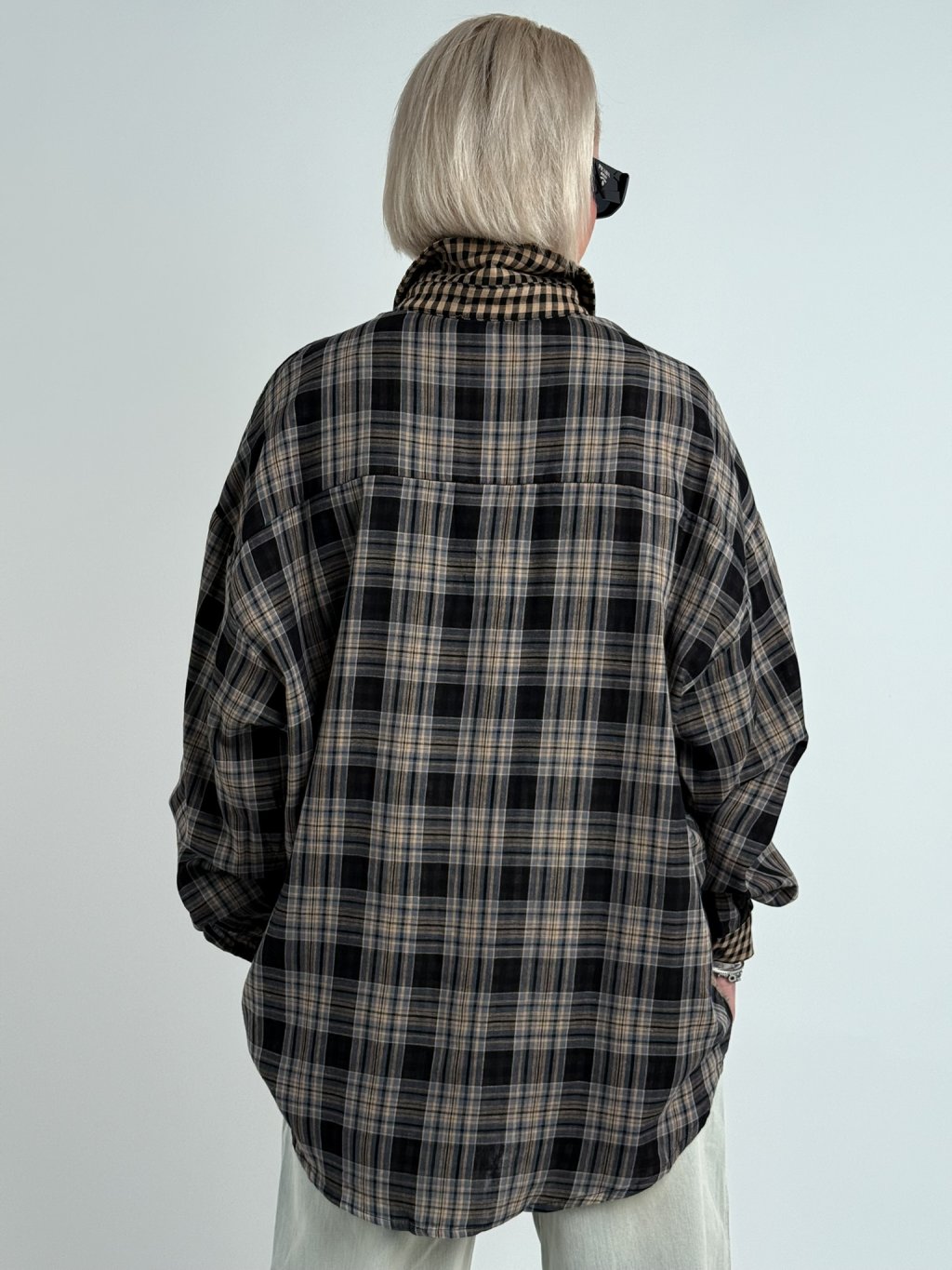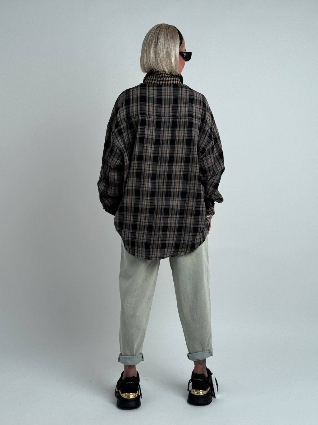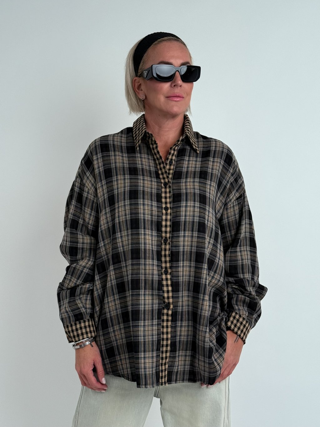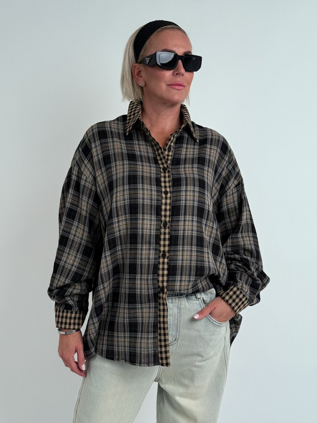 Ľahká košeľa nadrozmernej veľkosti v kombinácii menších károvaných vzorov na vnútornej strane a väčších károvaných vzorov na vonkajšej strane. Károvaná košeľa MUST HAVE túto sezónu.