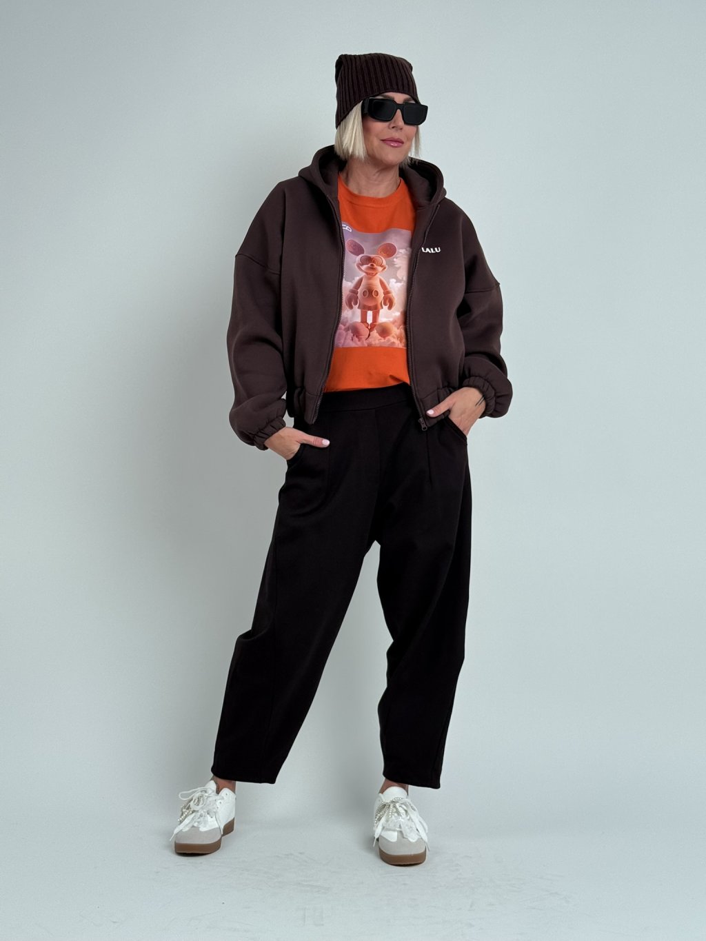 Super mikina s kapucňou, zapínaním na zips, bočnými vreckami a potlačou na zadnej strane