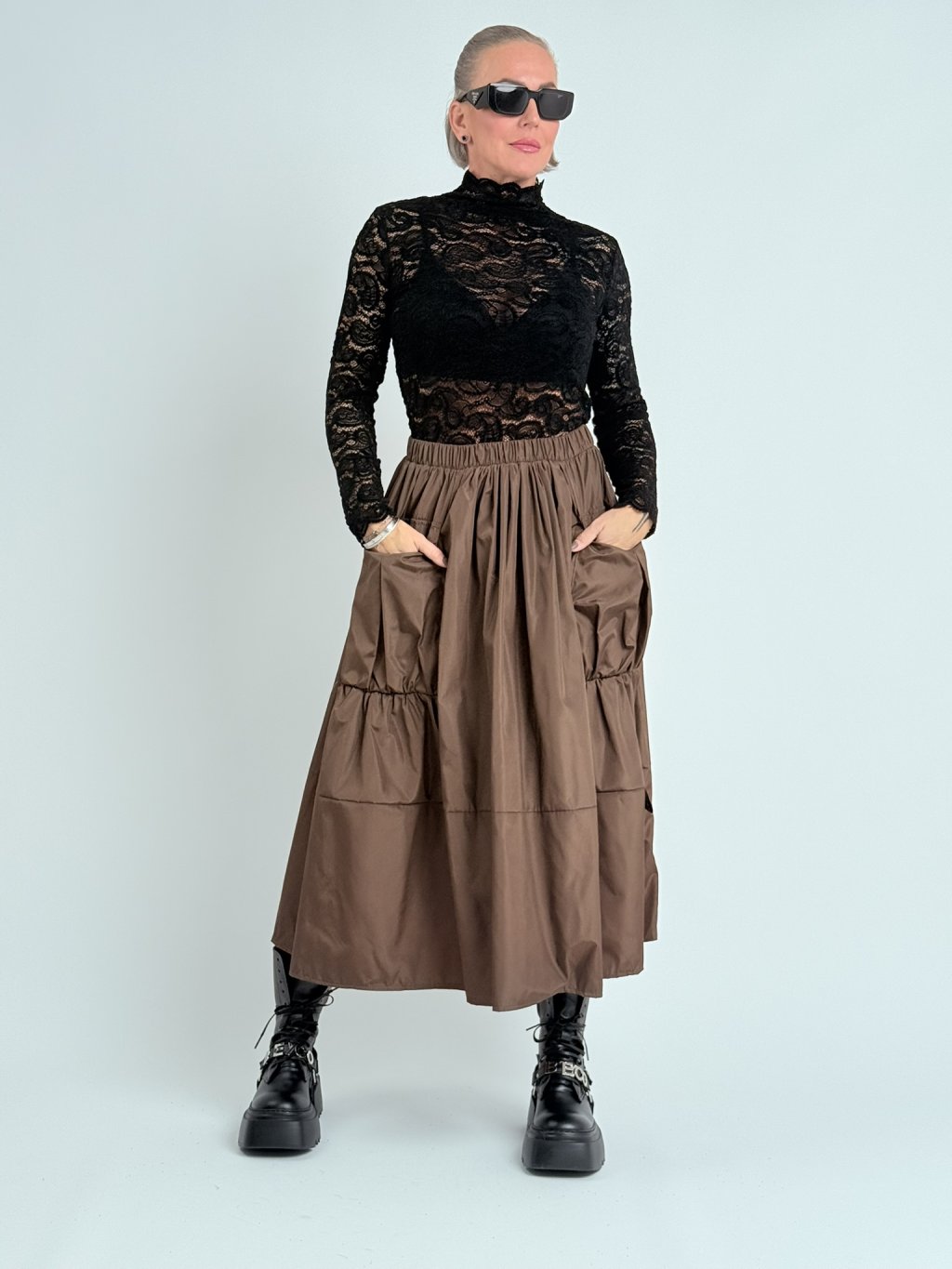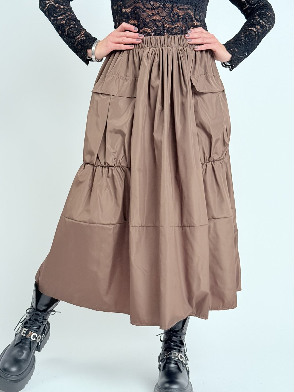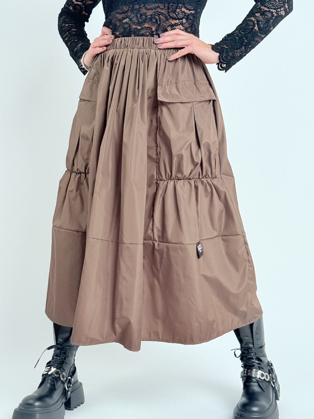 Úžasná, pohodlná, komfortná, zaujímavo riešená sukňa s veľkými všitými vreckami, elastický pás.