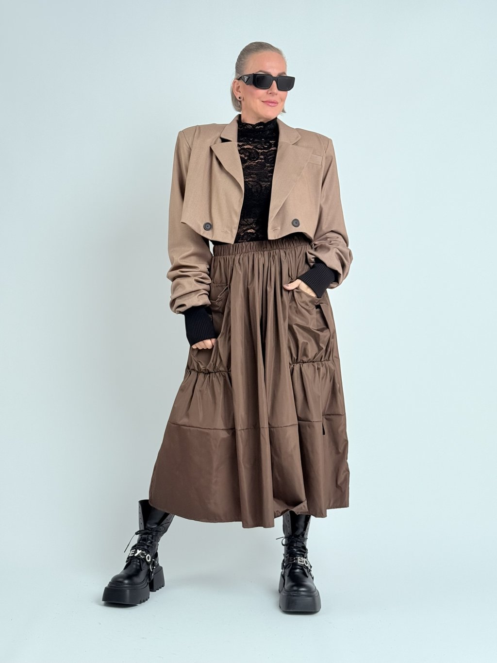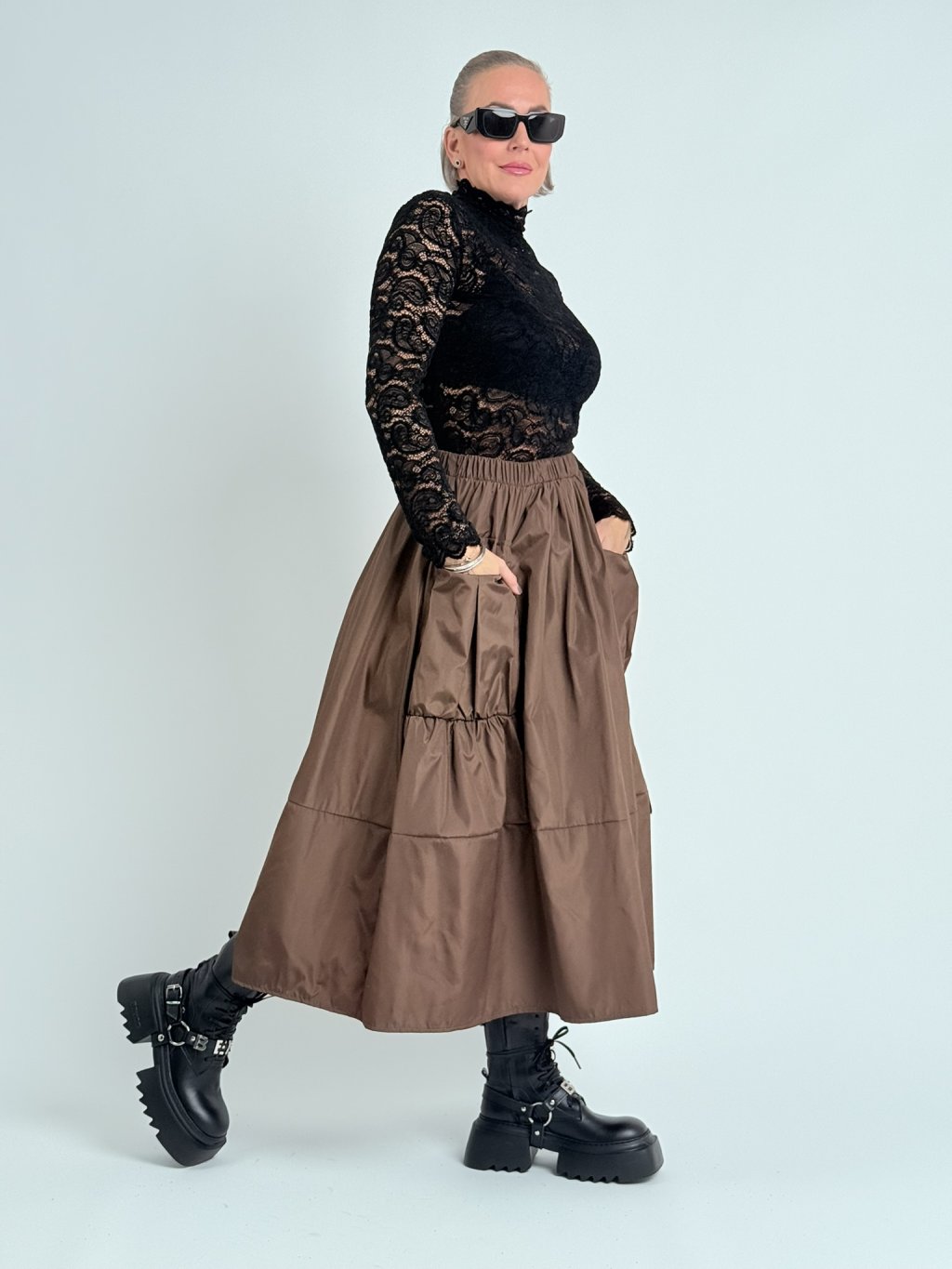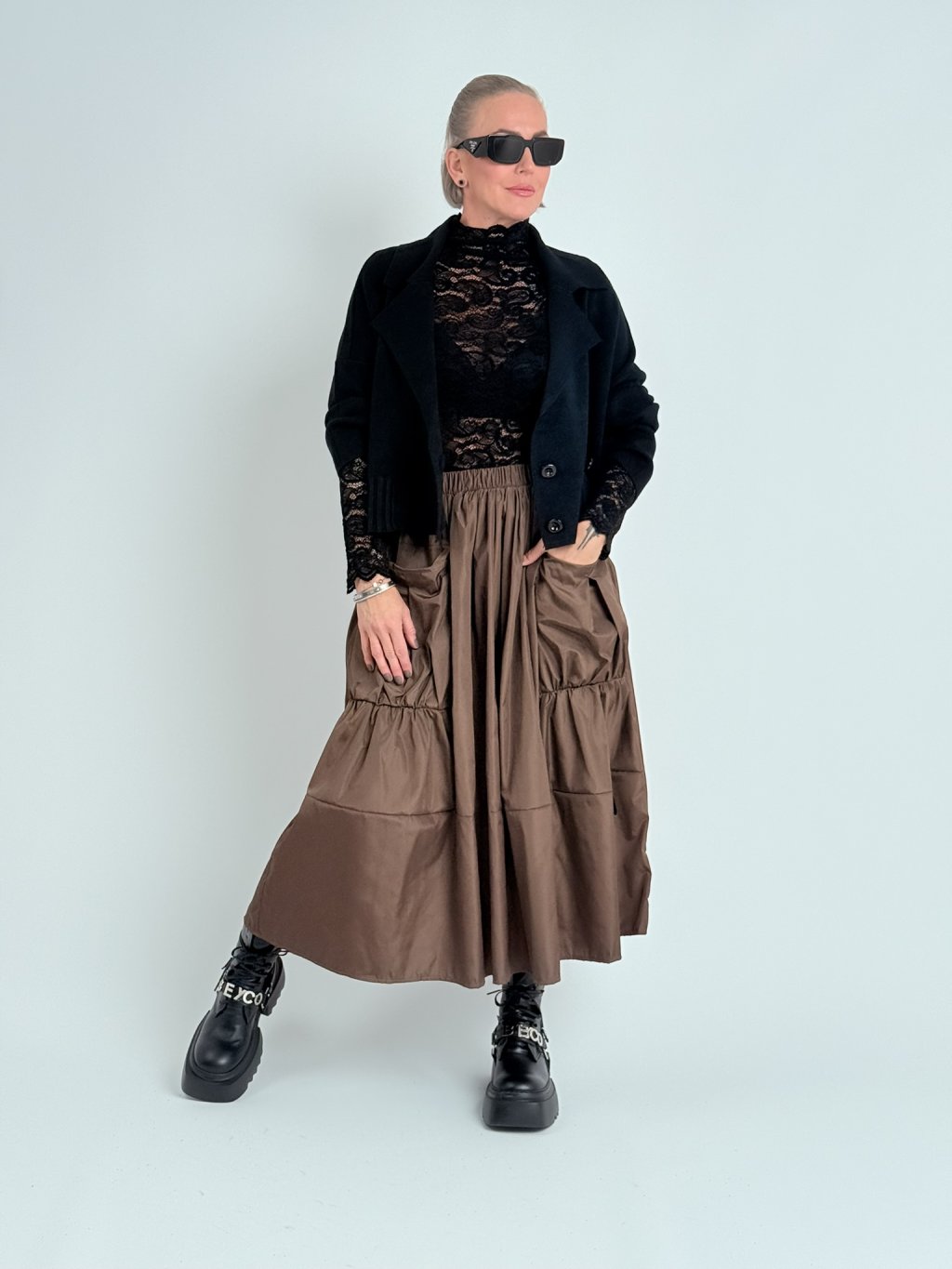 Úžasná, pohodlná, komfortná, zaujímavo riešená sukňa s veľkými všitými vreckami, elastický pás.
