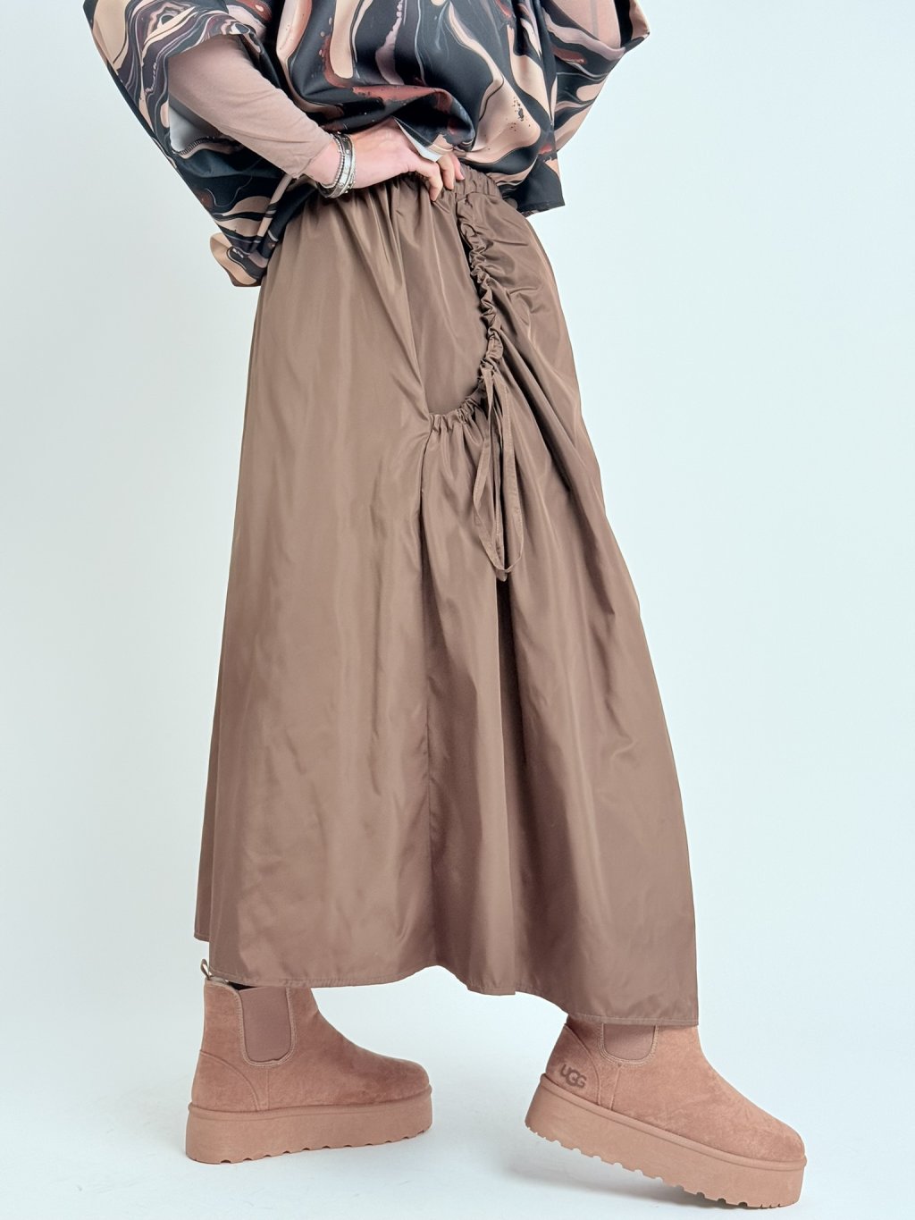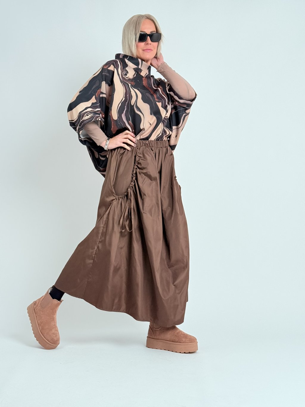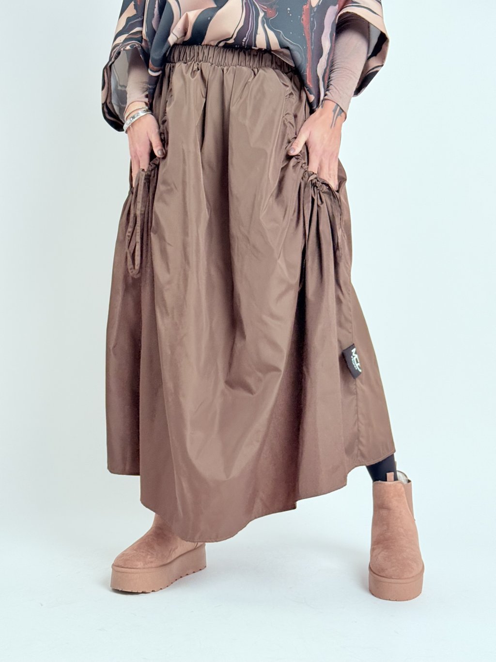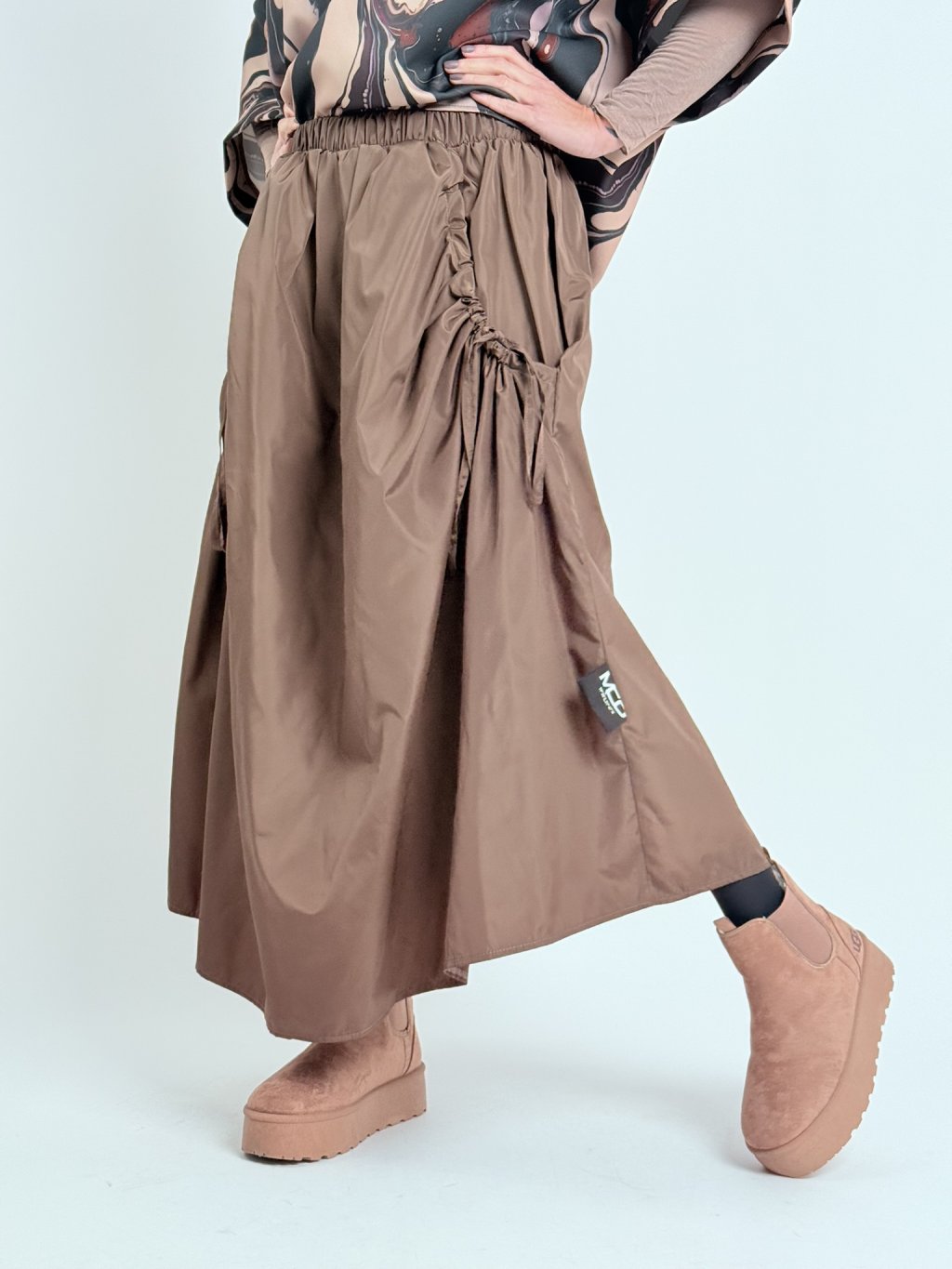 Nádherná, pohodlná, komfortná, zaujímavo riešená sukňa s vreckami so šnúrkou, elastický pás.