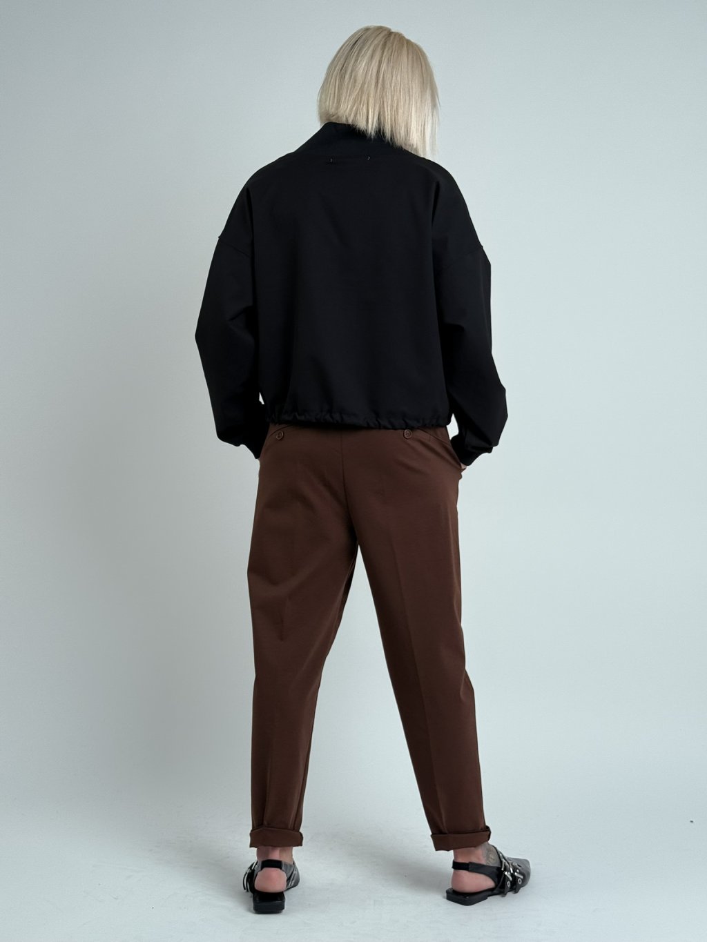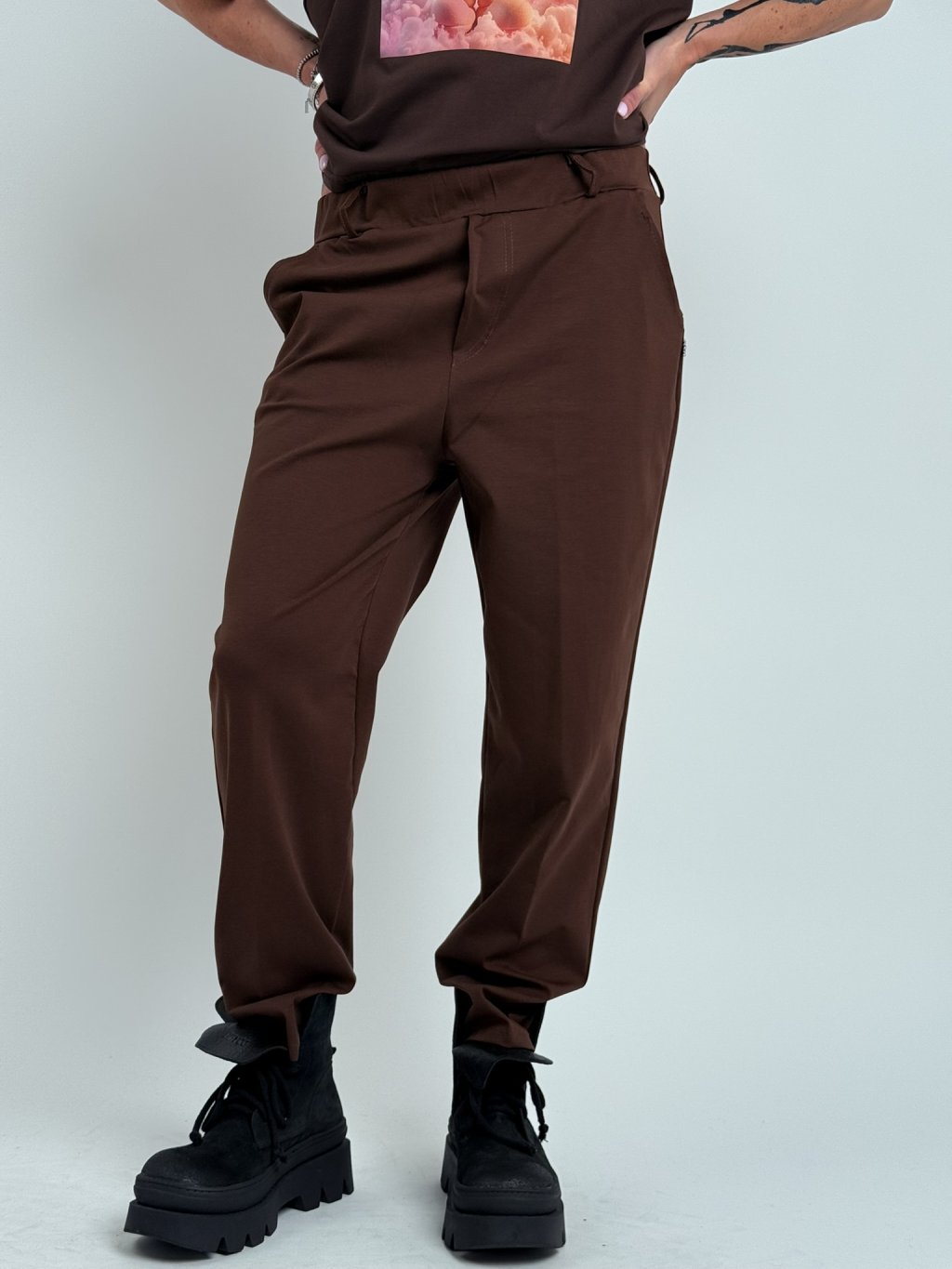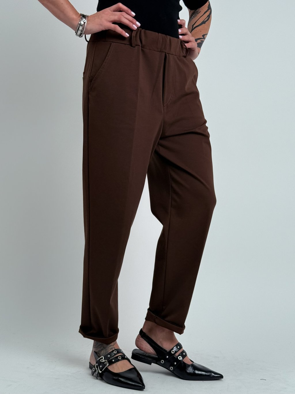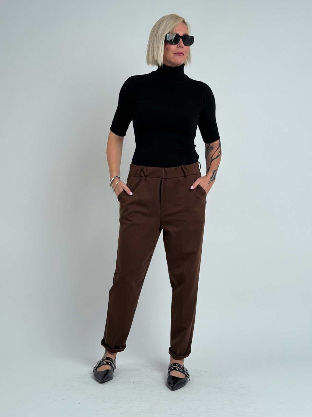 Super nohavice cigaretového strihu s bočnými vreckami, elastickým pásom a pútkami na opasok. Skvele sa hodia k sakám a dlhším svetrom.