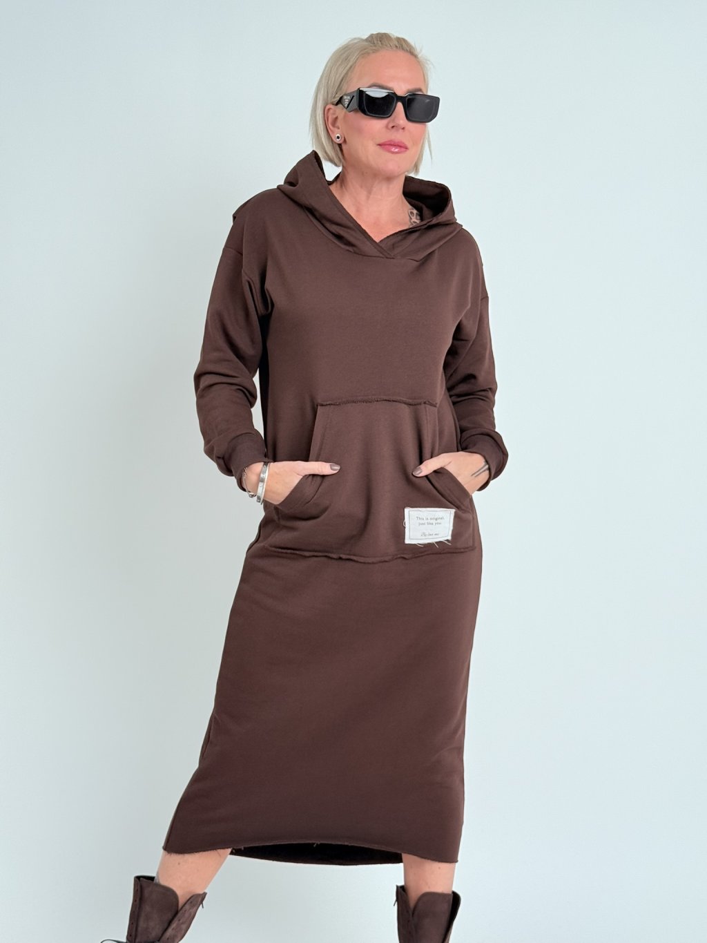Skvelé mikinové šaty nadrozmernej veľkosti s kapucňou, klokaními rukávmi, dlhými rukávmi a zadným rozparkom pod kapucňou. Skvelý materiál, mierne elastický.MIERKA!!!!