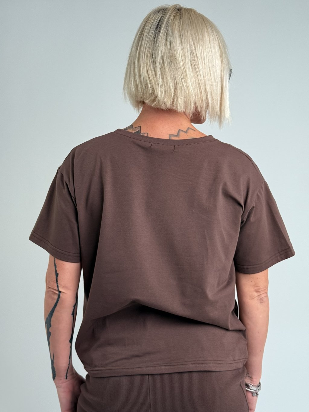 Super nadrozmerné, veľmi elastické tričko s okrúhlym výstrihom, krátkymi rukávmi a potlačou na prednej strane.