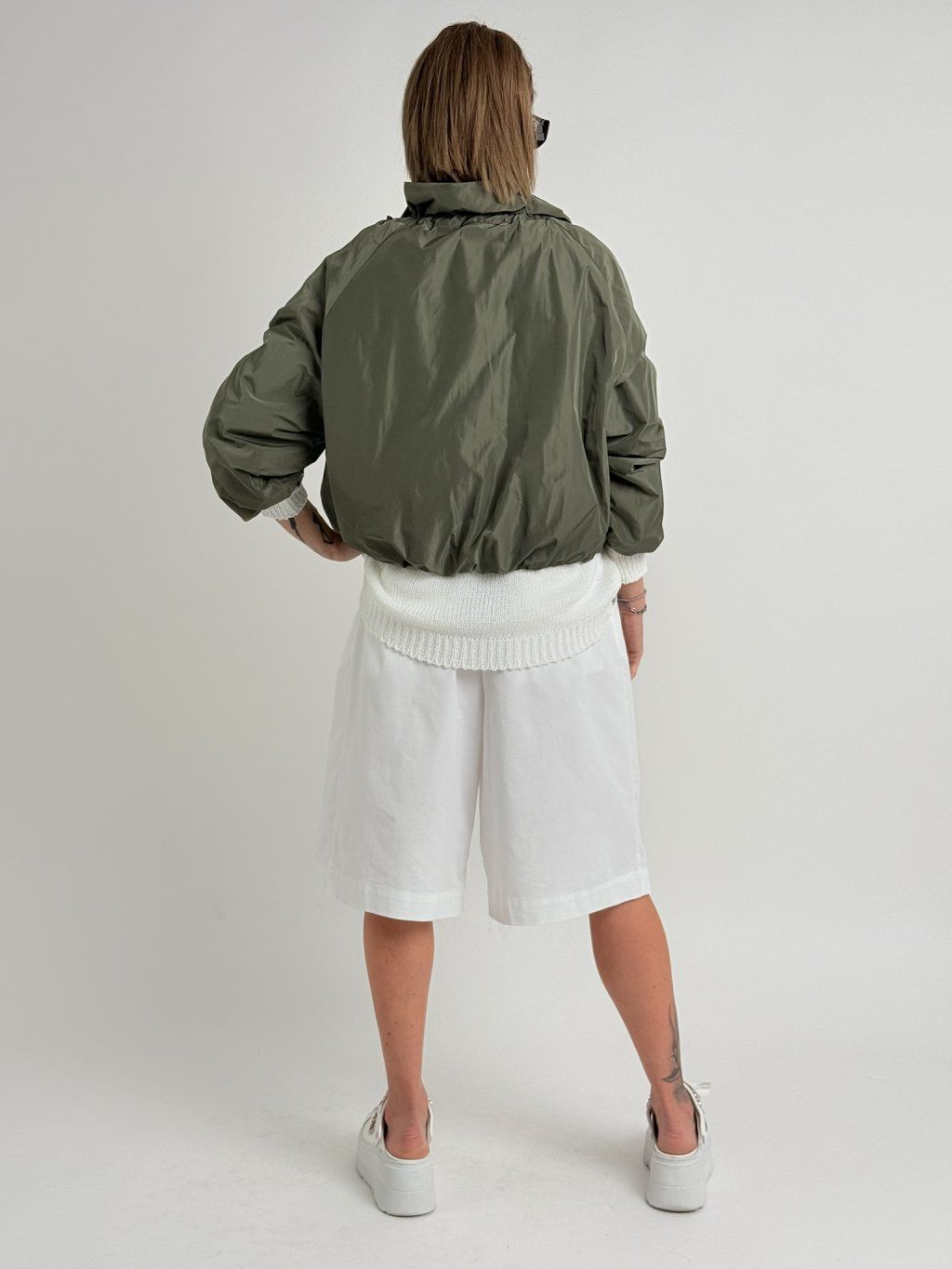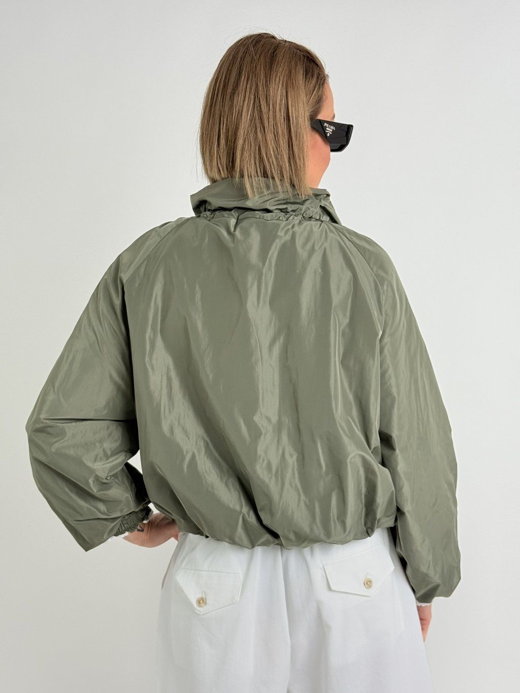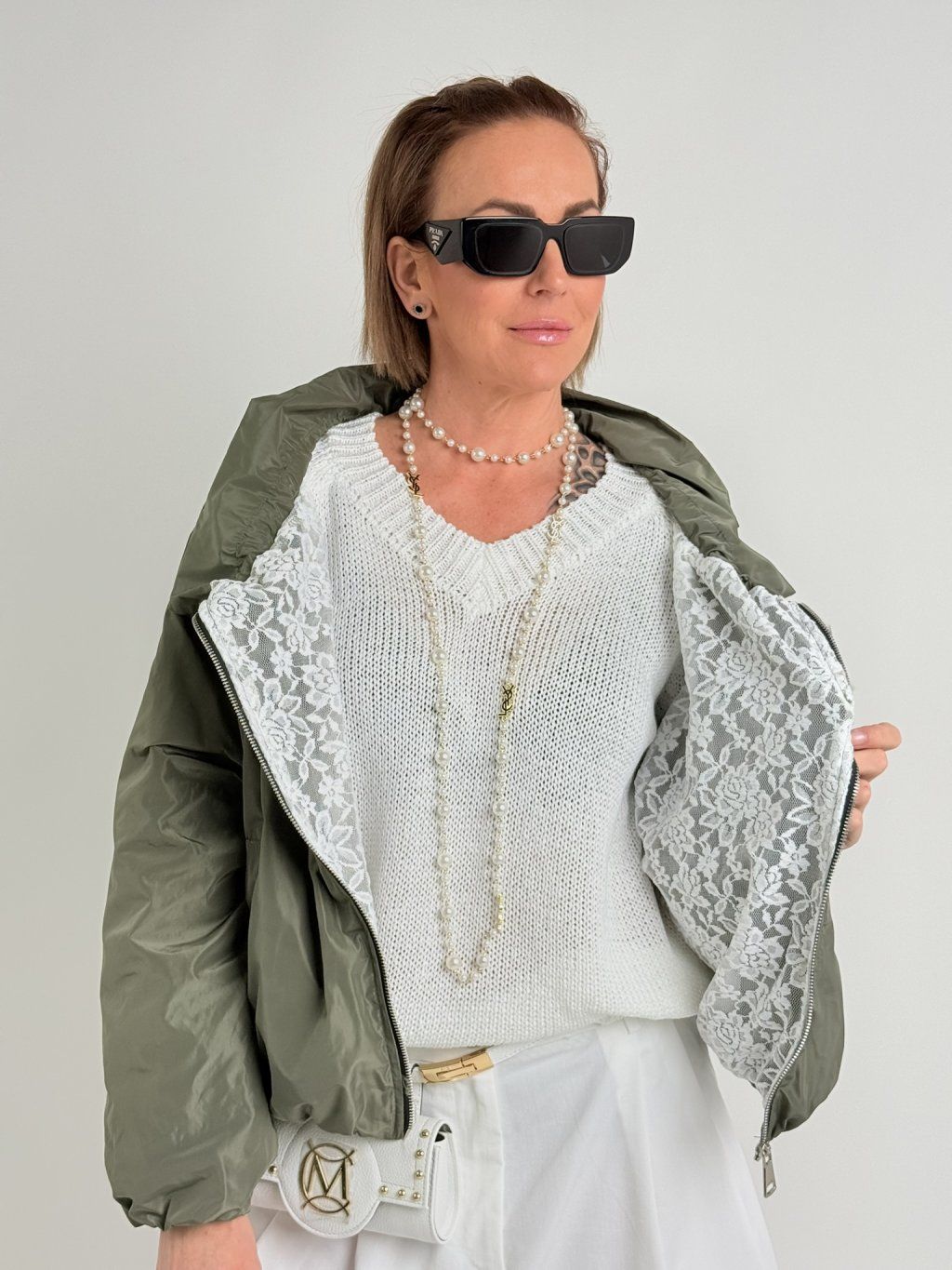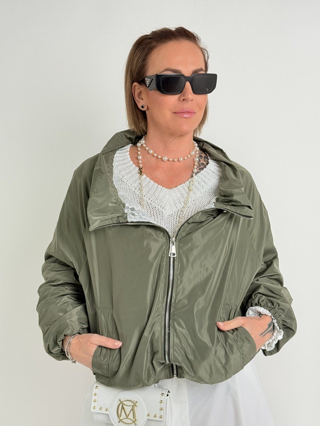 Čipkou podšitá, na zips, s golierom na šnúrku, hrubá bunda. Konce rukávov a spodný lem s elastickými manžetami