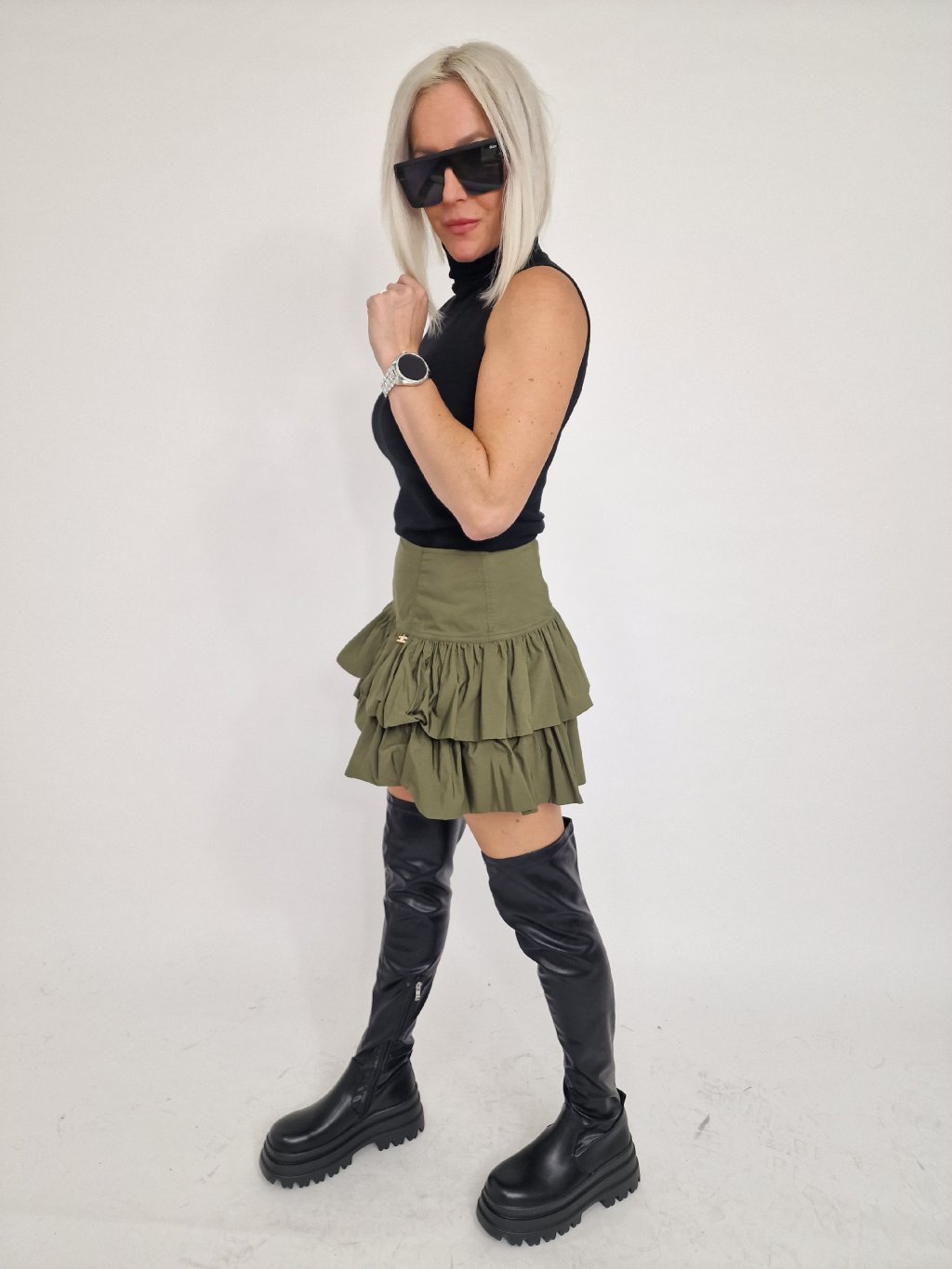Krásna volánová sukňa so všitými šortkami a bočným zipsom.