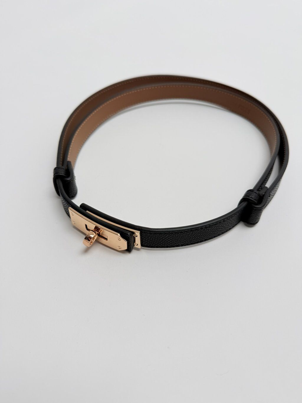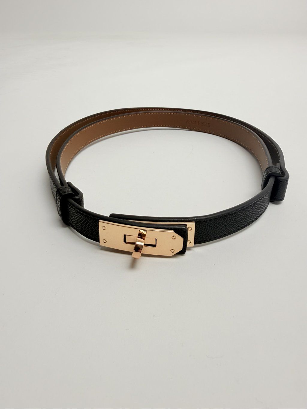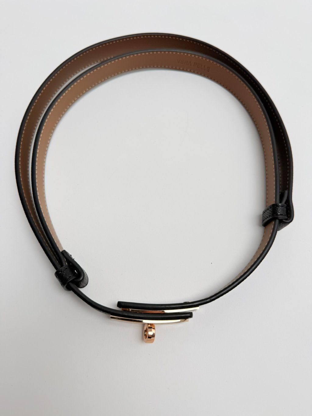 Kožený opasok v kombinácii so zlatým kovom.