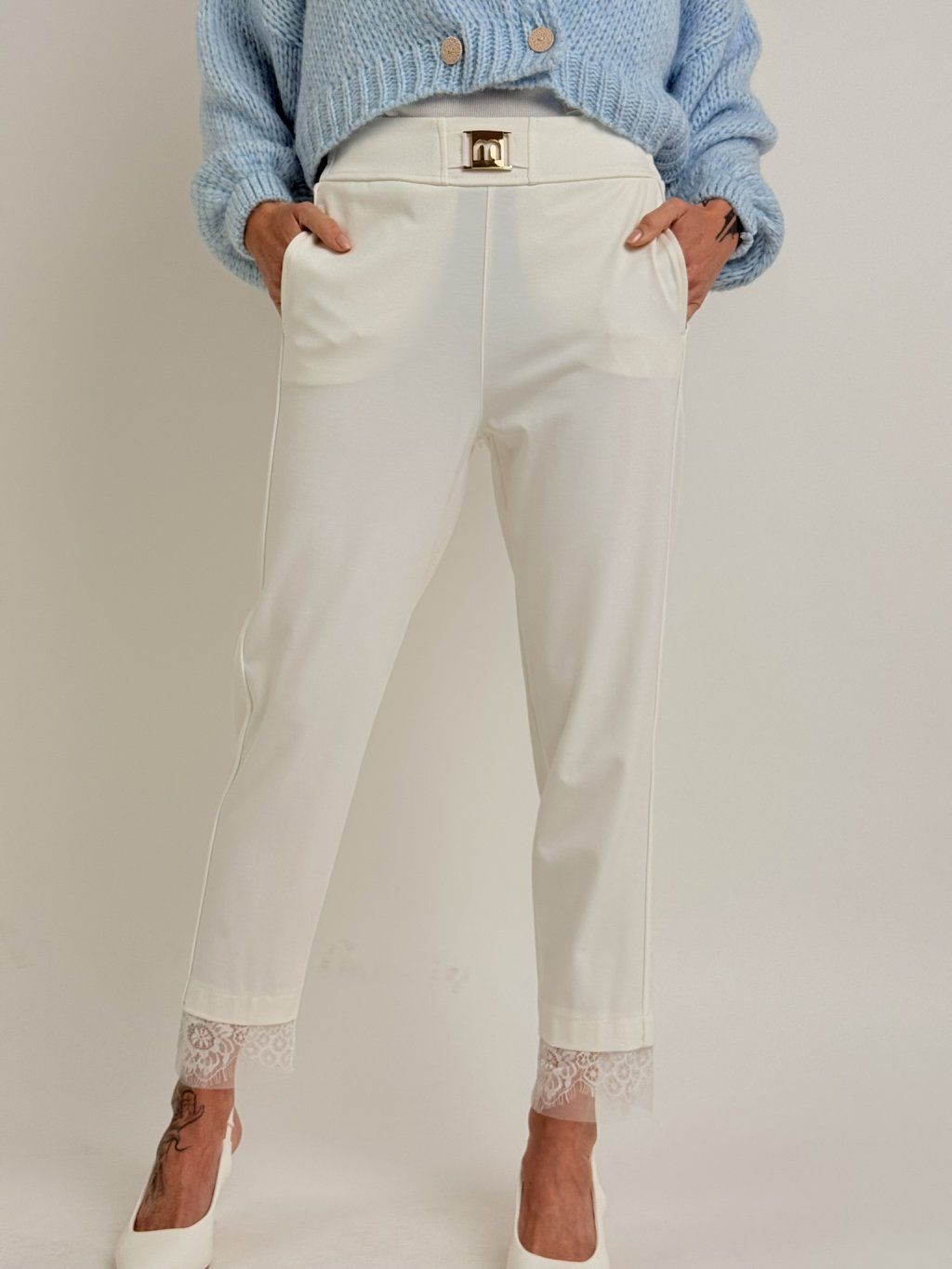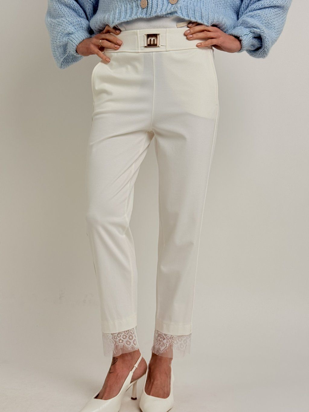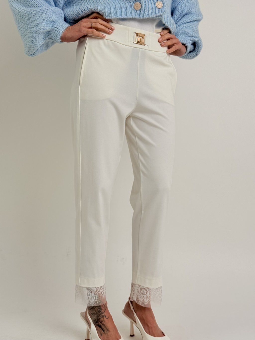 Krémové nohavice s čipkou STATION