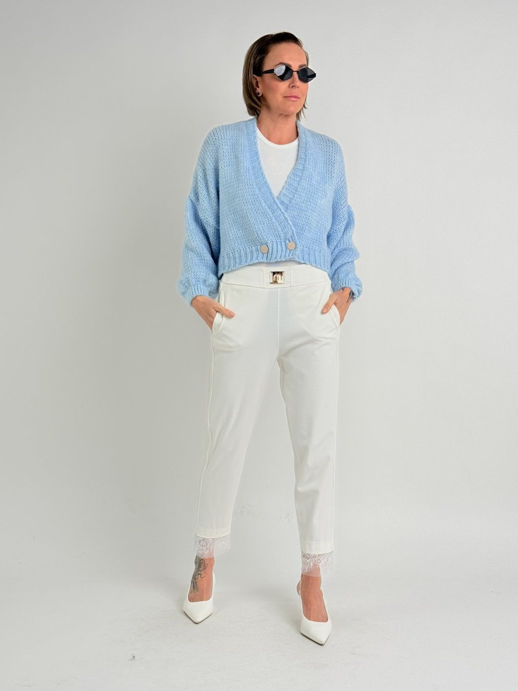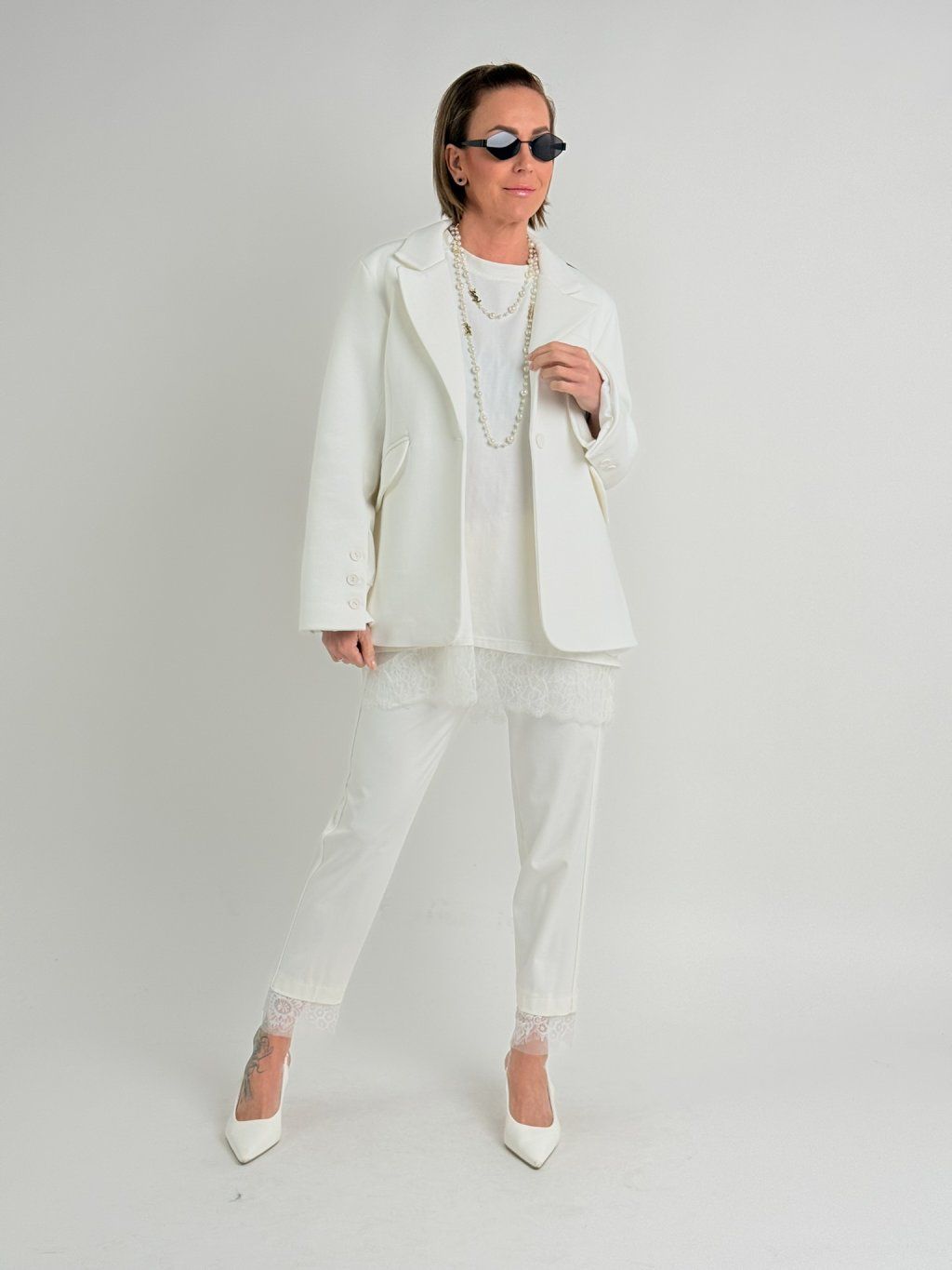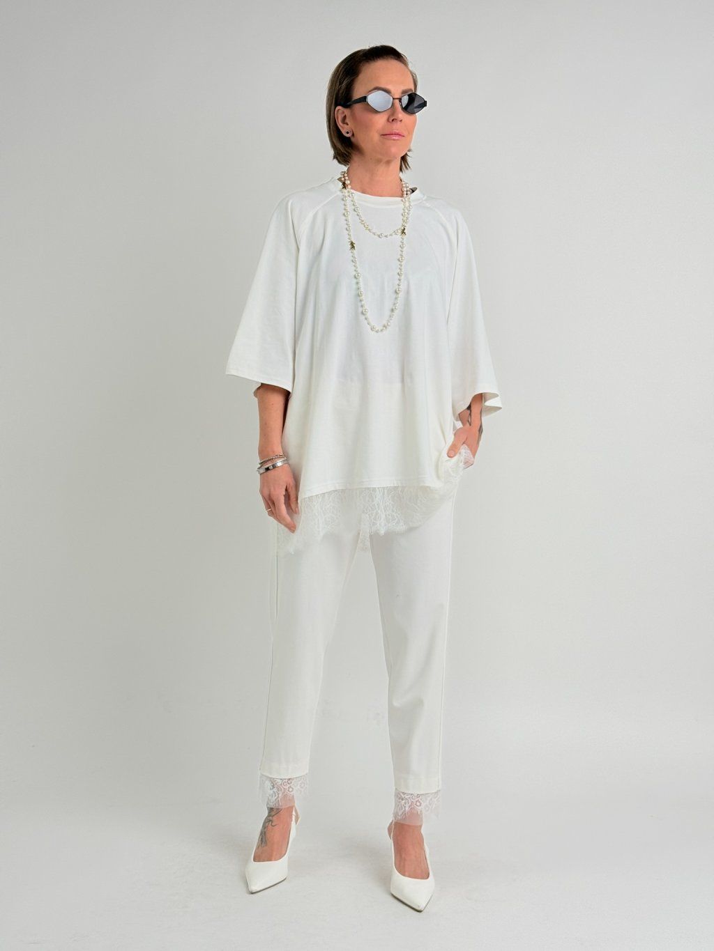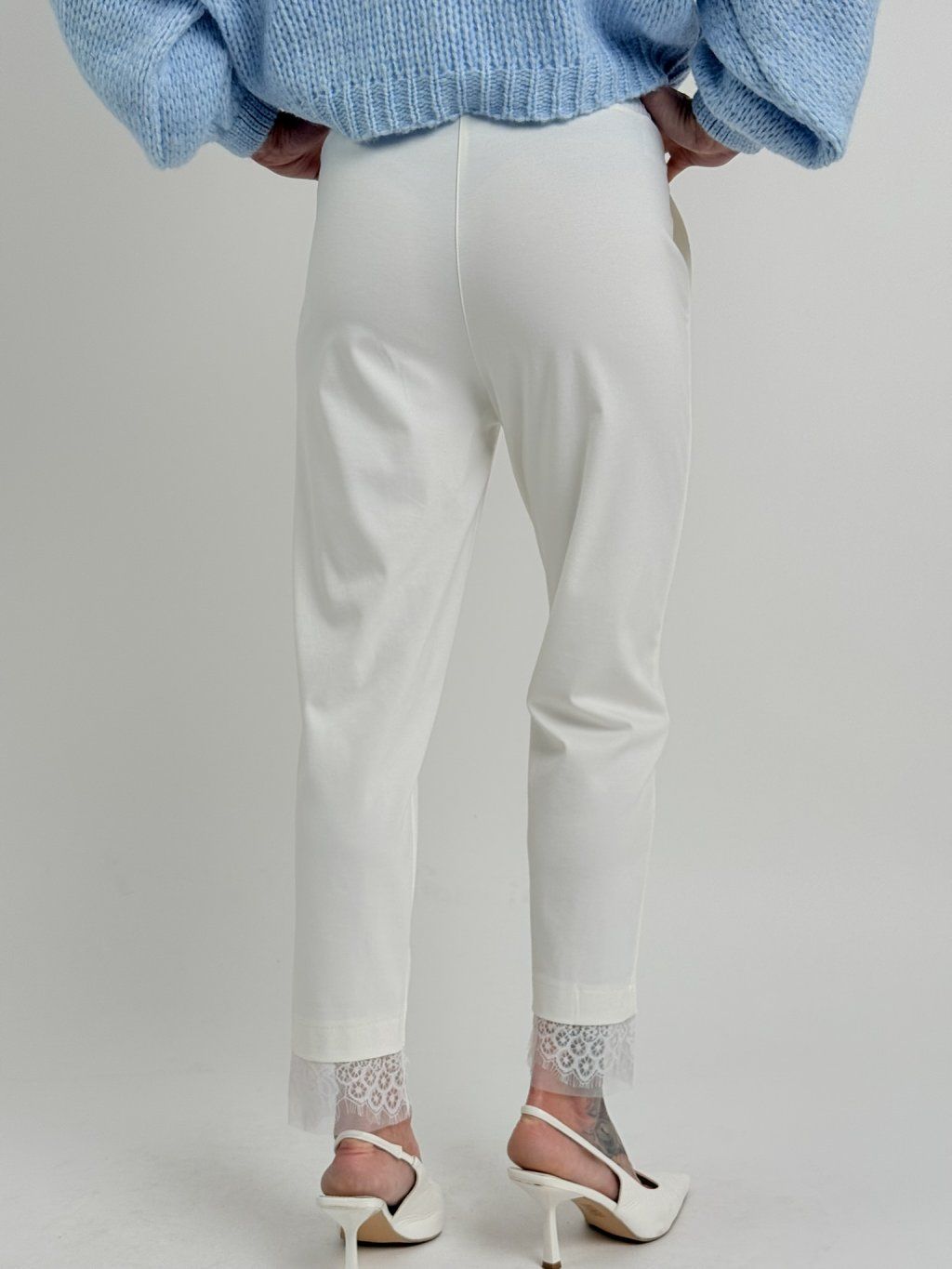 Krémové nohavice s čipkou STATION