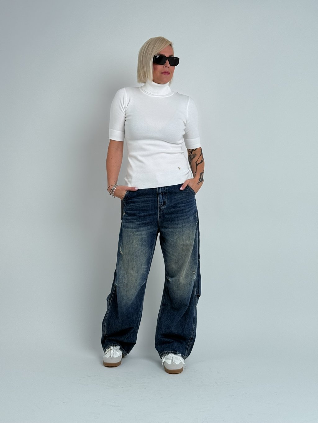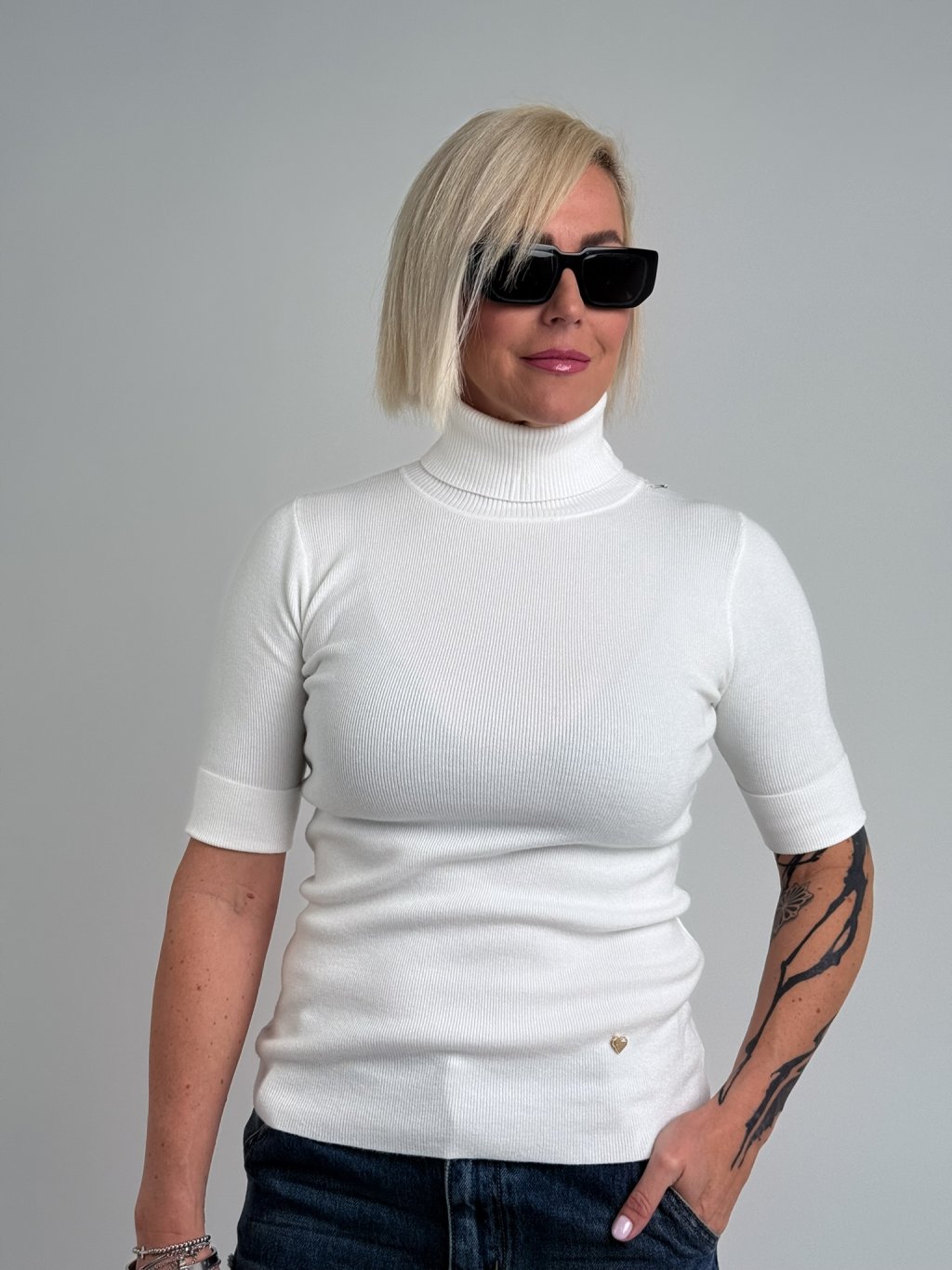 Krásny, elastický, tenší svetrový rolák s vyhrnutými rukávmi po lakeť. Mäkký a nekrčivý.